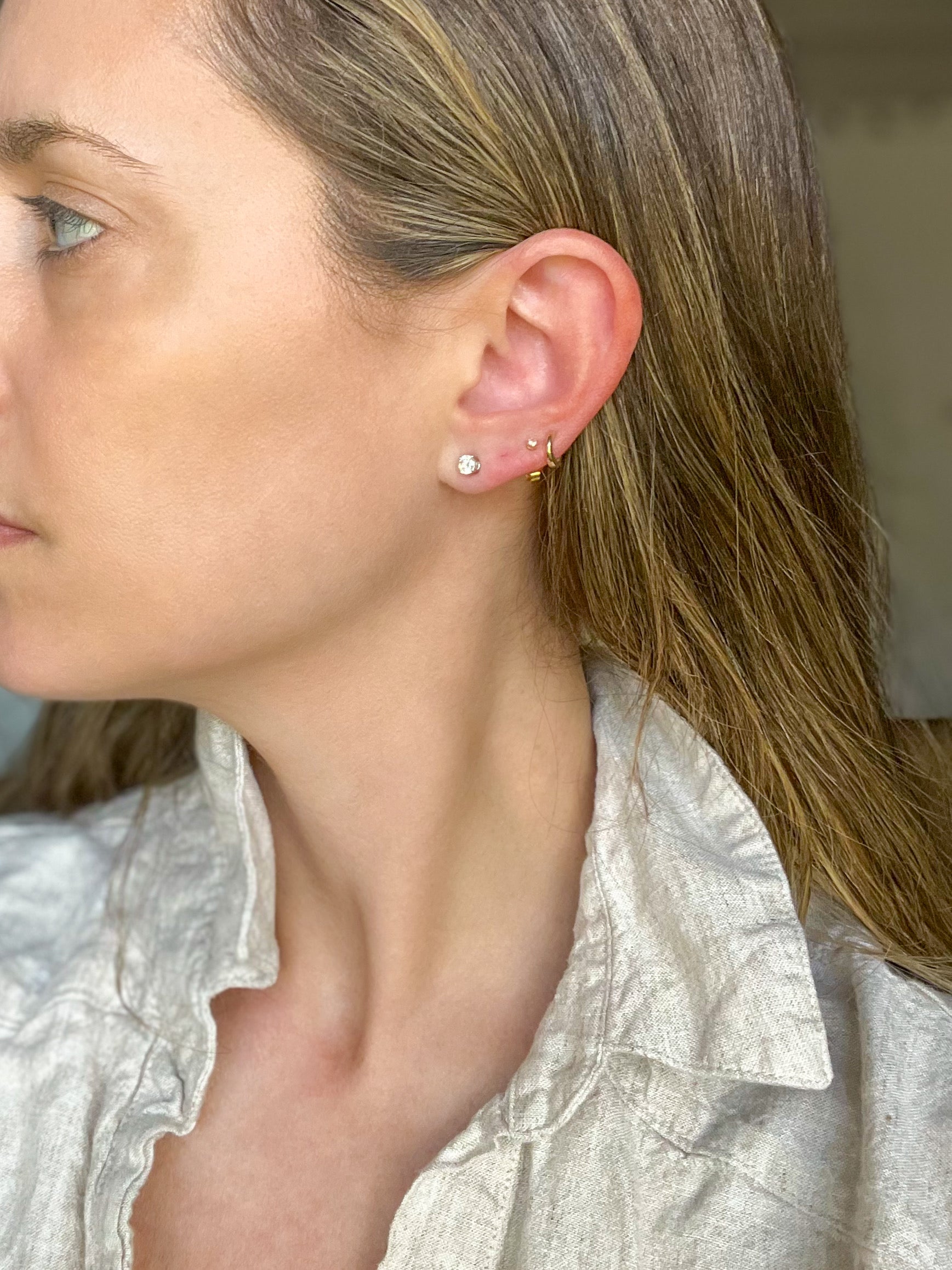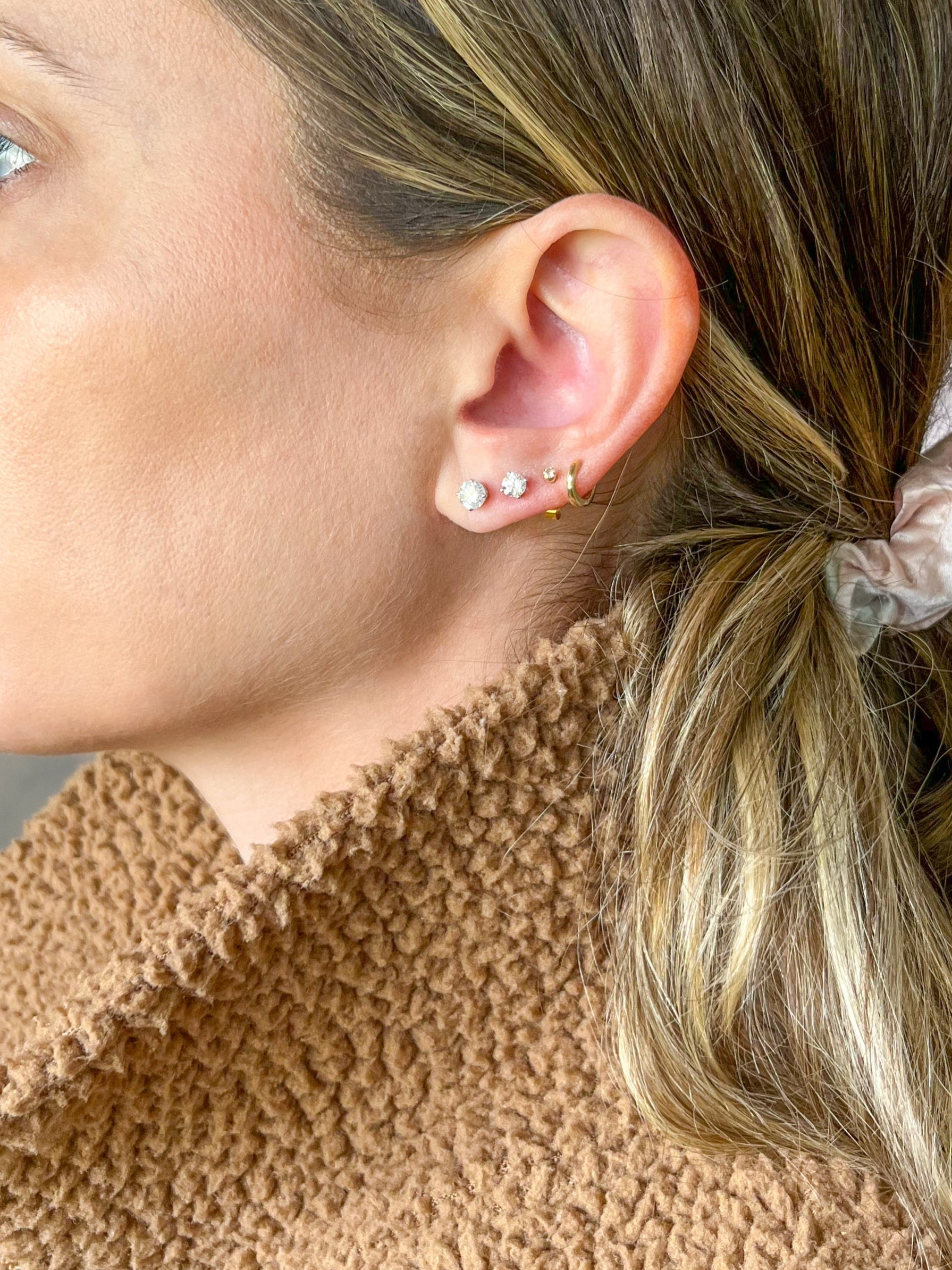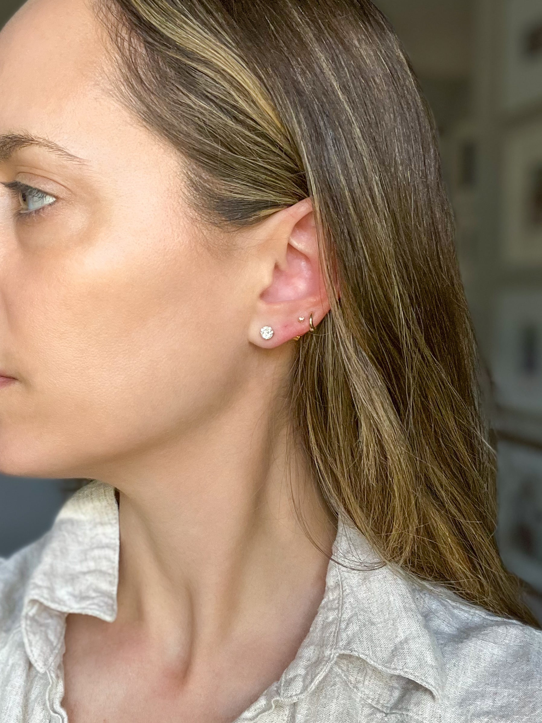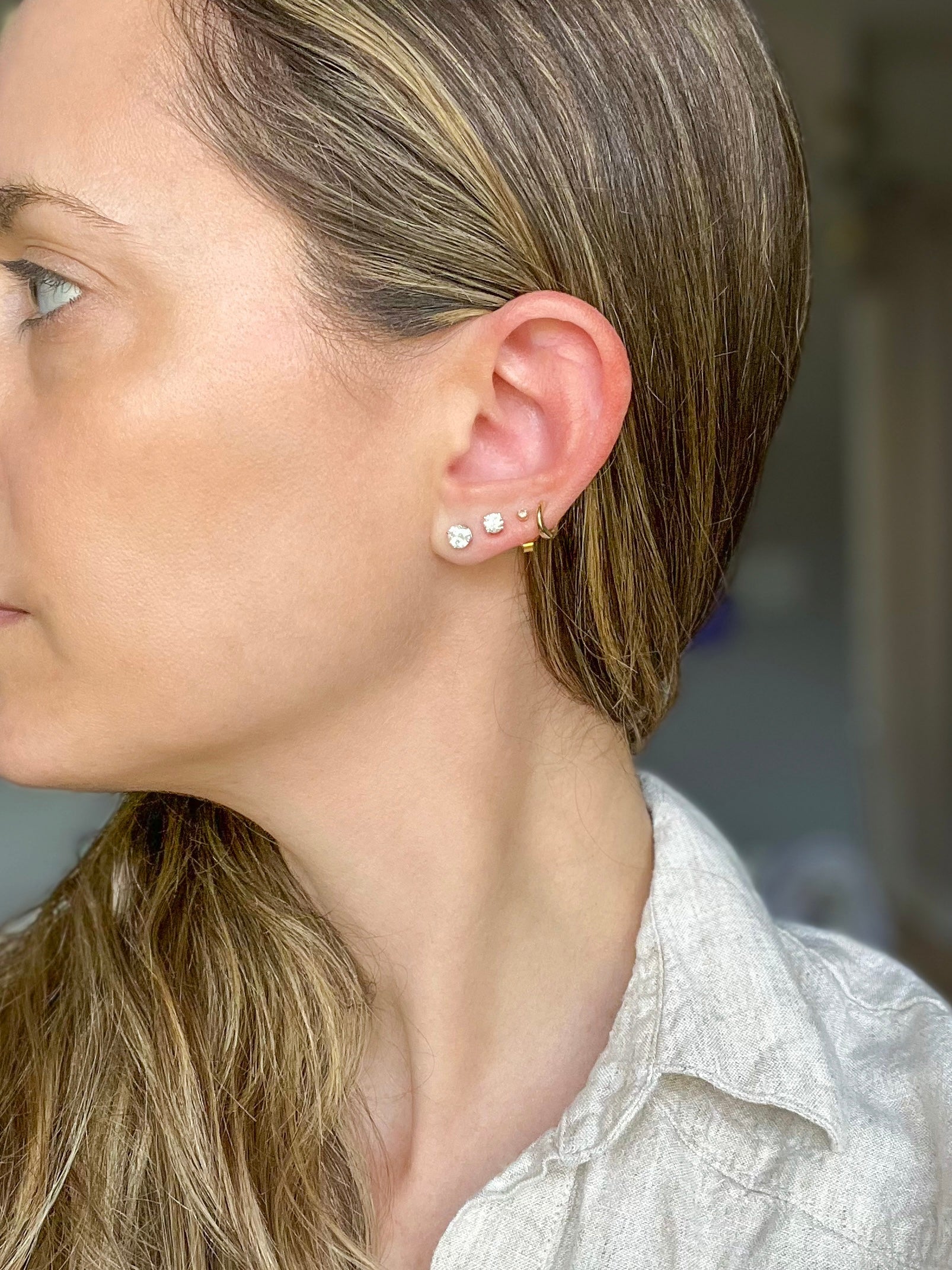 Looking for a simple diamond stud? We have two pairs of natural diamond stud earrings, set in four prong basket settings, made of 14k white gold and come with push backs. Both pairs are made with H-I color, I2 clarity diamonds. Please review photos to see how they look on the ear. We currently have one pair of each size. We have access to all sizes up to 2 carats total weight, feel free to message us to find what you are looking for.