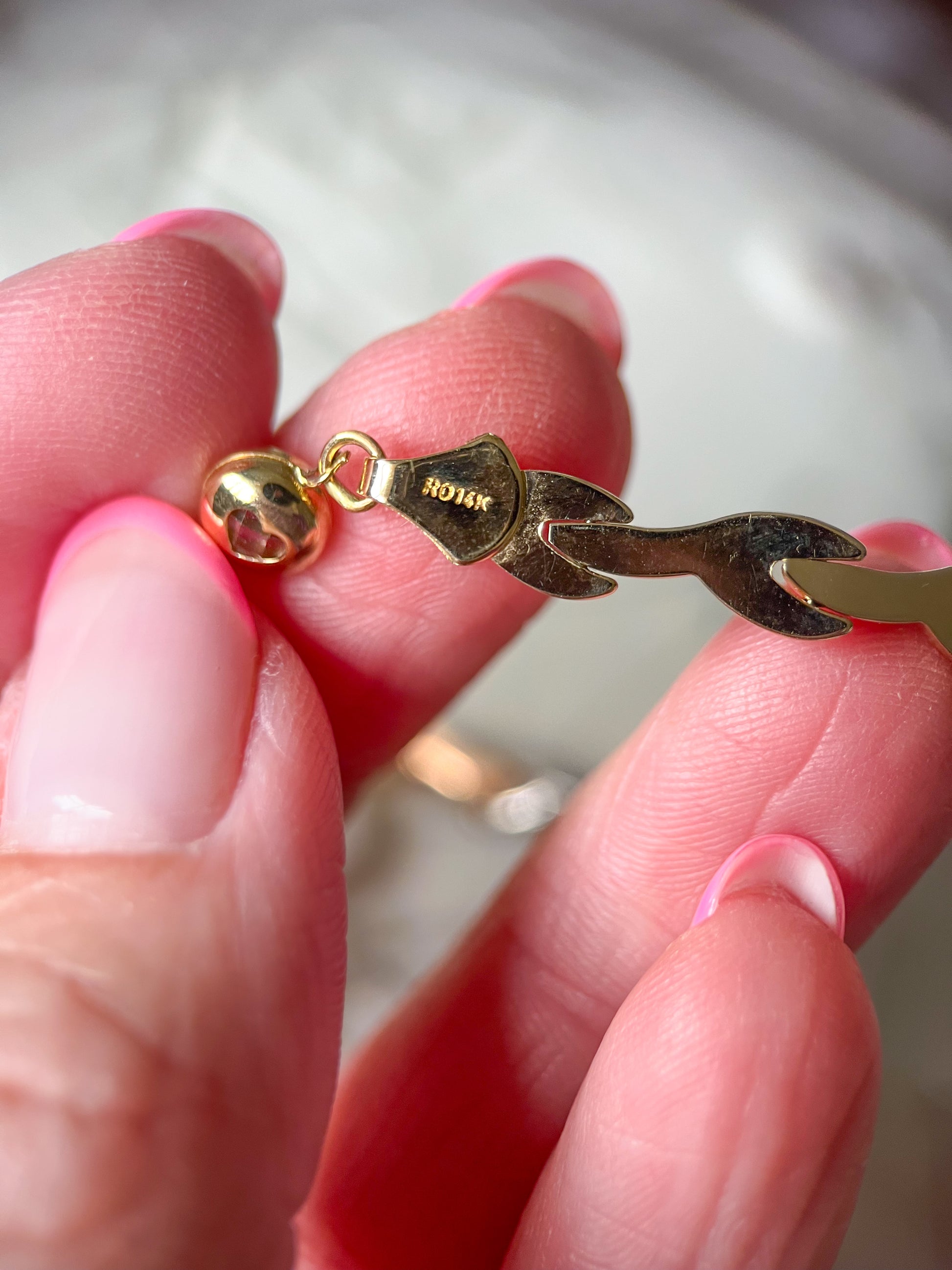 Condition: All of our pieces are antique and/or vintage (if not otherwise noted), which means they had previous owners and were worn and loved in their past life. Vintage and antique jewelry is often not perfect and will shows signs of wear. This can be imperfections like small nicks or scratches, or scuffs on the gold or the stones. This is part of what makes each piece special and unique. We do our best to photograph and describe each piece accurately and will point out any flaws we think are noteworthy. Please review all photos carefully and feel free to contact us to ask questions or request more photos prior to purchase.