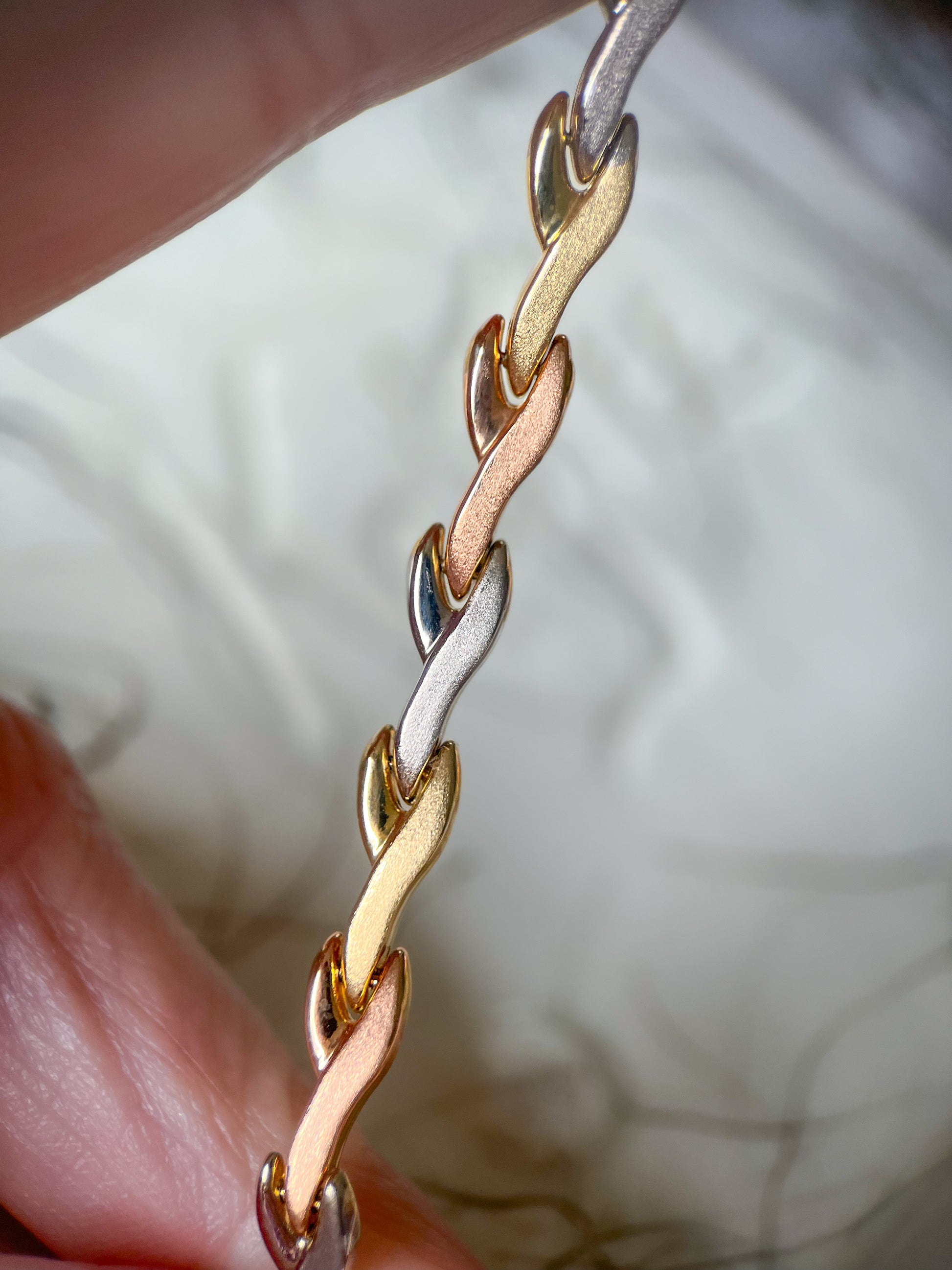 14k Tri Colored White, Rose, Yellow Gold Flat Link 7 Inch Bracelet