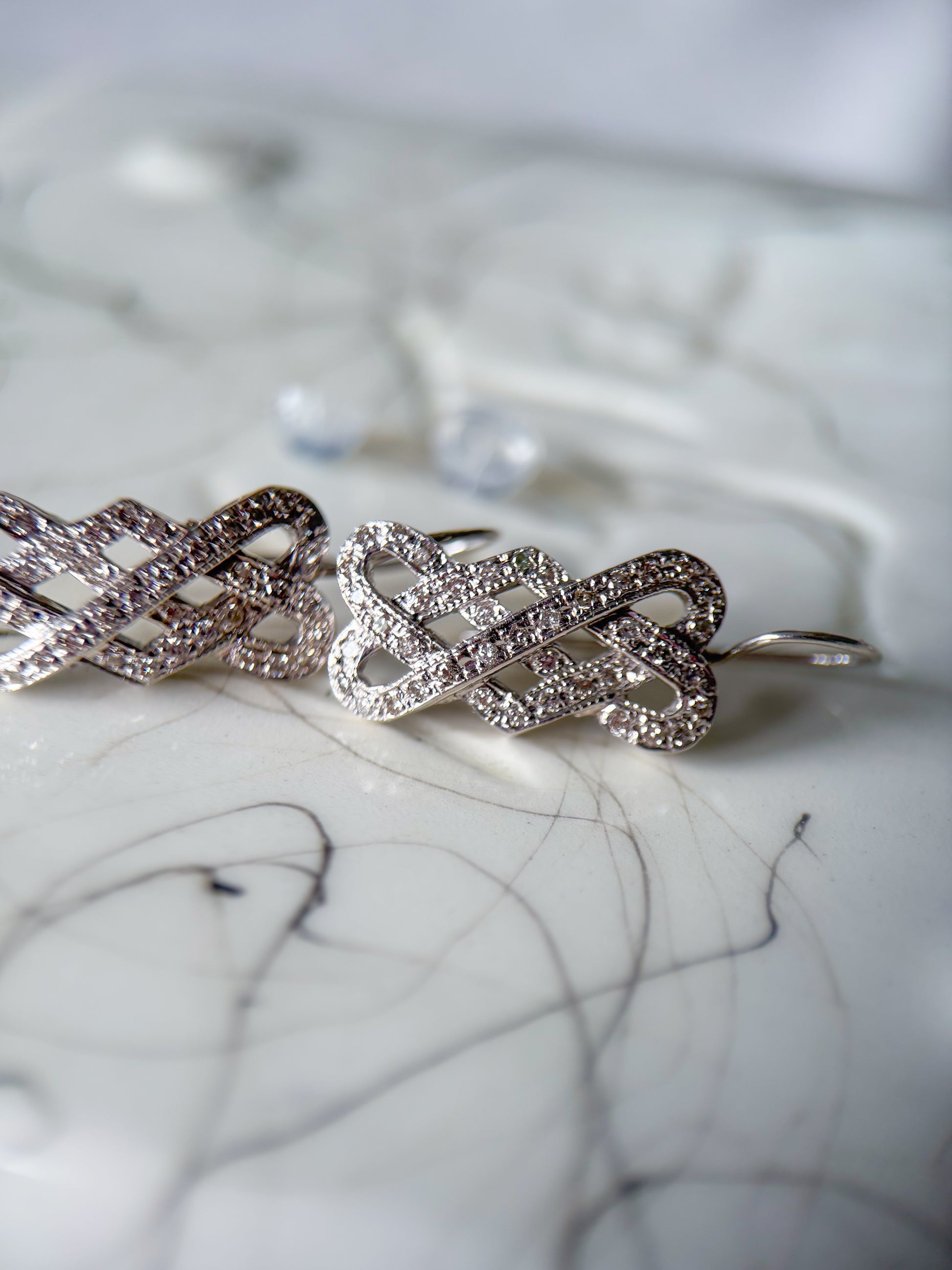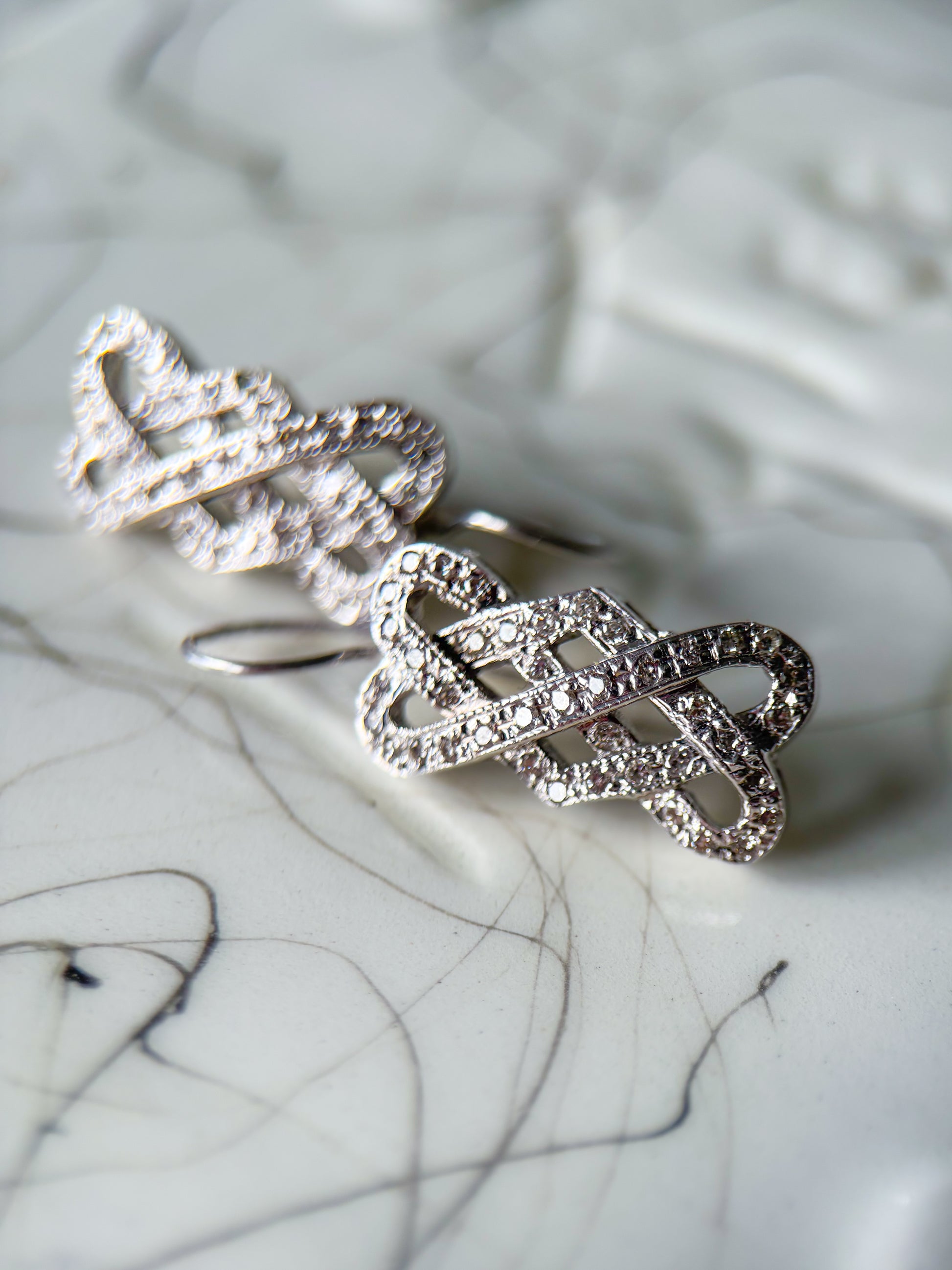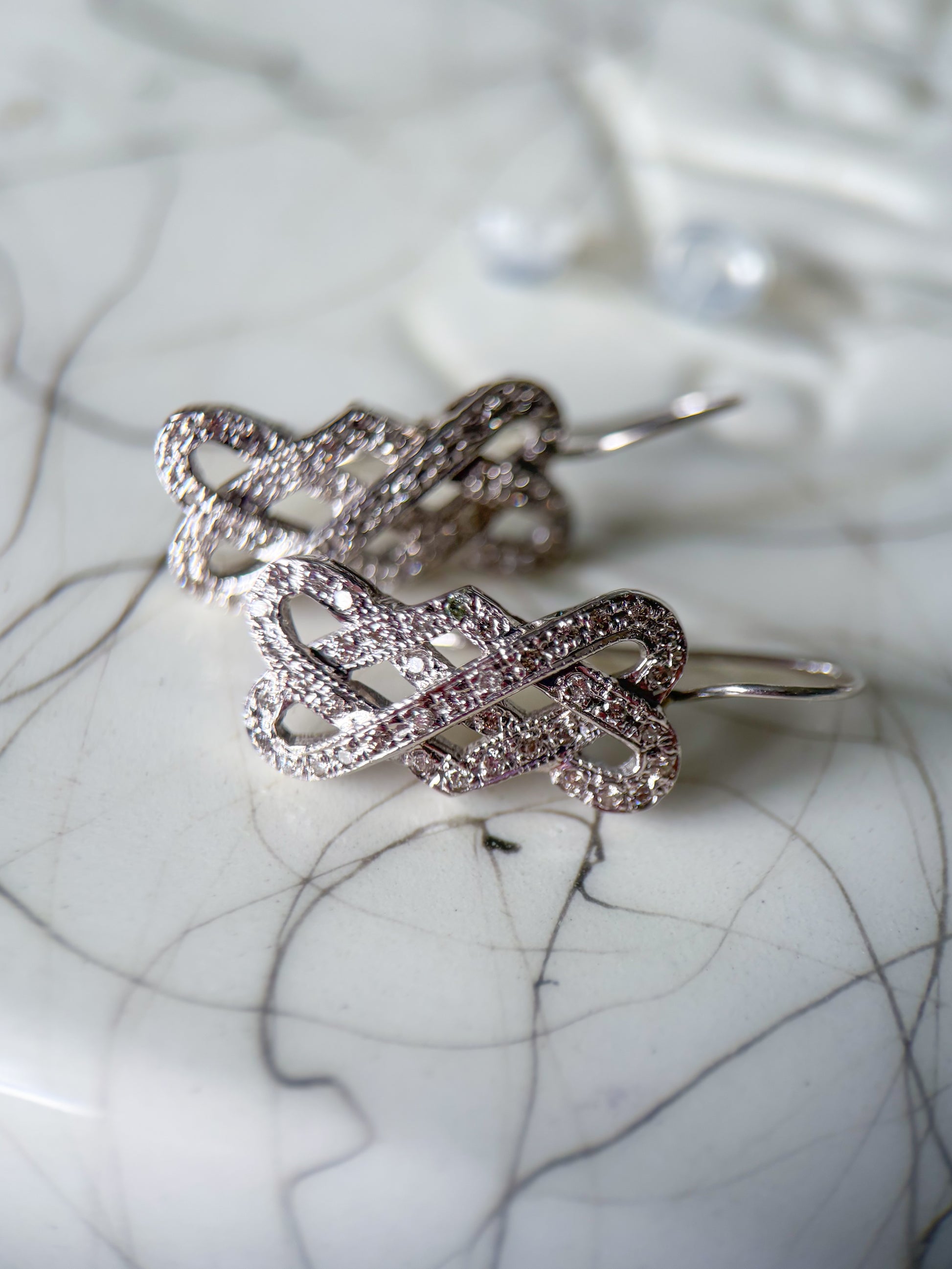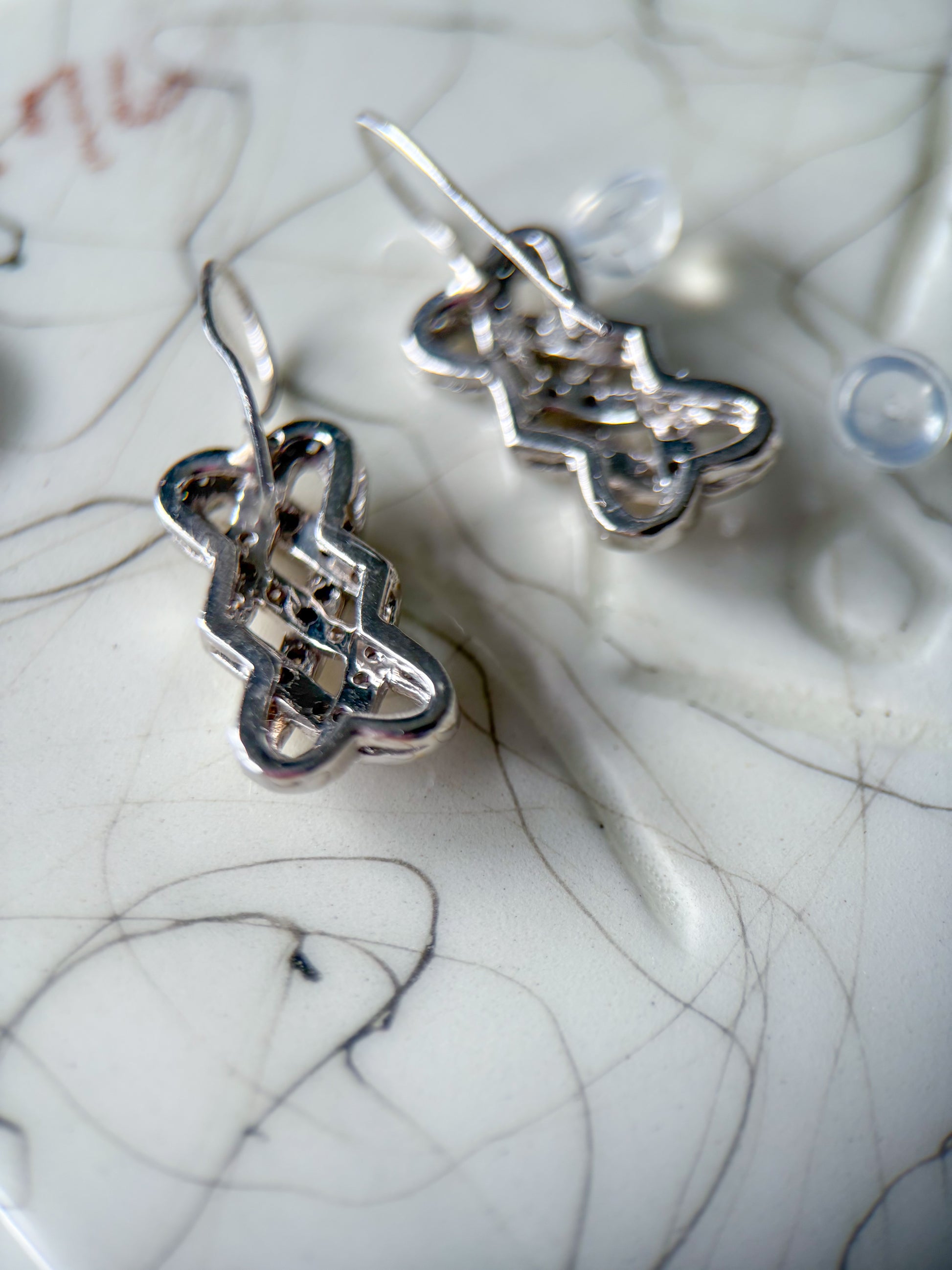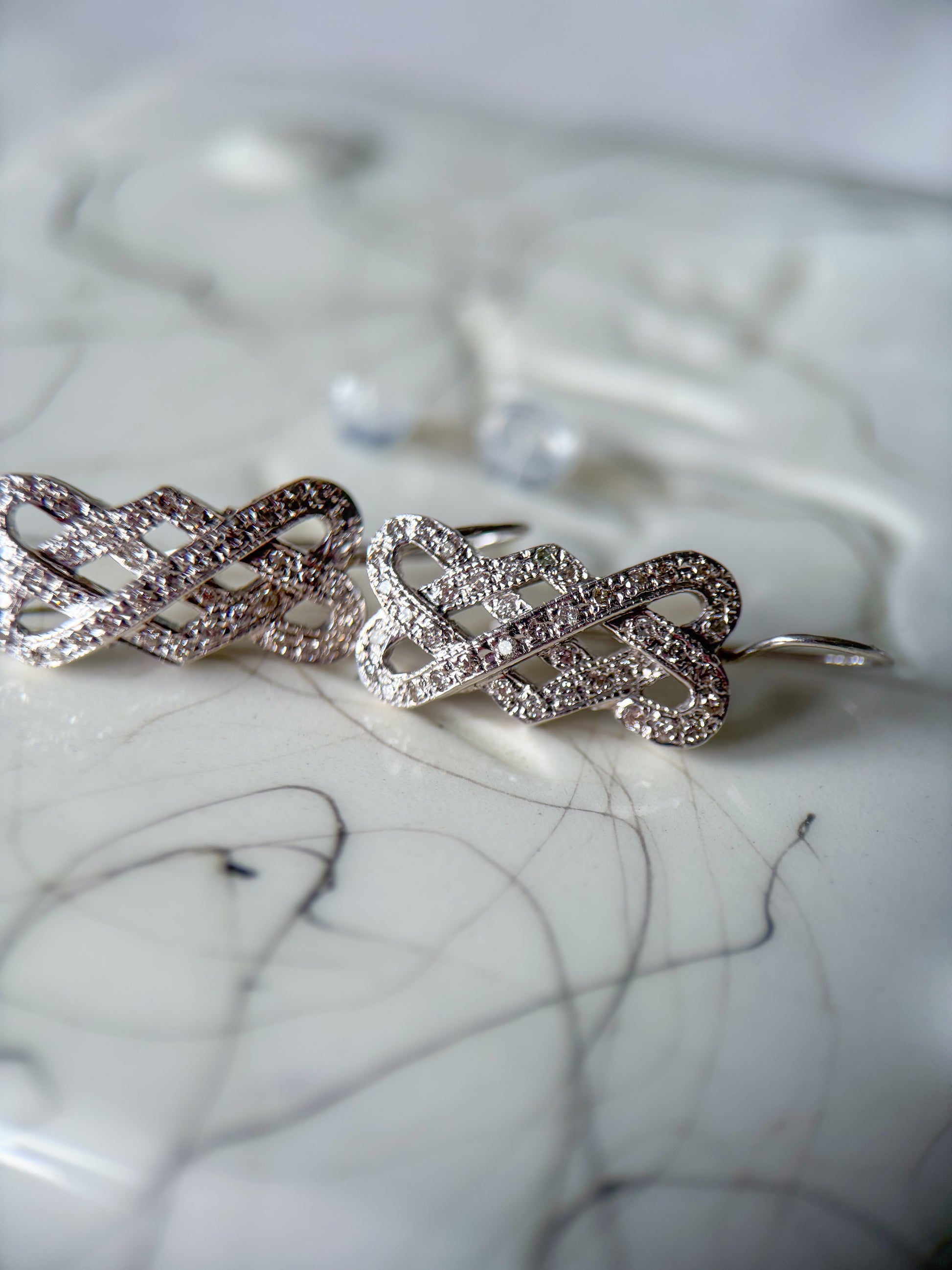 Vintage 14k White Gold Natural Diamond Decorative Earrings