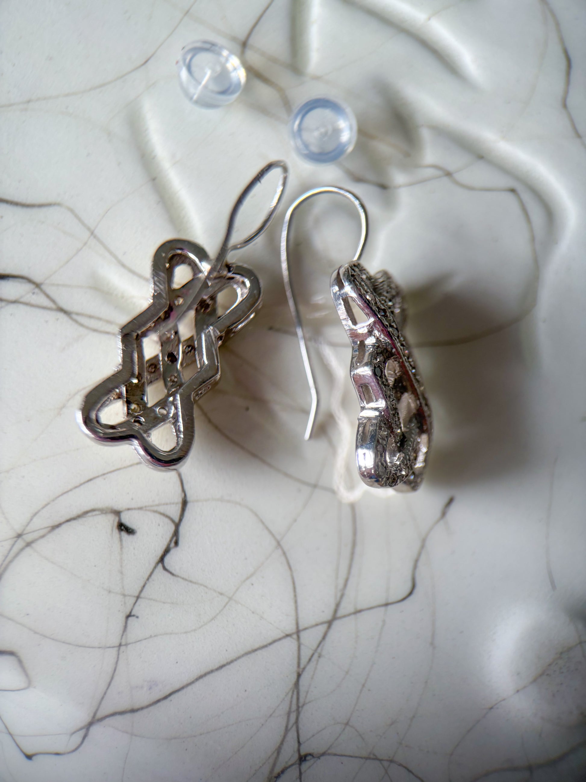 Vintage, 14k white gold and natural diamond decorative earrings!