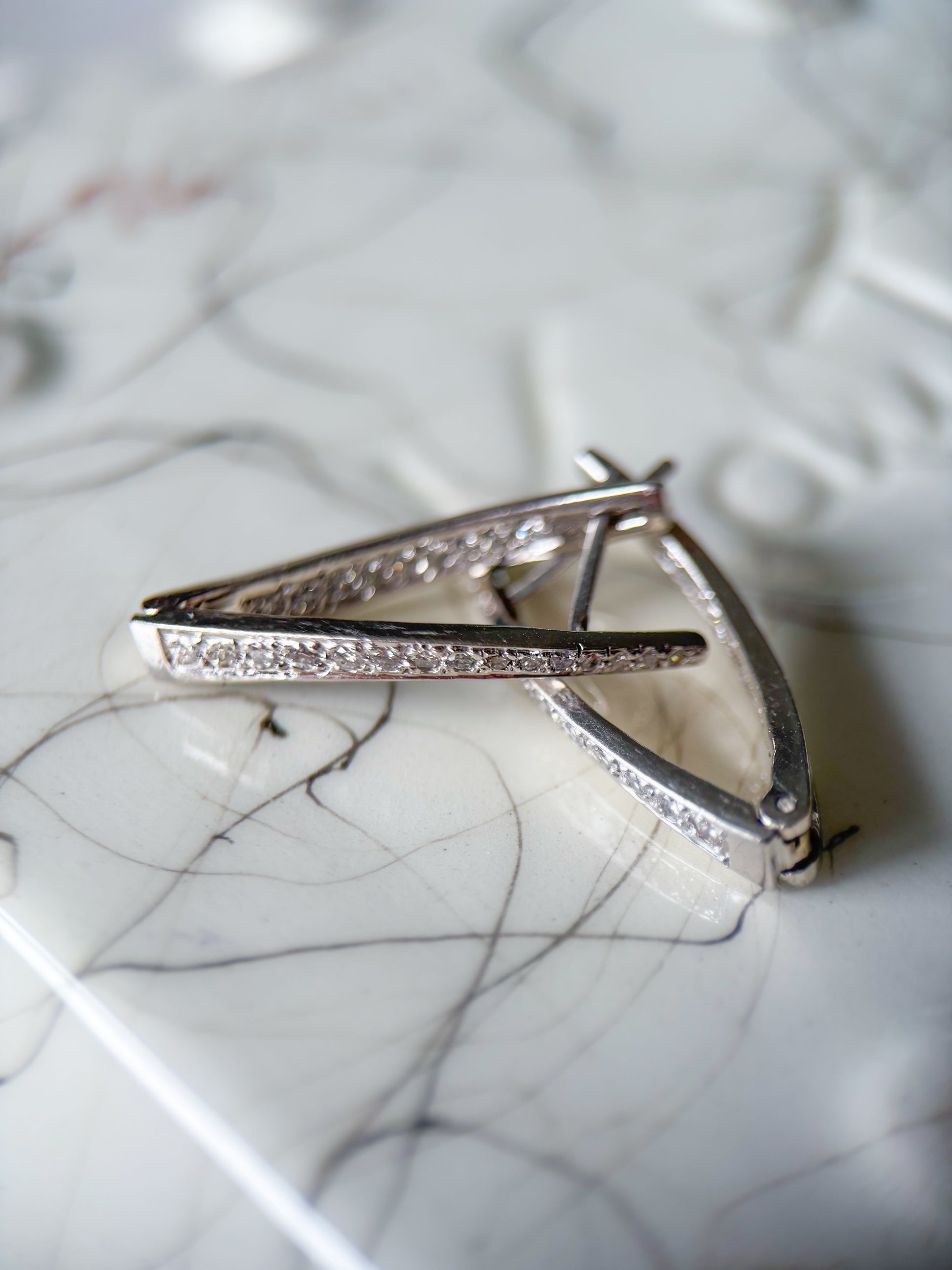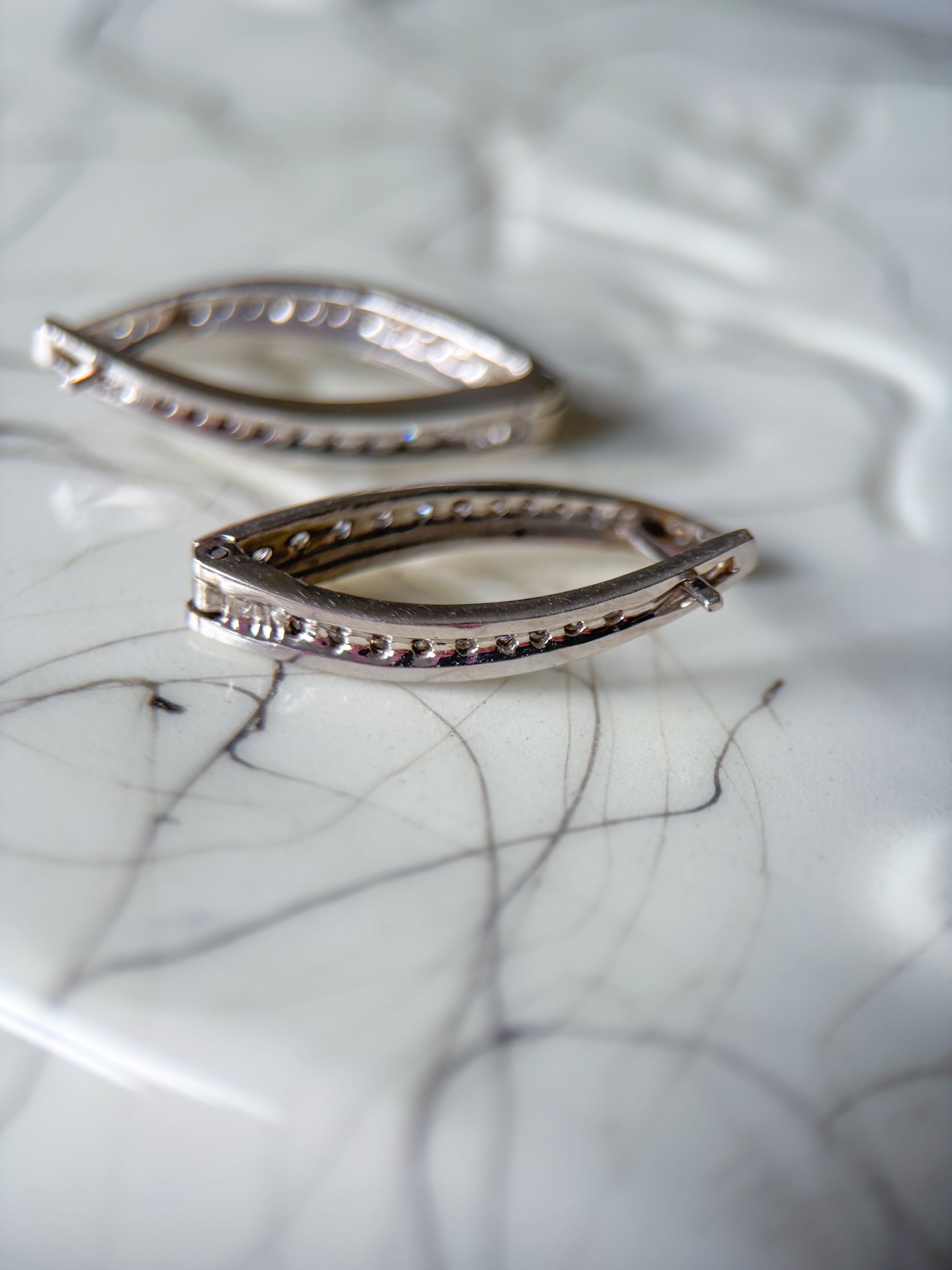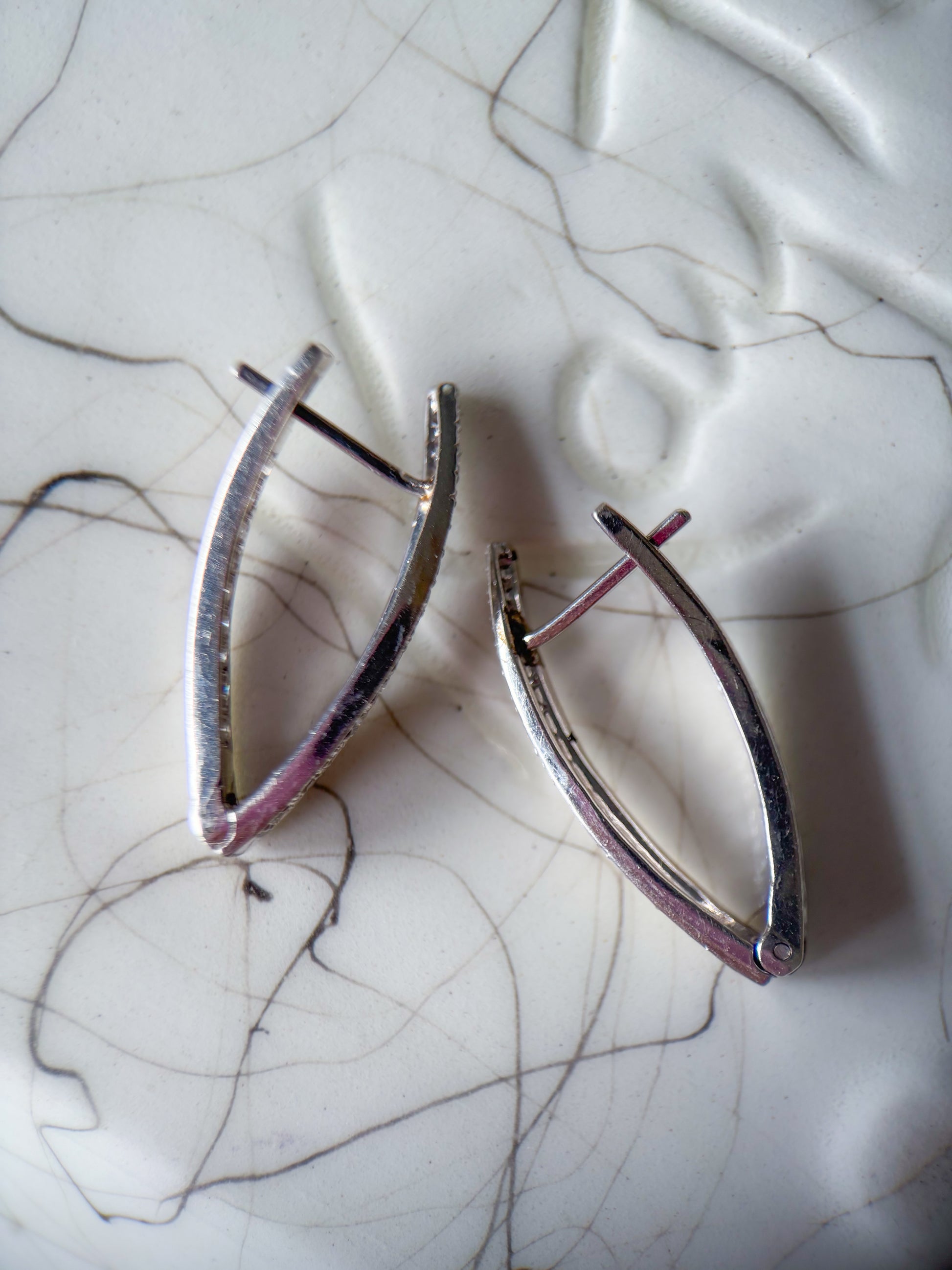 Beautiful, vintage, 14k white gold and natural diamond V shaped hoops!