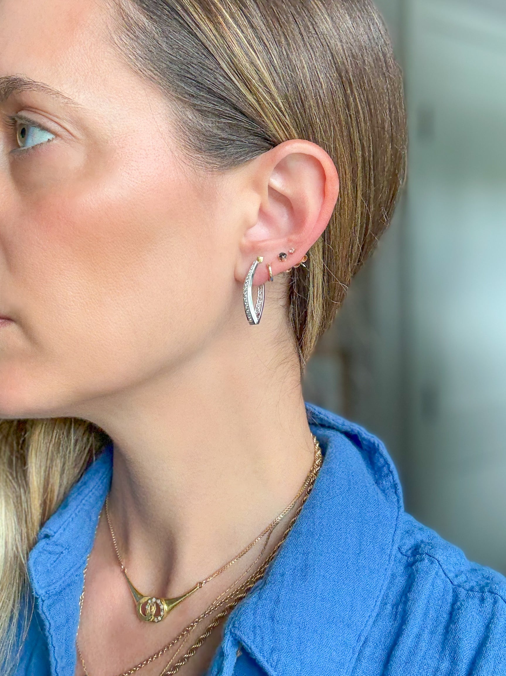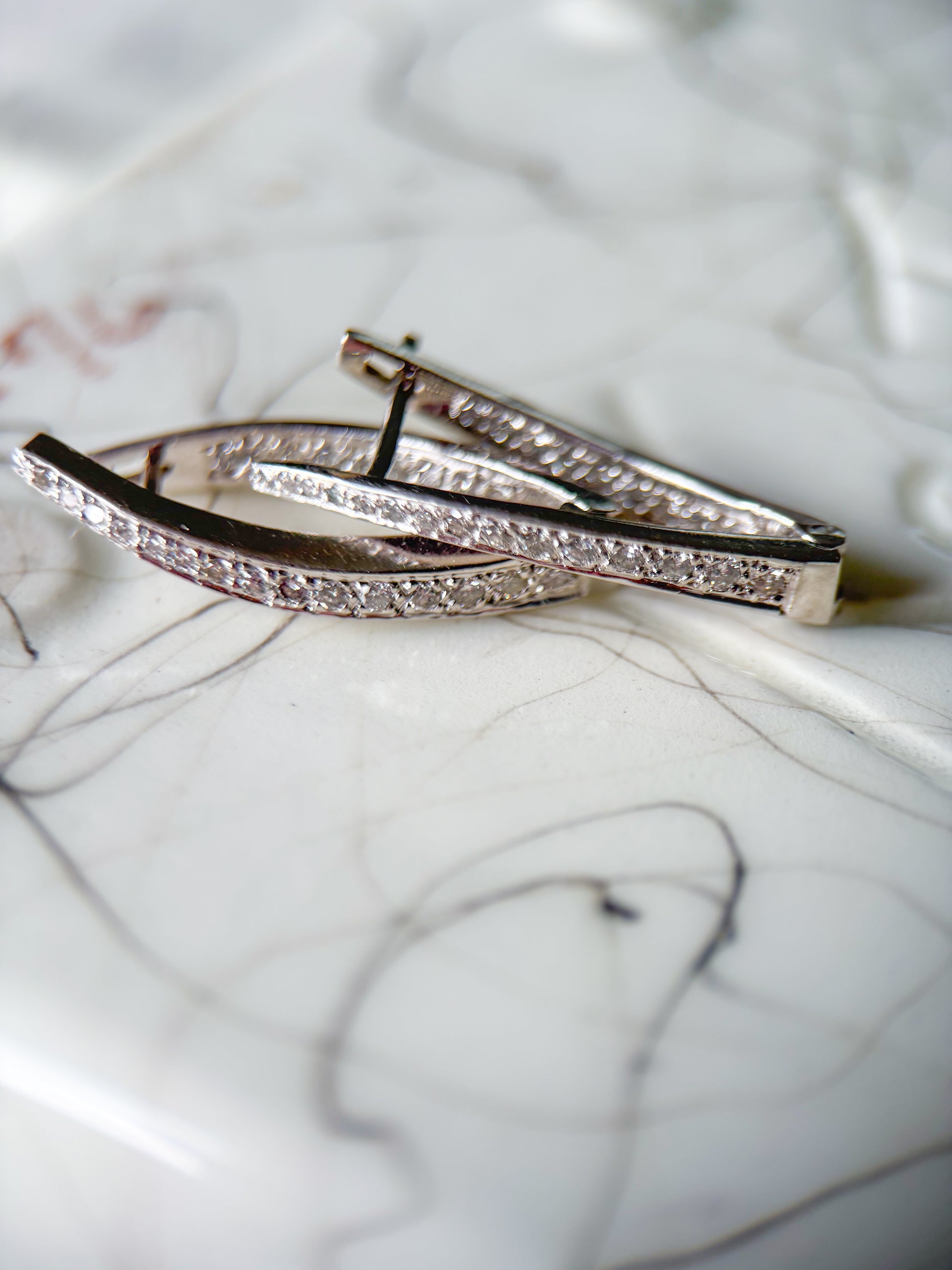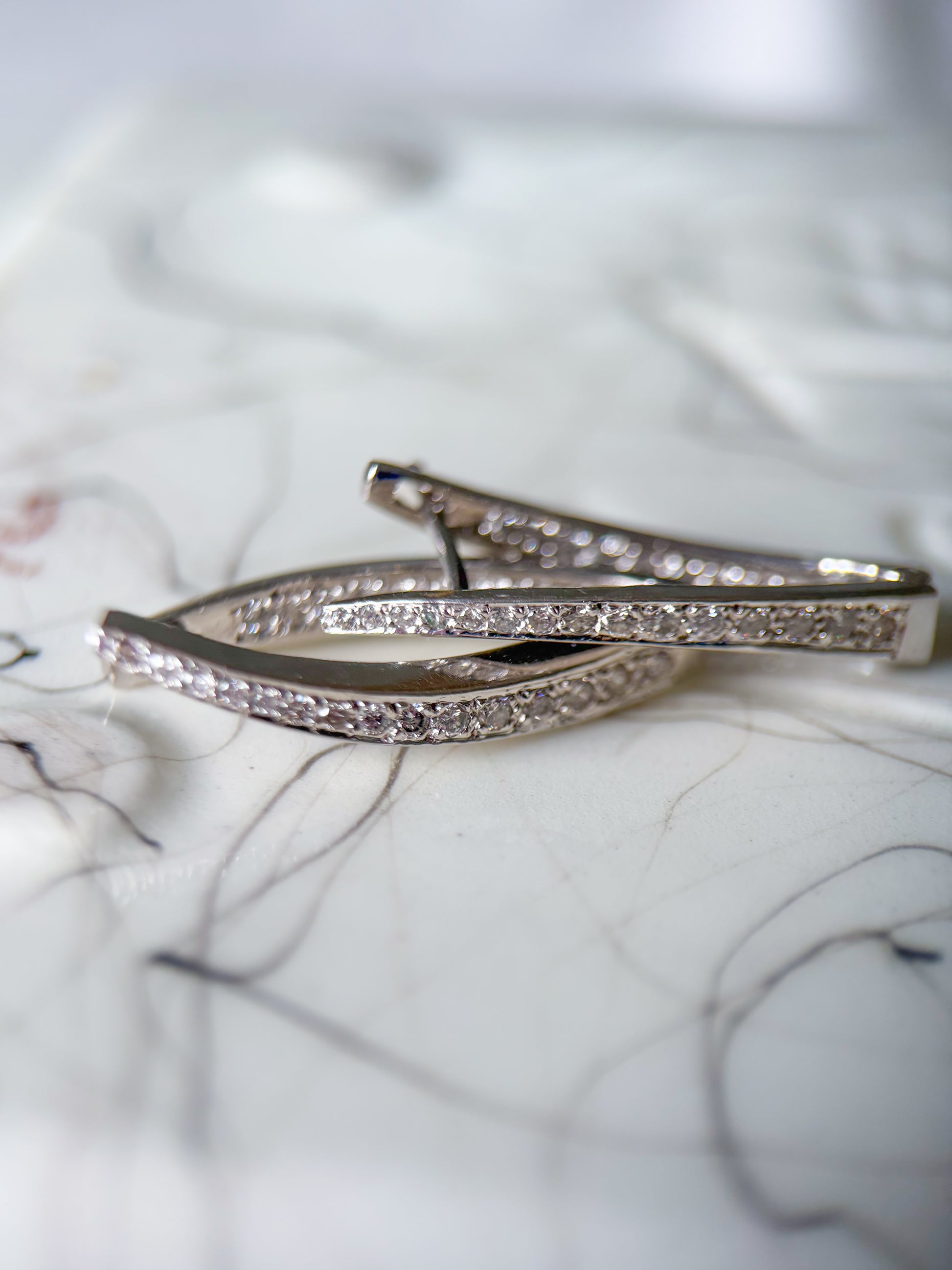 Beautiful, vintage, 14k white gold and natural diamond V shaped hoops!
