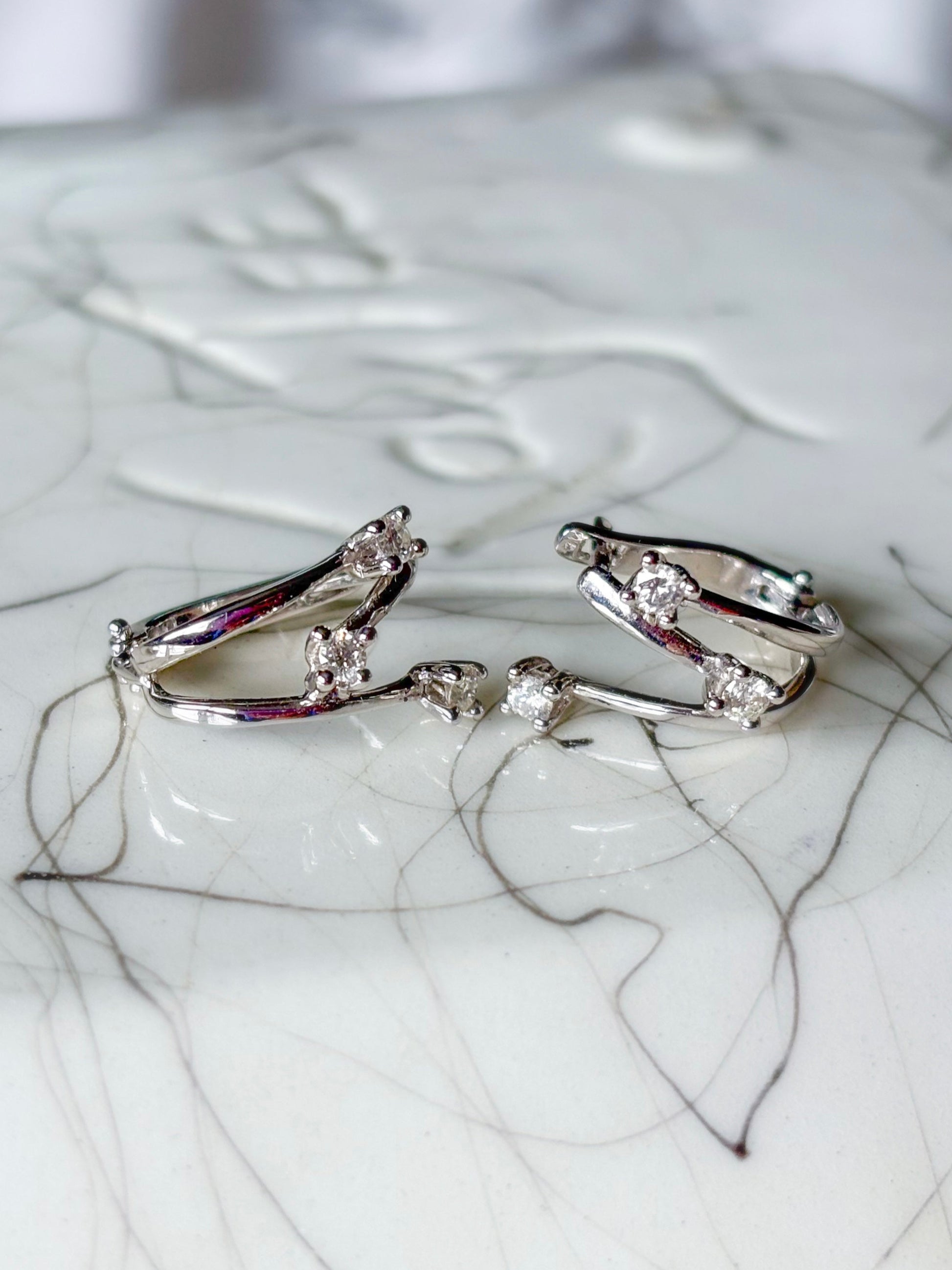 18k White Gold 3 Natural Diamond Burst Earrings