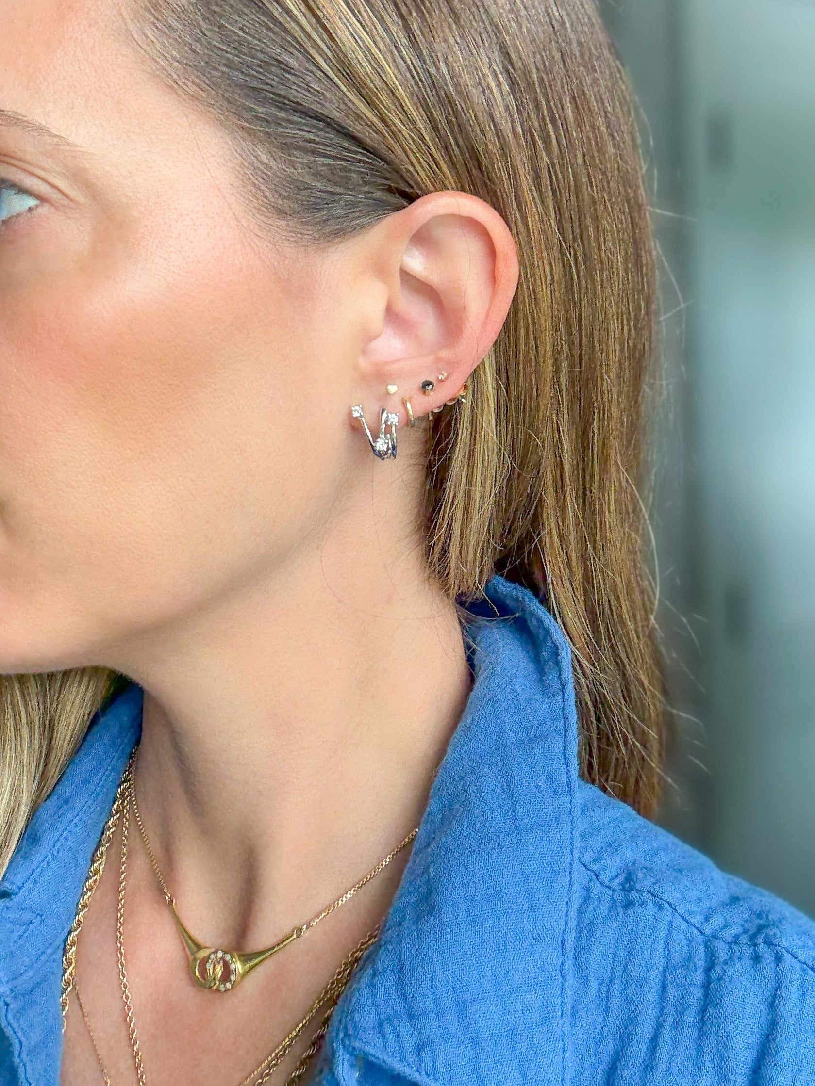 I LOVE these earrings! Made of 18k white gold and natural diamonds, they feature a 3 diamond bust of sparkle on your ears!