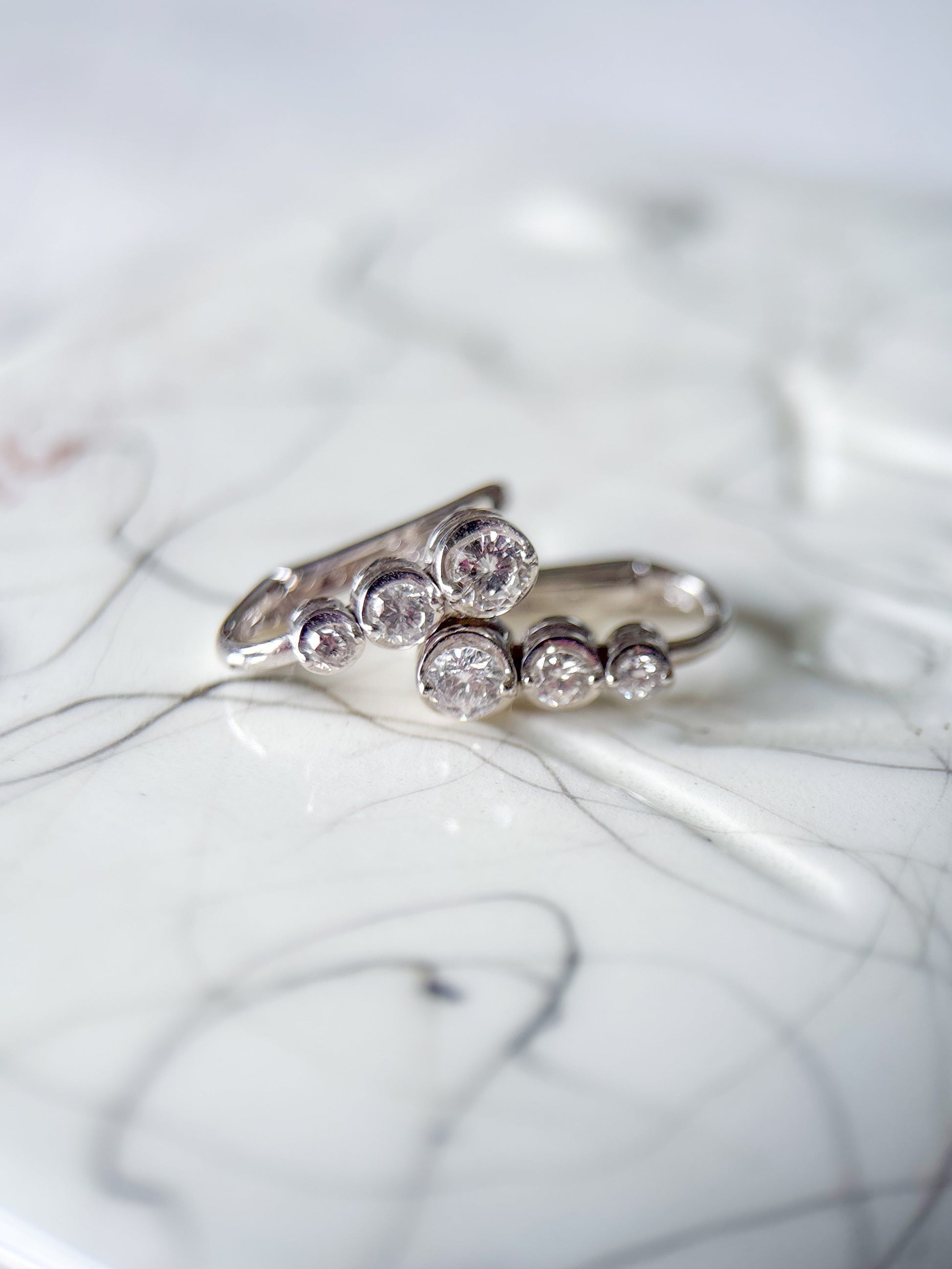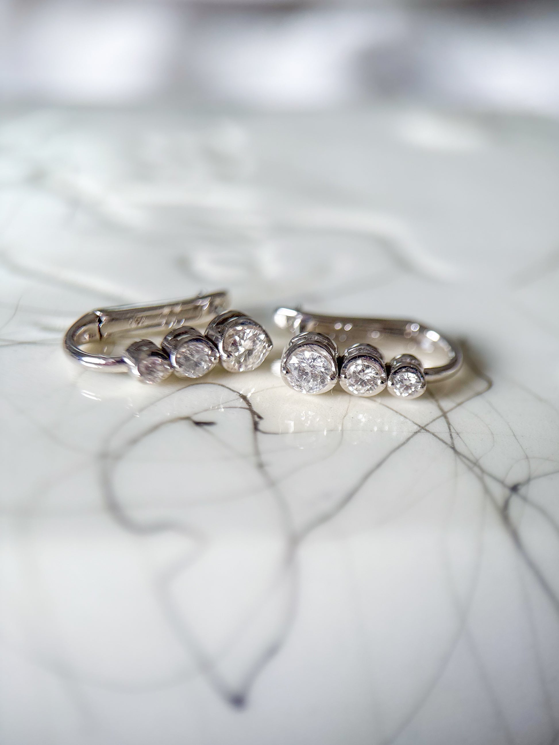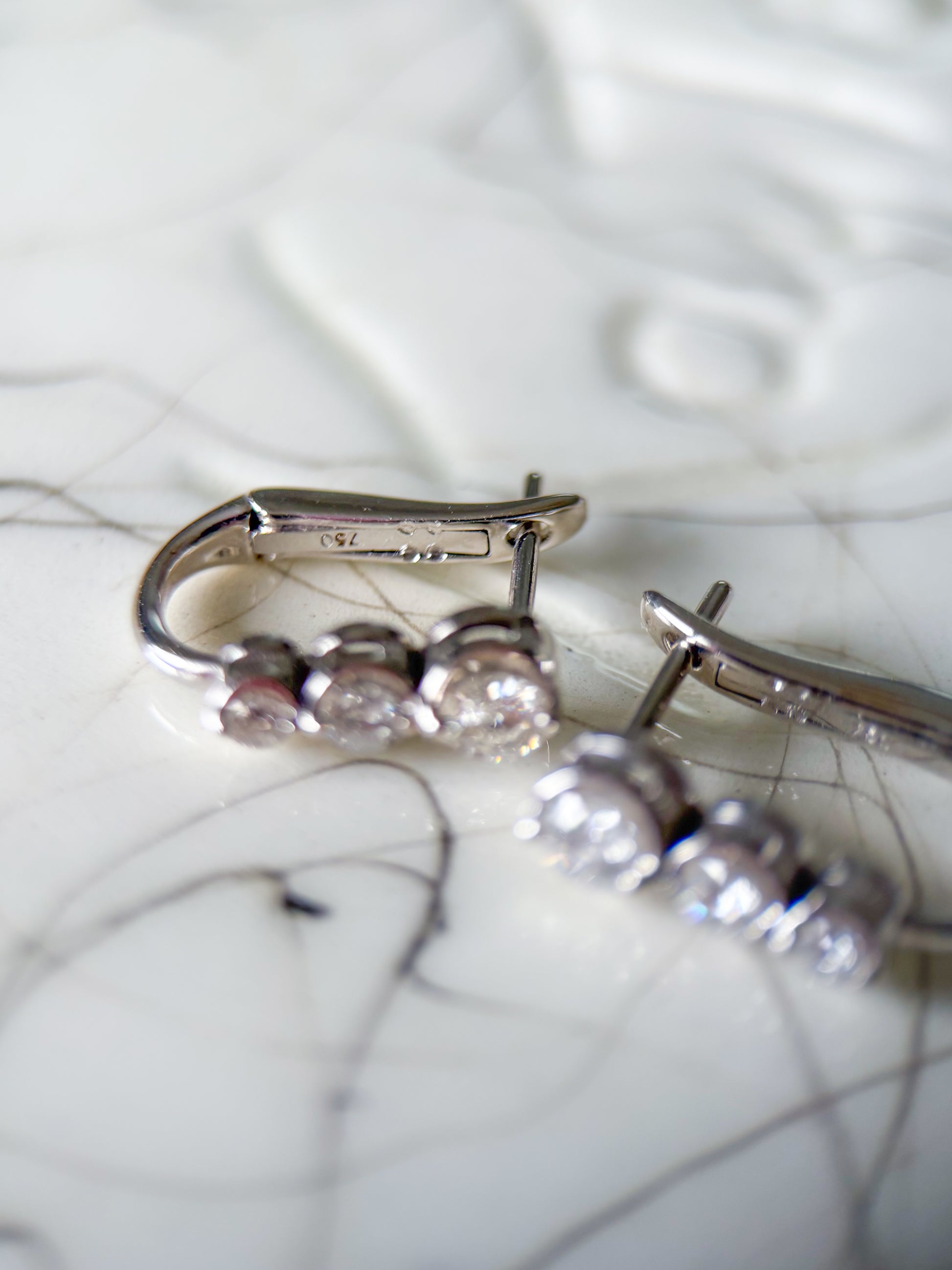 Really love these! 18k white gold and natural diamond drop earrings featuring 3 round diamonds.
