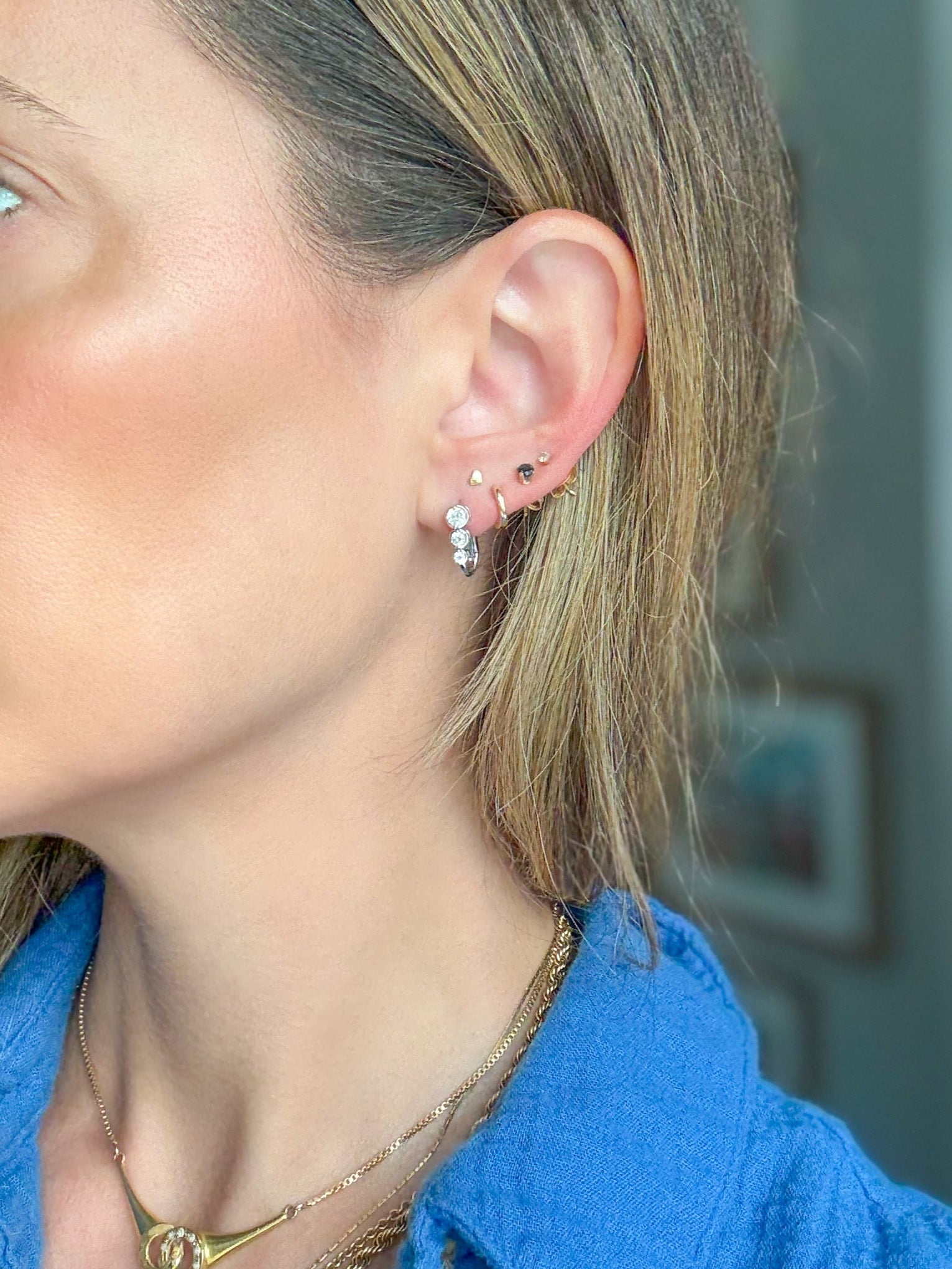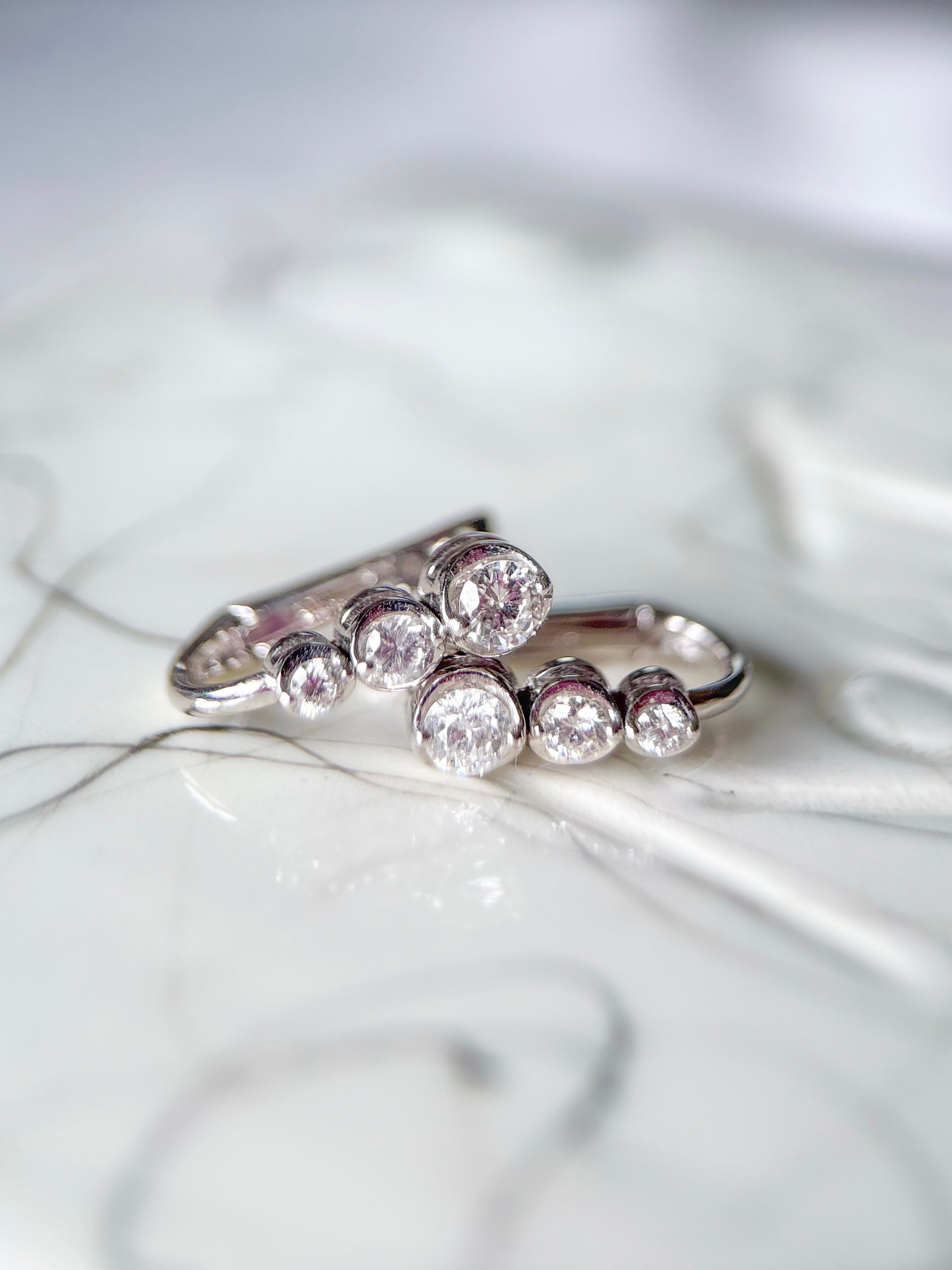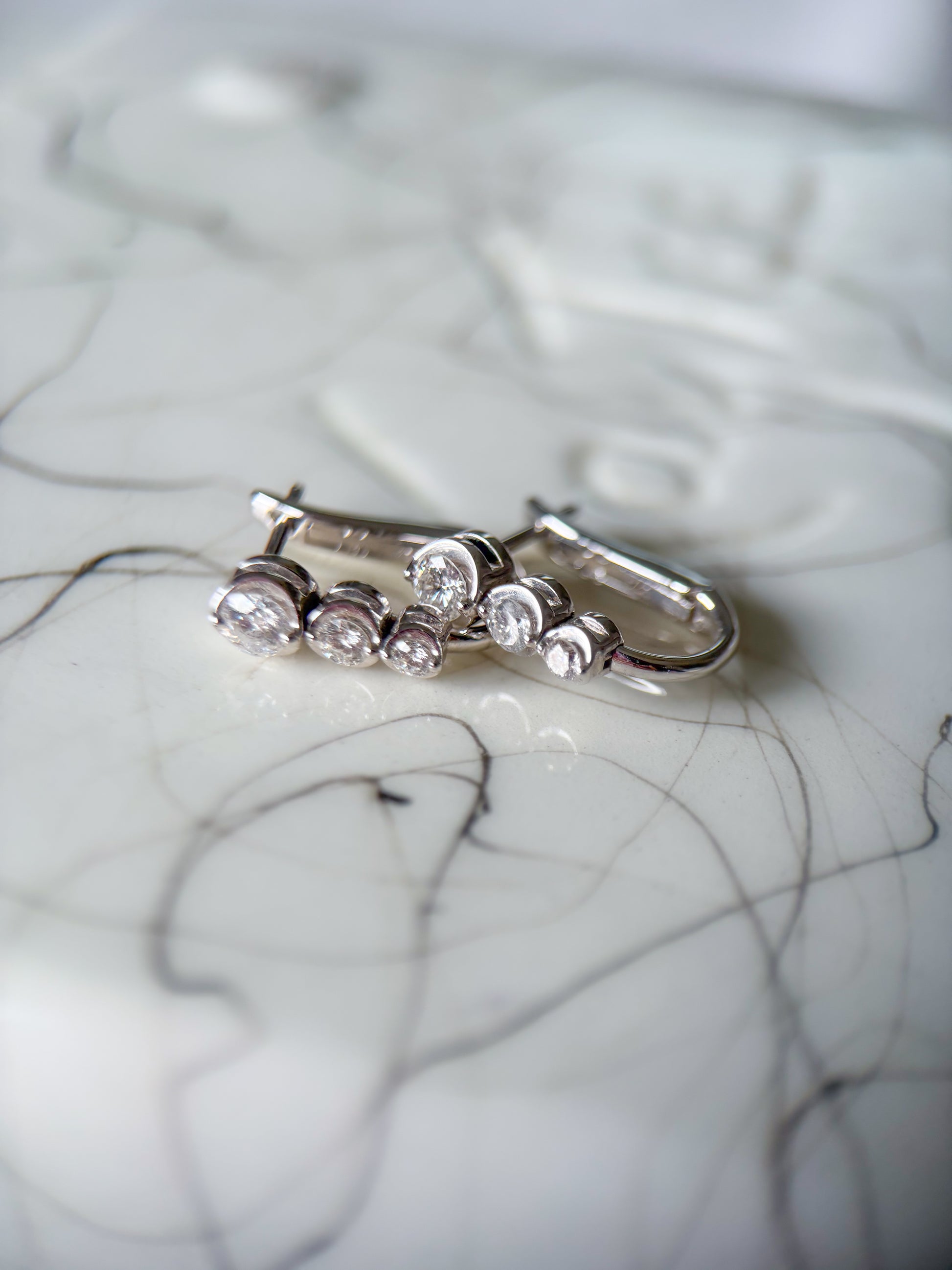 Really love these! 18k white gold and natural diamond drop earrings featuring 3 round diamonds.