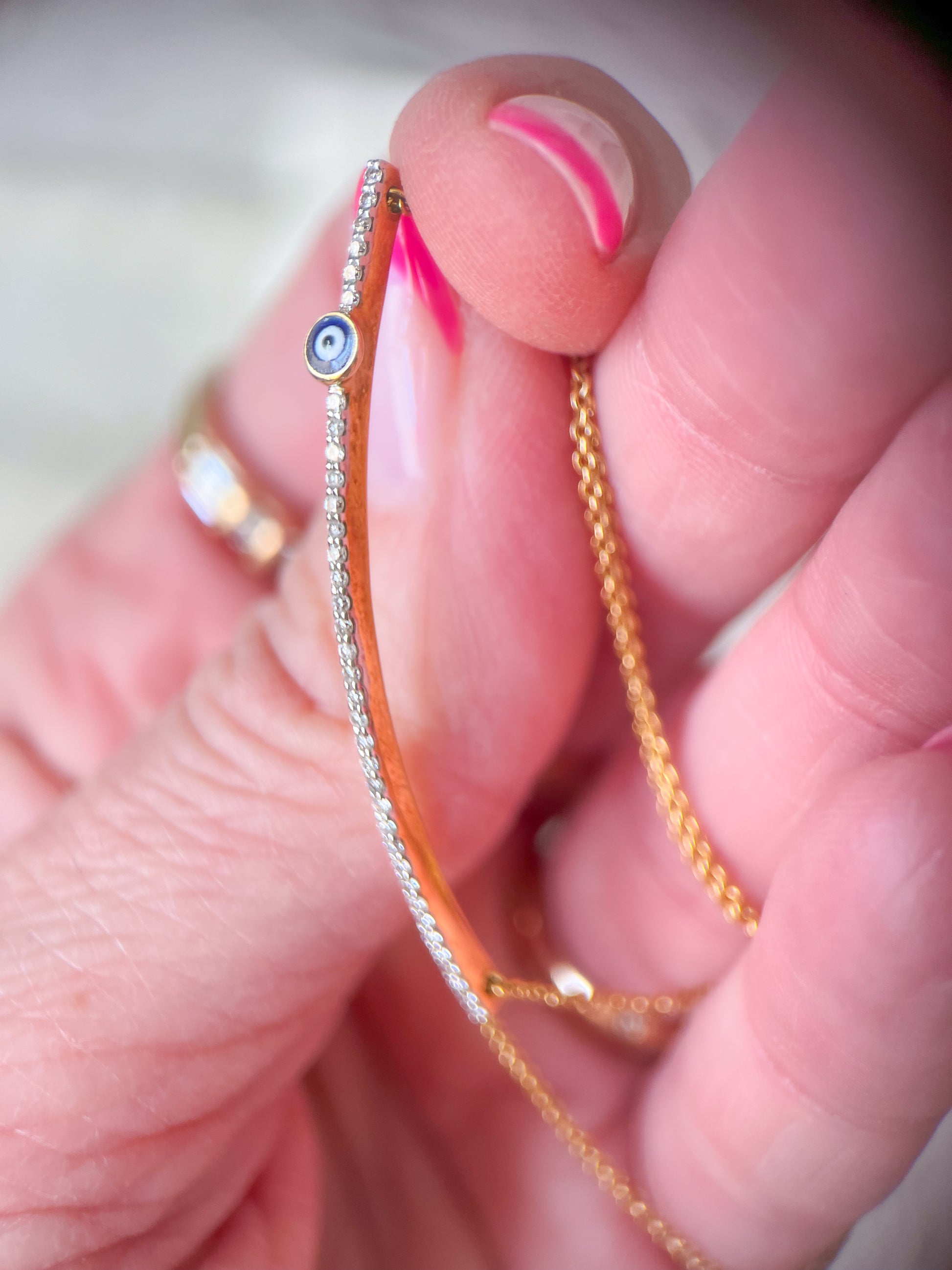 18k Yellow Gold and Rose Gold Natural Diamond Evil Eye Chain 7 Inch Bracelets