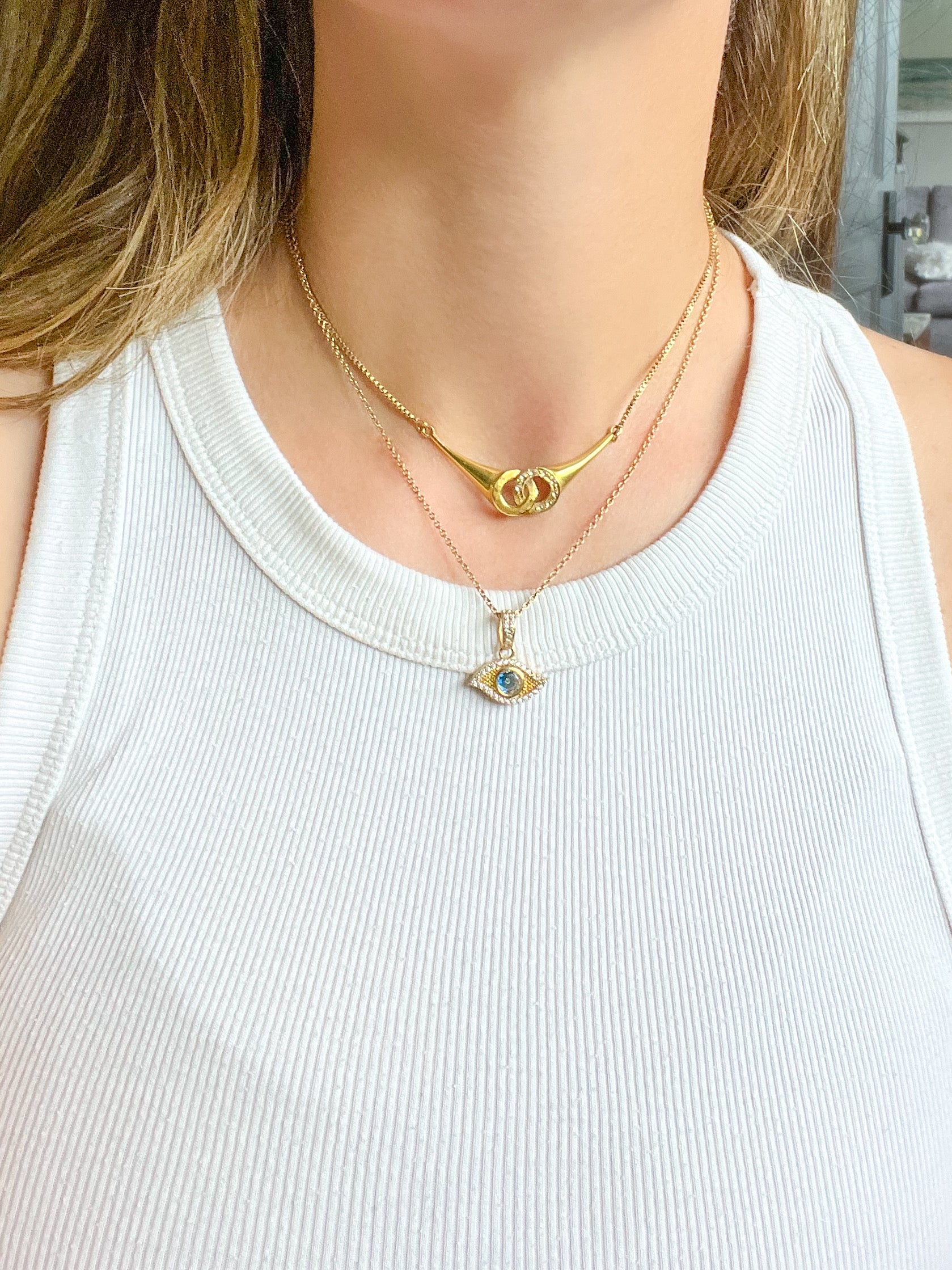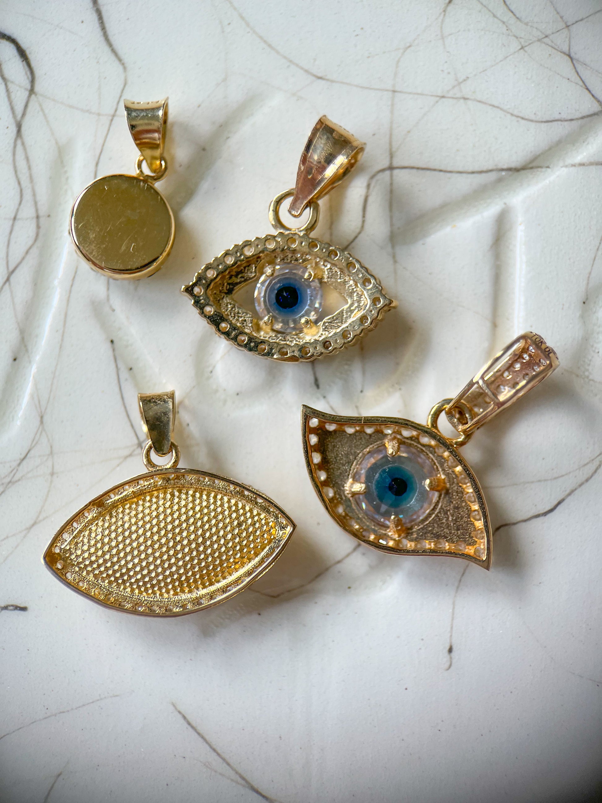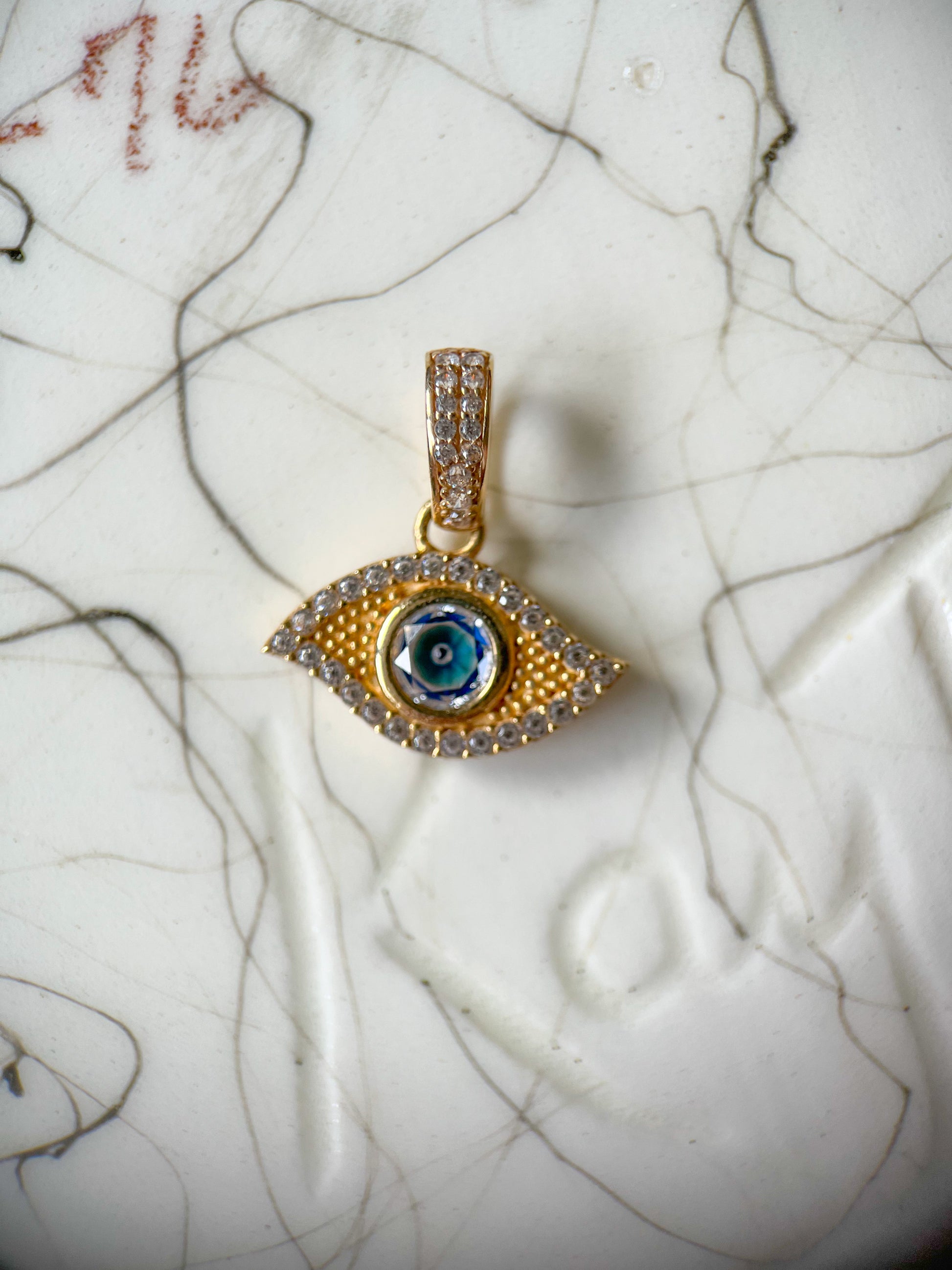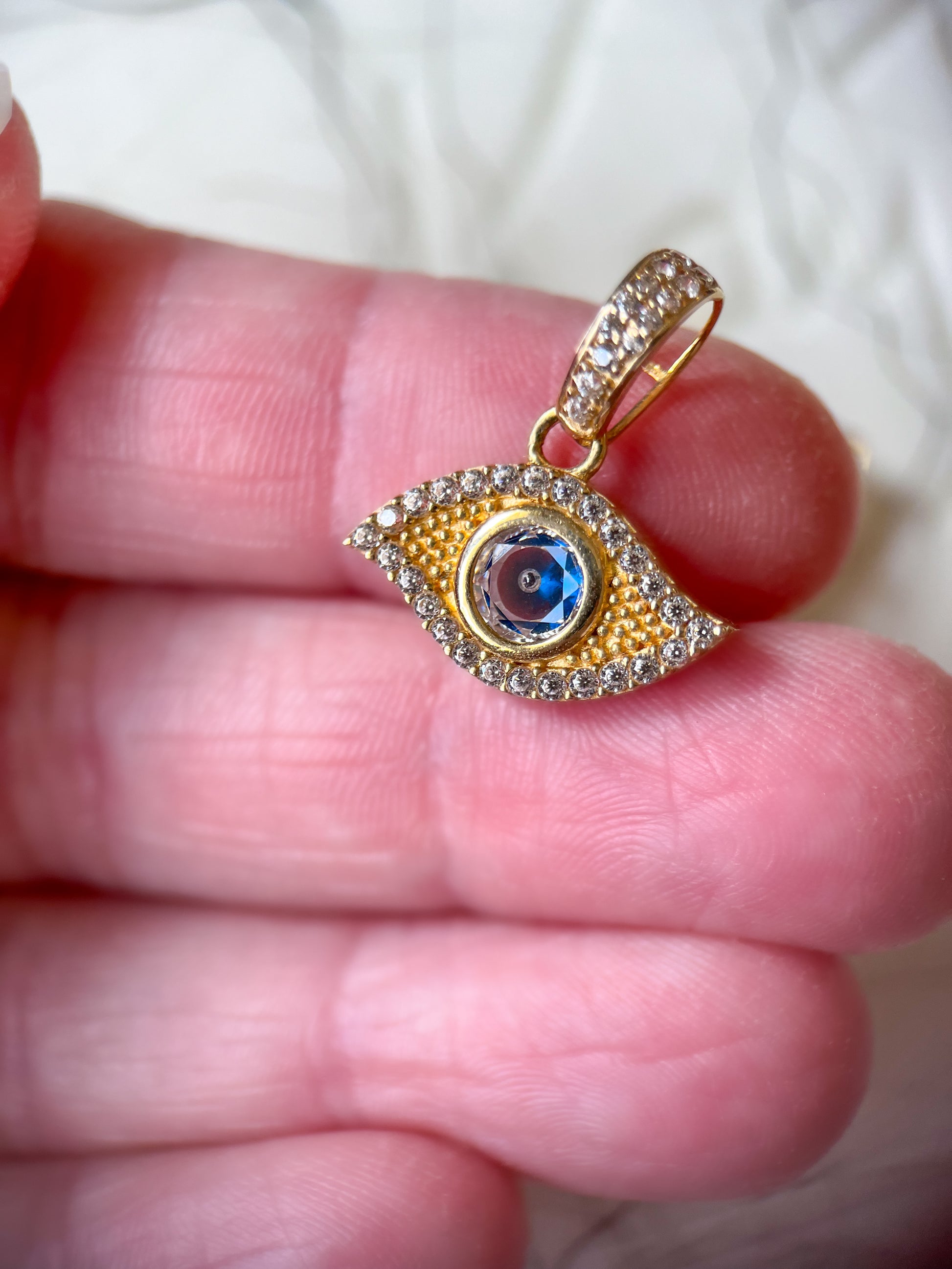Really pretty, 10k yellow gold evil eye charm. This charm is made with CZ and is not vintage. Chain not included.
