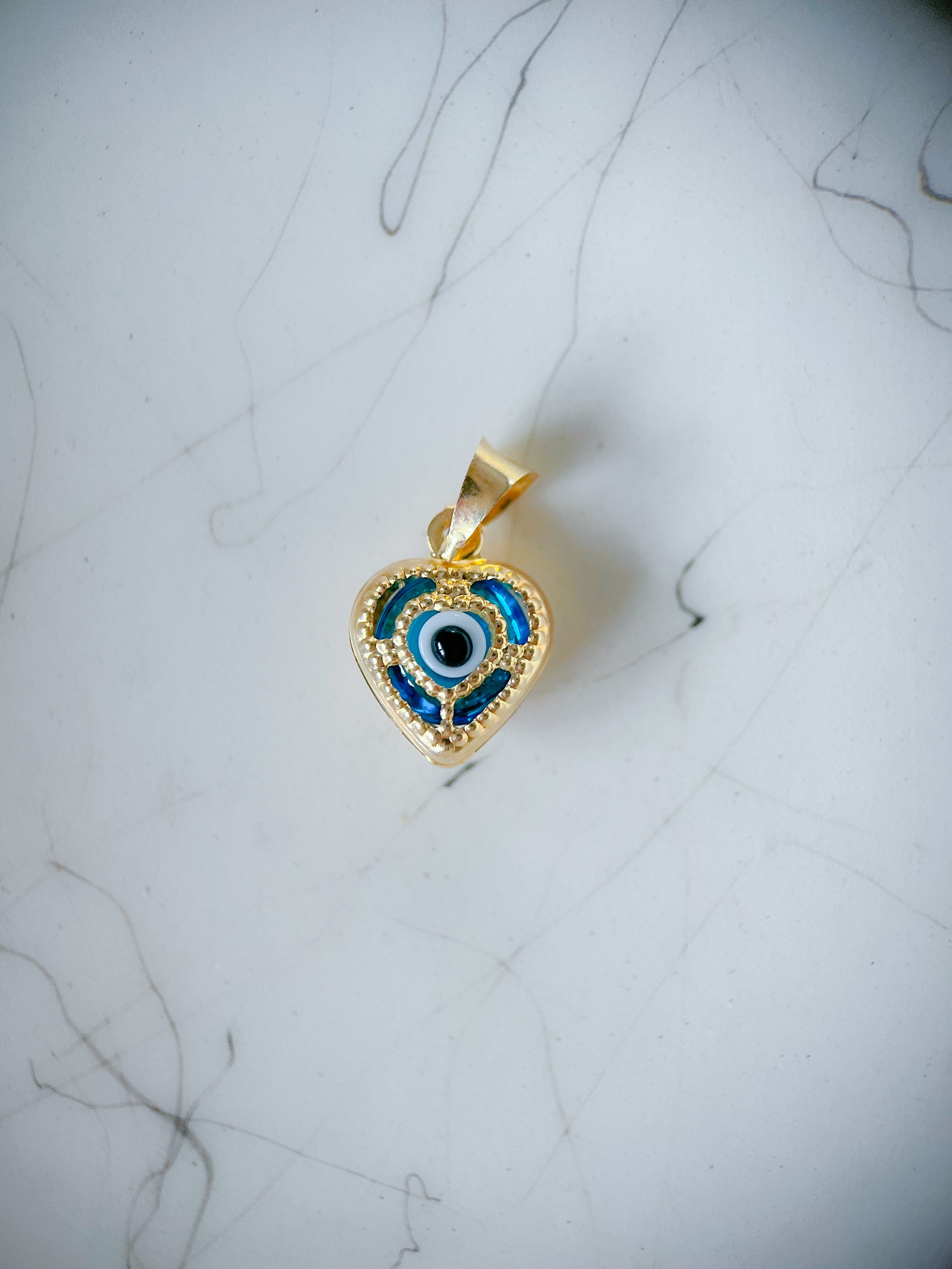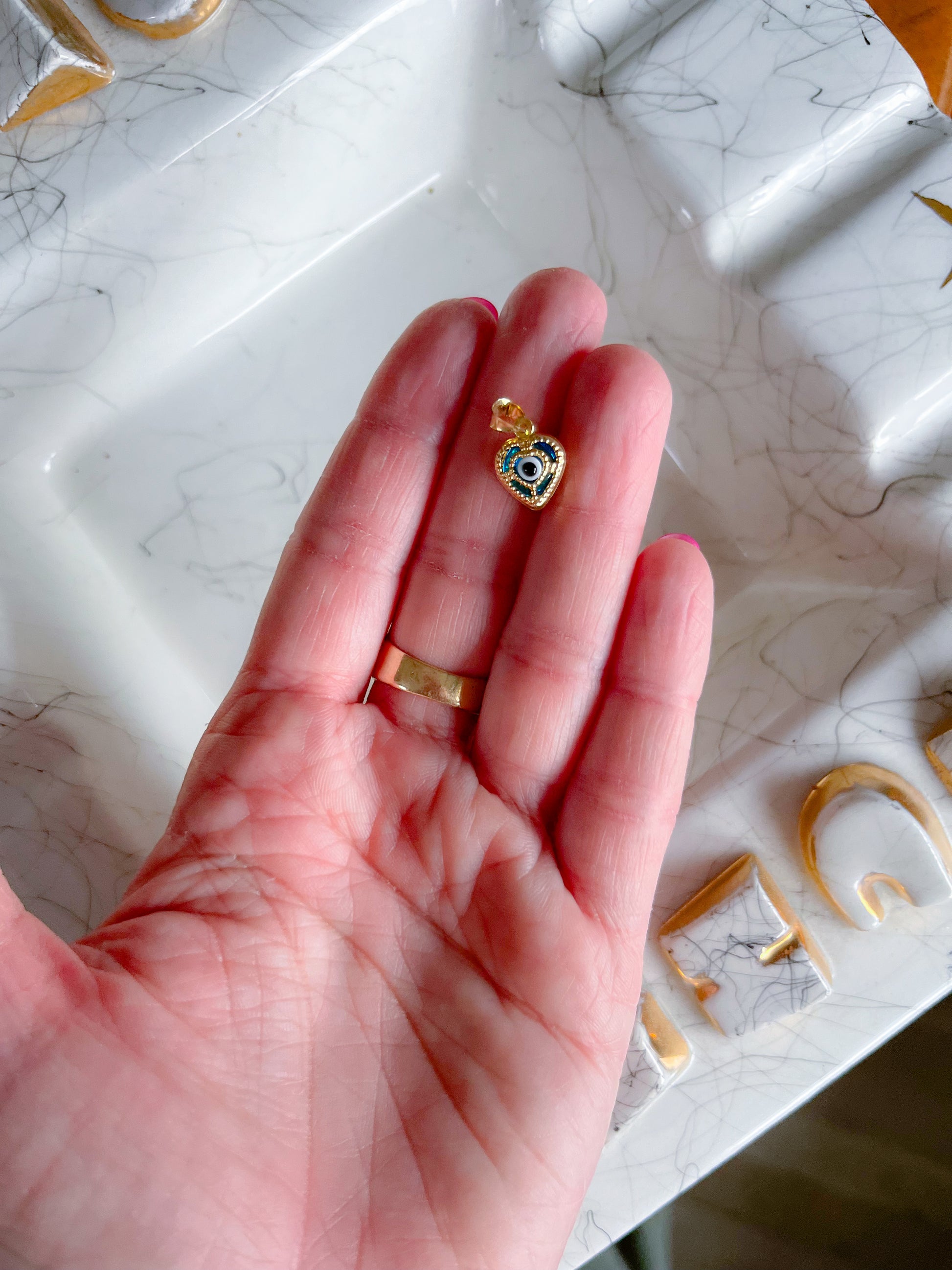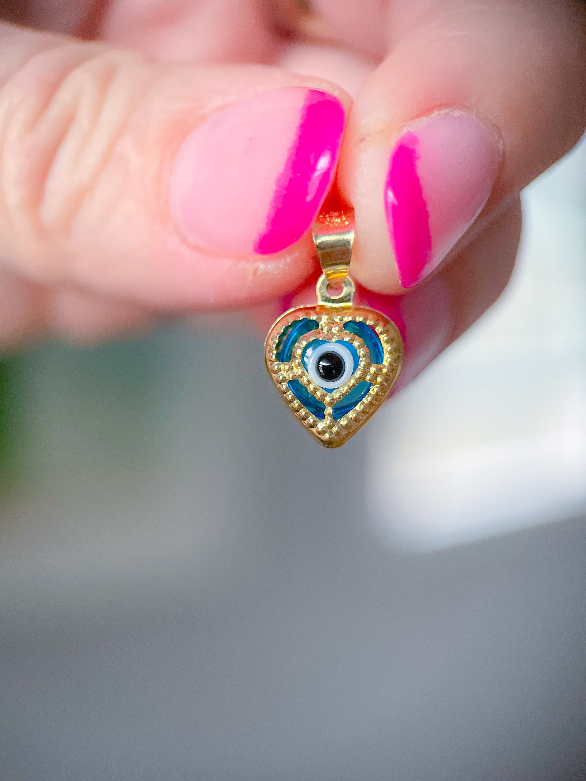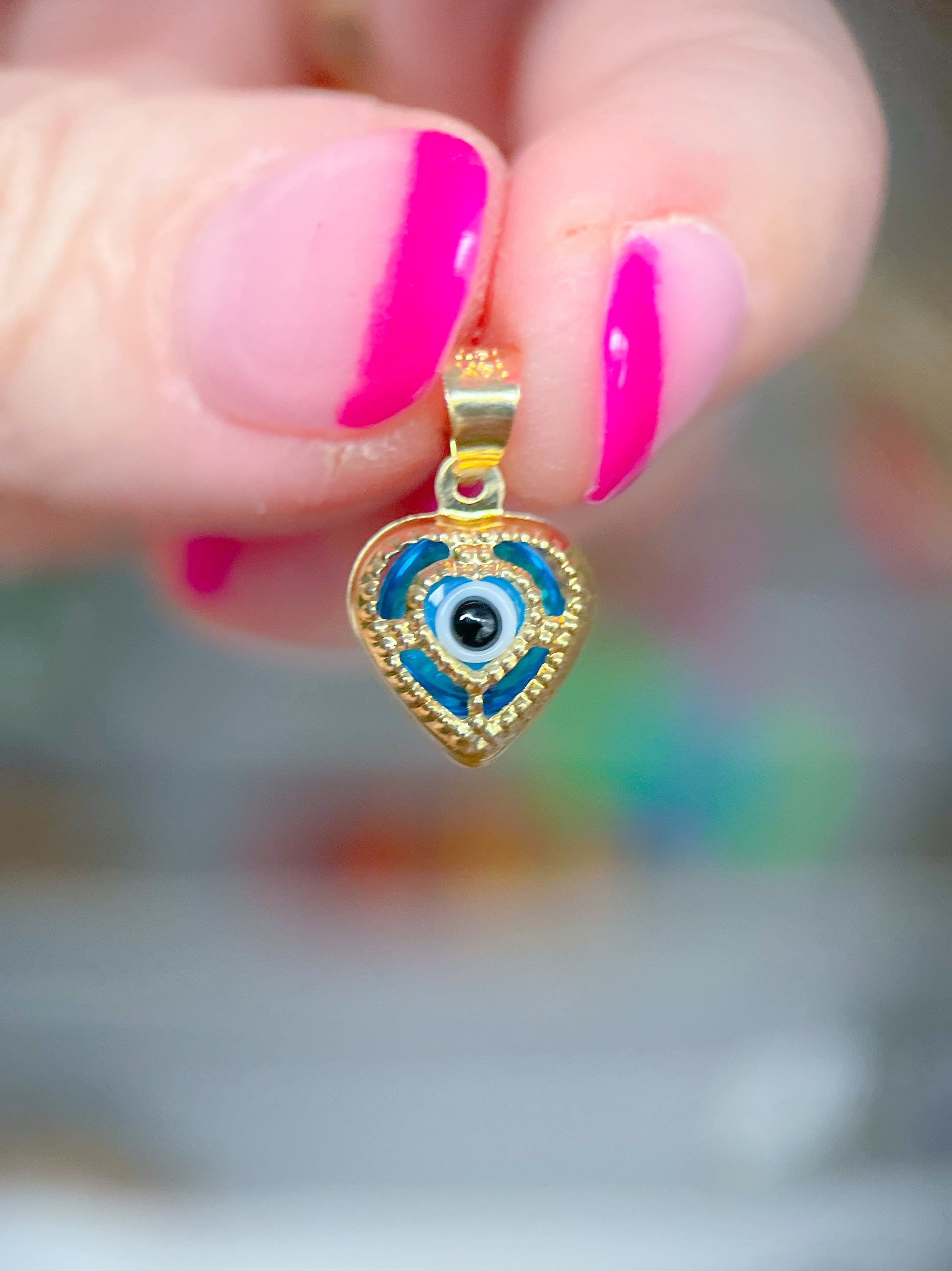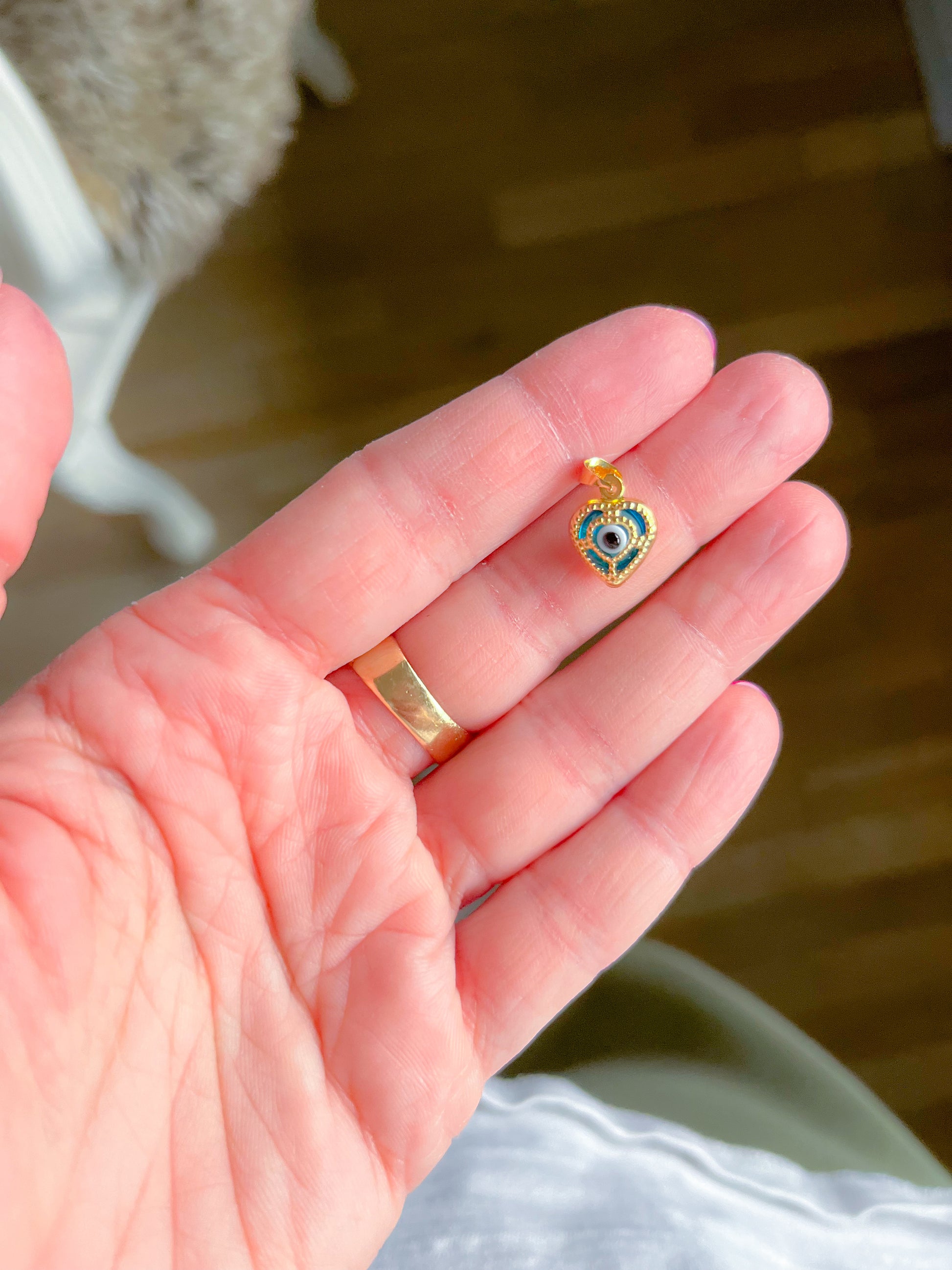 Super cool, 14k yellow gold, double sided, evil eye charms in various shapes - an eye, a hamsa and a heart. These charms are open on both sides and really catch the light so beautifully. Everyone needs a good luck charm, and these are just perf. Chain is not included. These charms are not vintage.