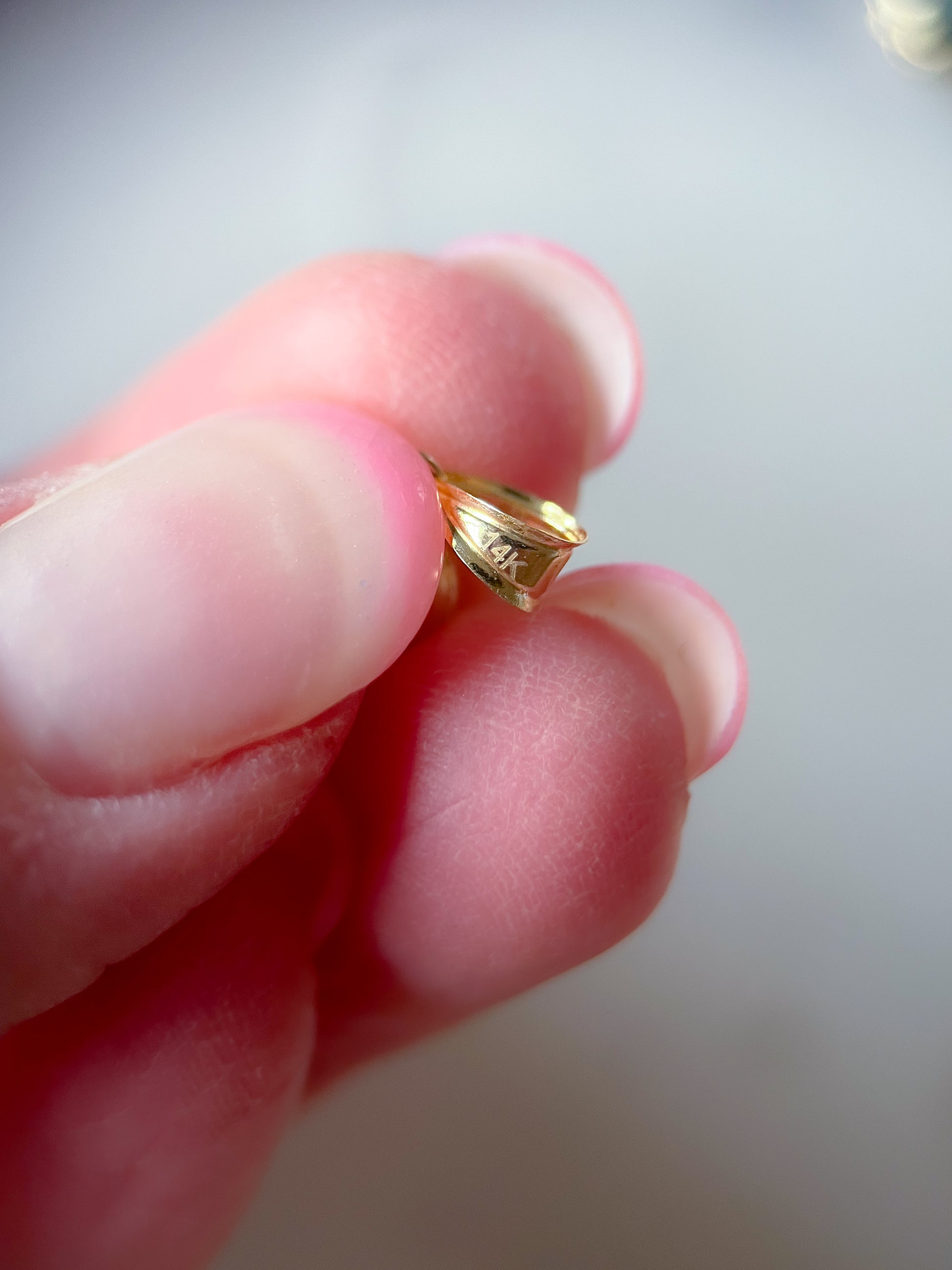Condition: All of our pieces are antique and/or vintage (if not otherwise noted), which means they had previous owners and were worn and loved in their past life. Vintage and antique jewelry is often not perfect and will shows signs of wear. This can be imperfections like small nicks or scratches, or scuffs on the gold or the stones. This is part of what makes each piece special and unique. We do our best to photograph and describe each piece accurately and will point out any flaws we think are noteworthy. Please review all photos carefully and feel free to contact us to ask questions or request more photos prior to purchase.