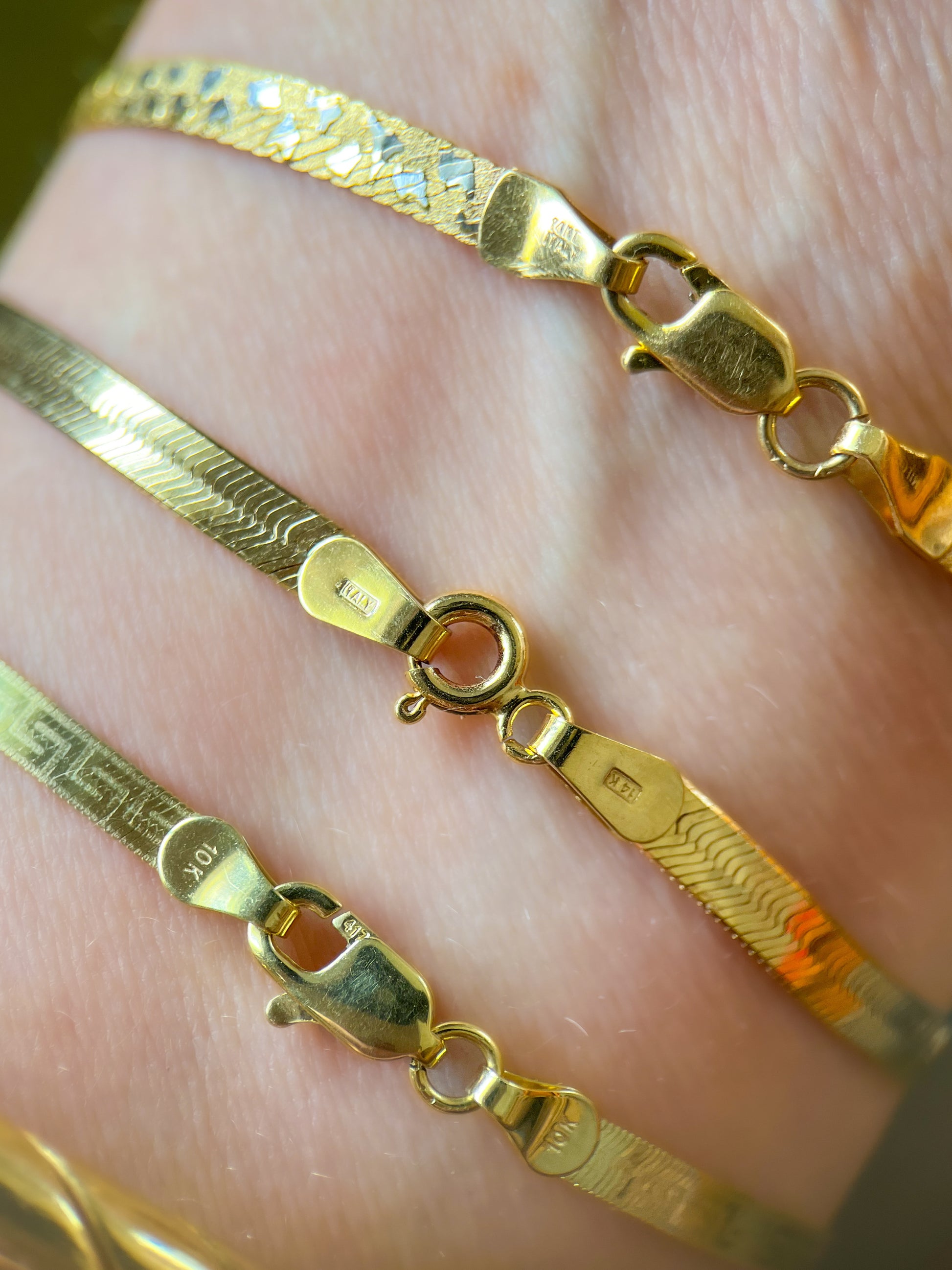 Herringbone Greek Style 10k Yellow Gold 7 Inch Bracelet