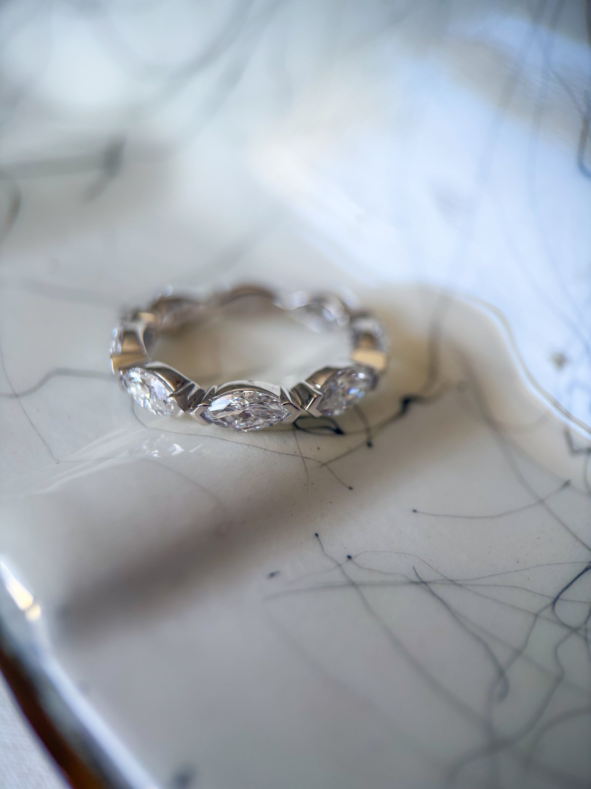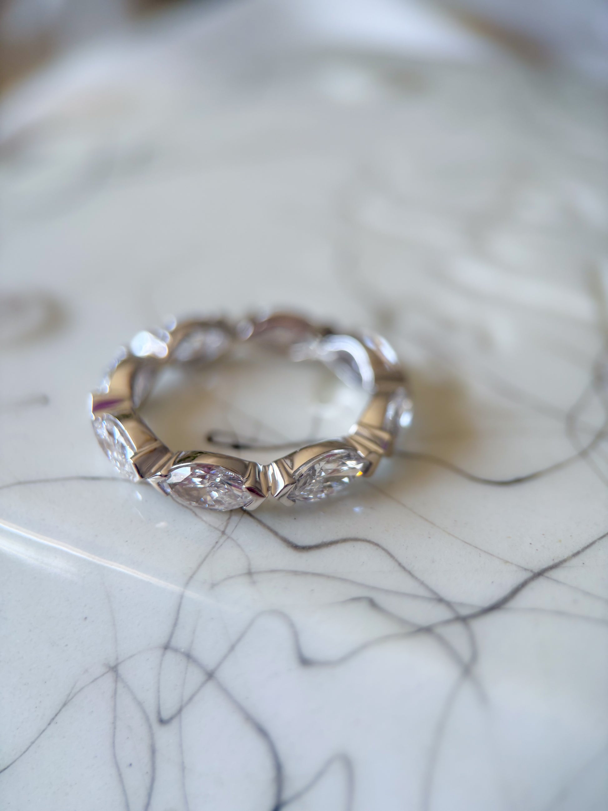 Lab Grown Diamond 14k White Gold Marquise Cut 2 Carat Eternity Band