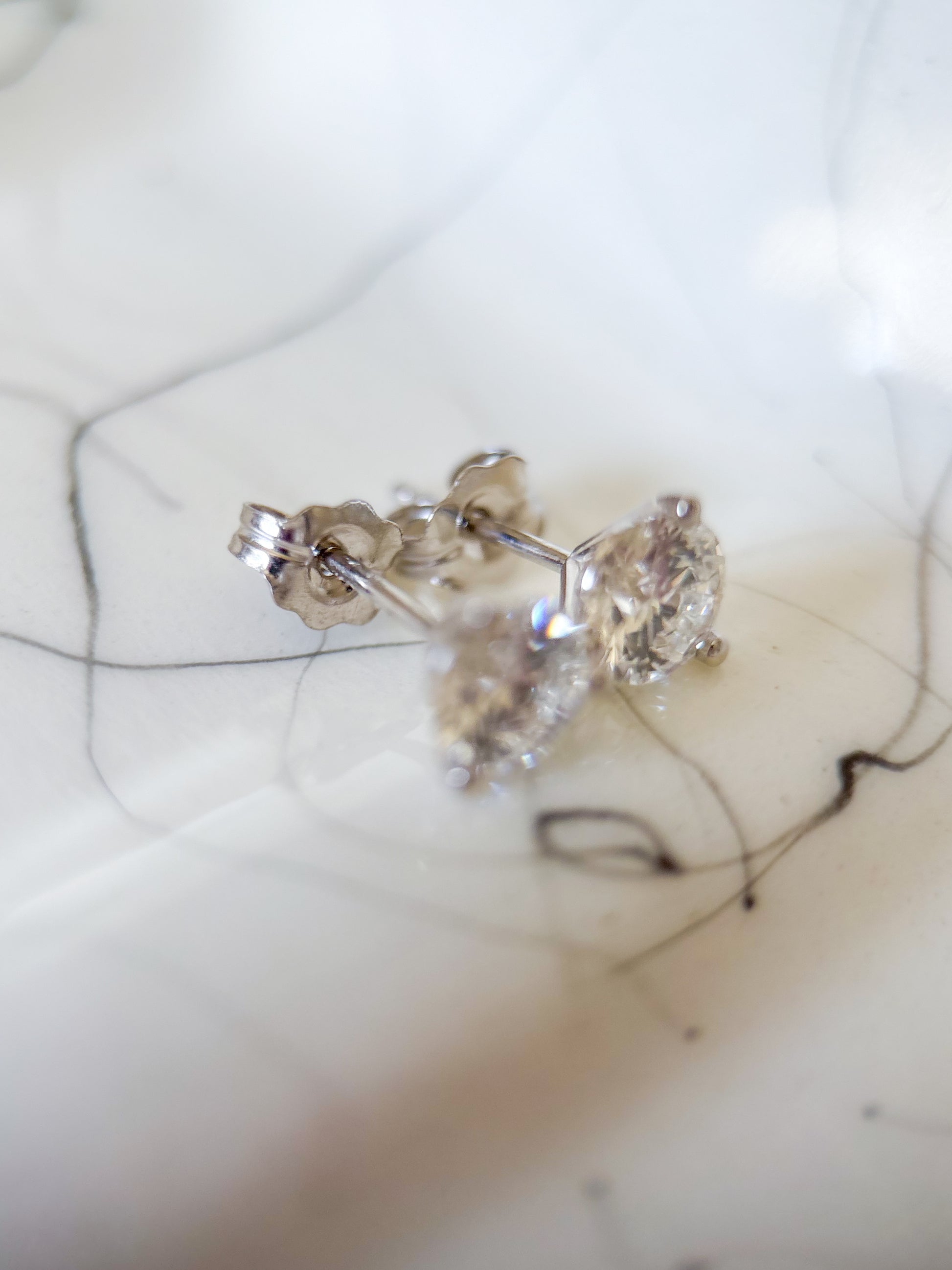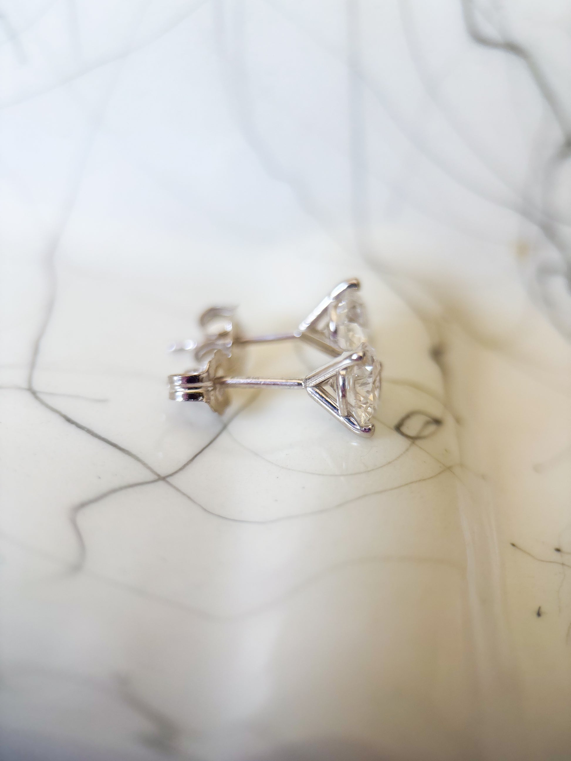 LAB GROWN DIAMOND round stud earrings set in 14k white gold. Setting is a 3 prong martini setting.