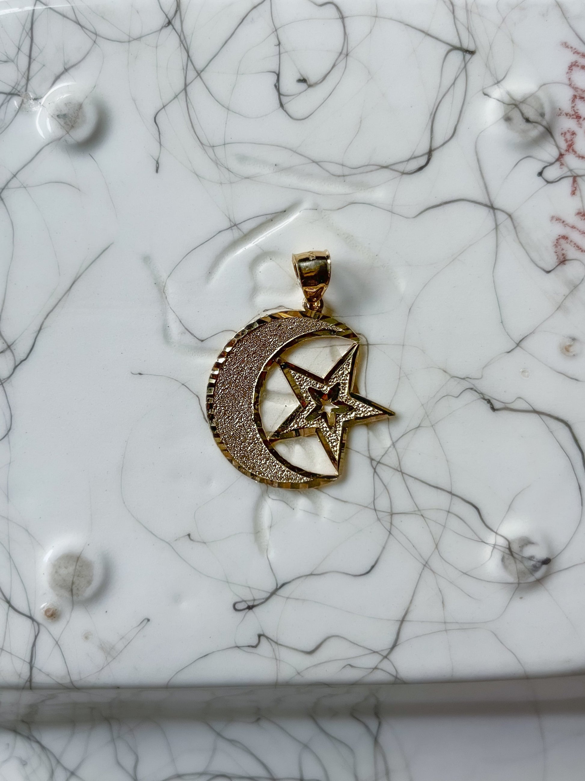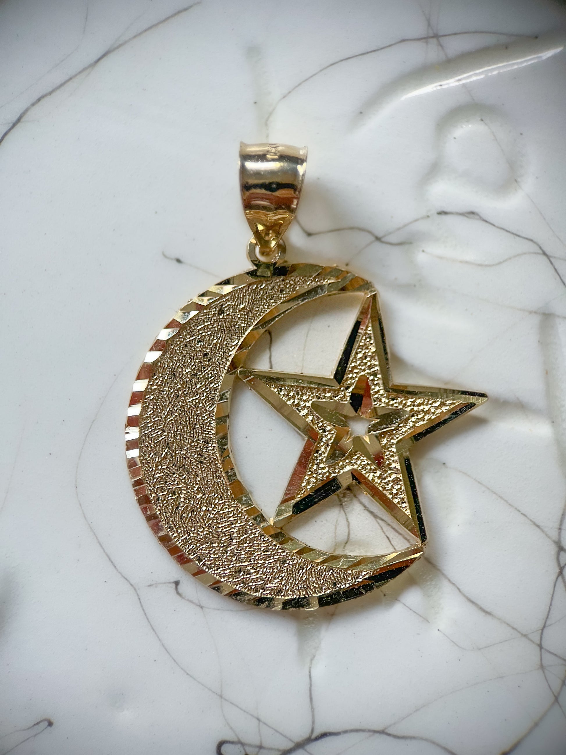 Big, 10k yellow gold moon and star charm! This beauty is not vintage. Chain not included.