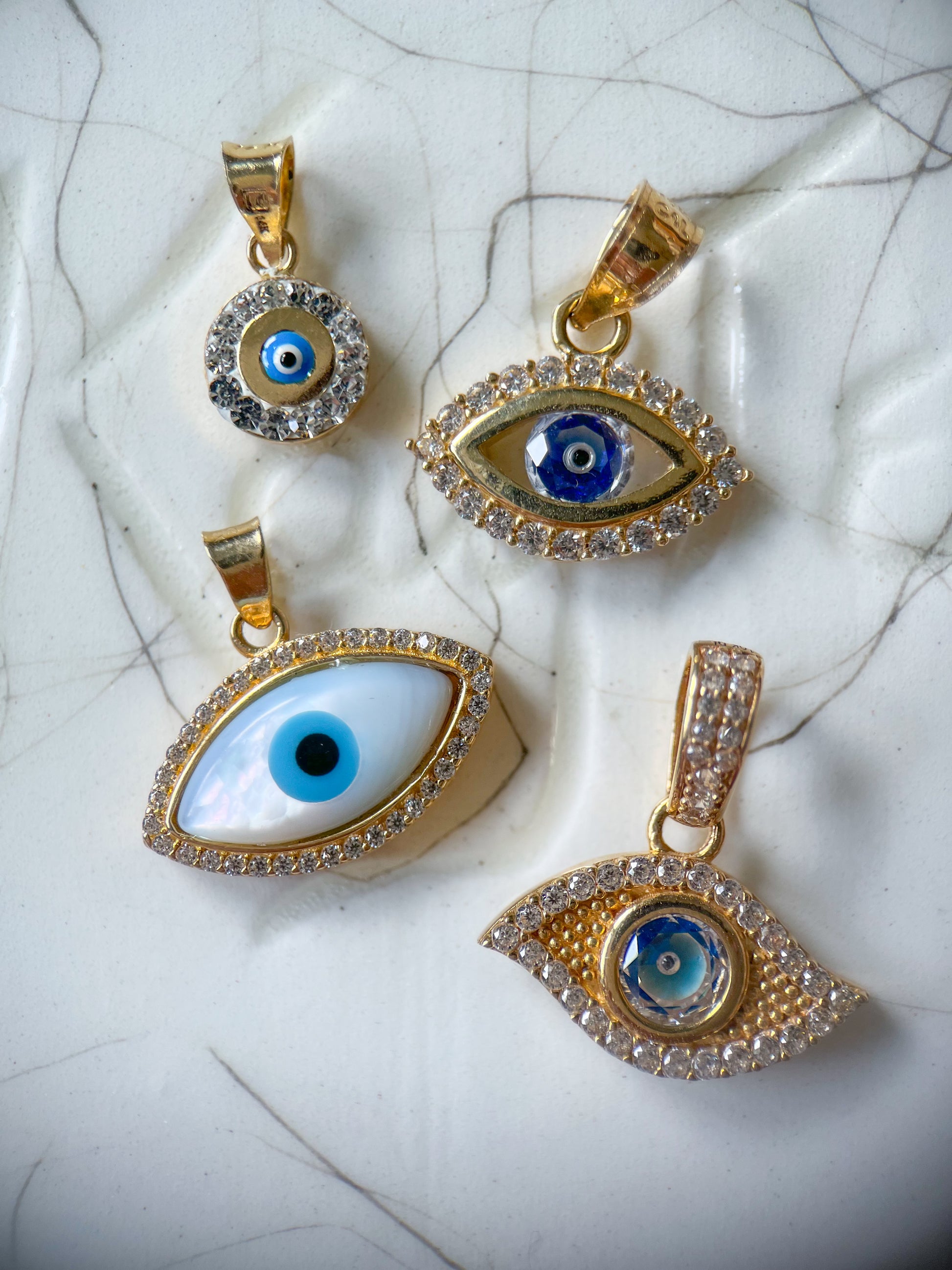 This beautiful, 10k yellow gold and mother of pearl evil eye charm is not vintage. Chain not included.