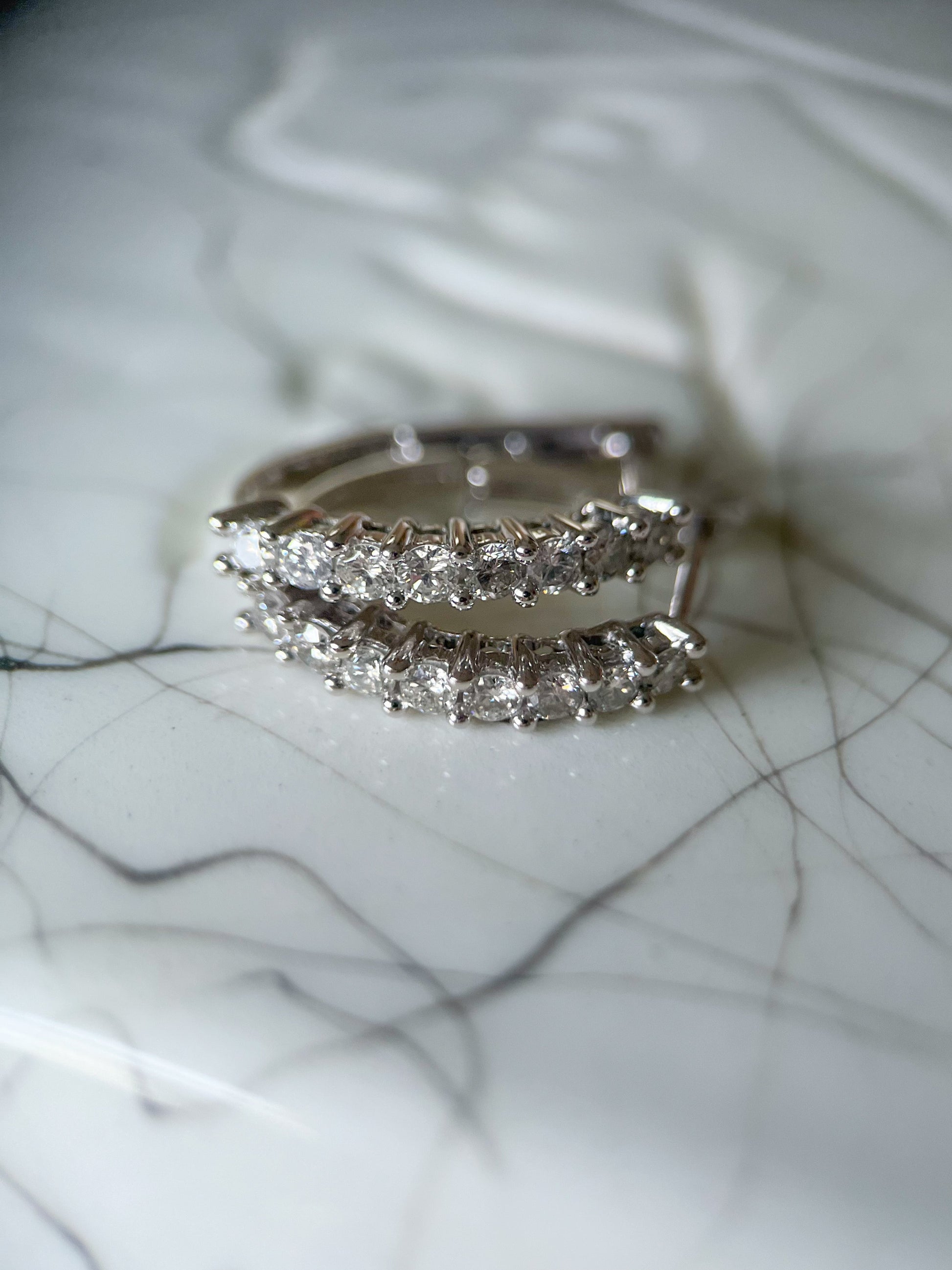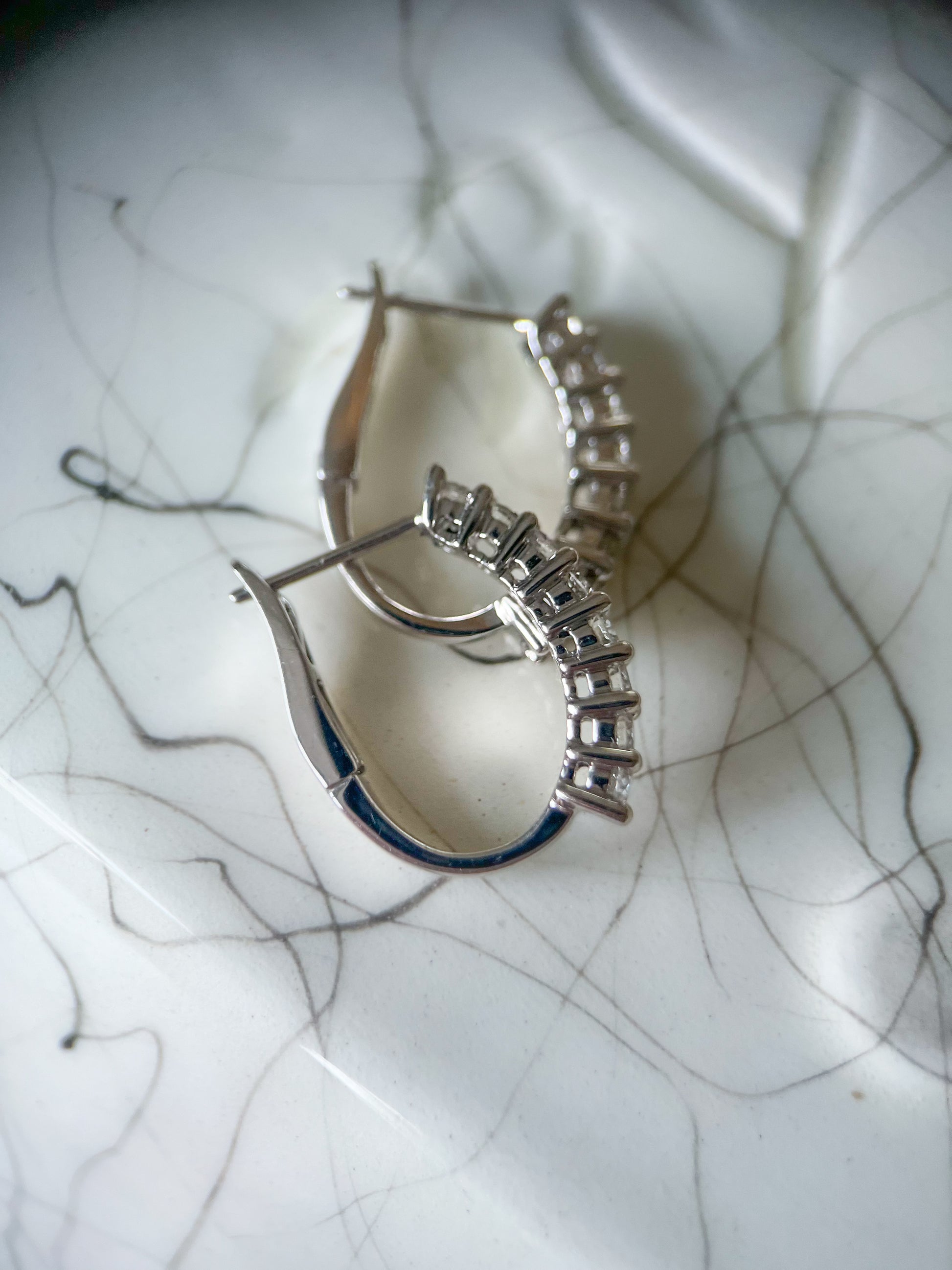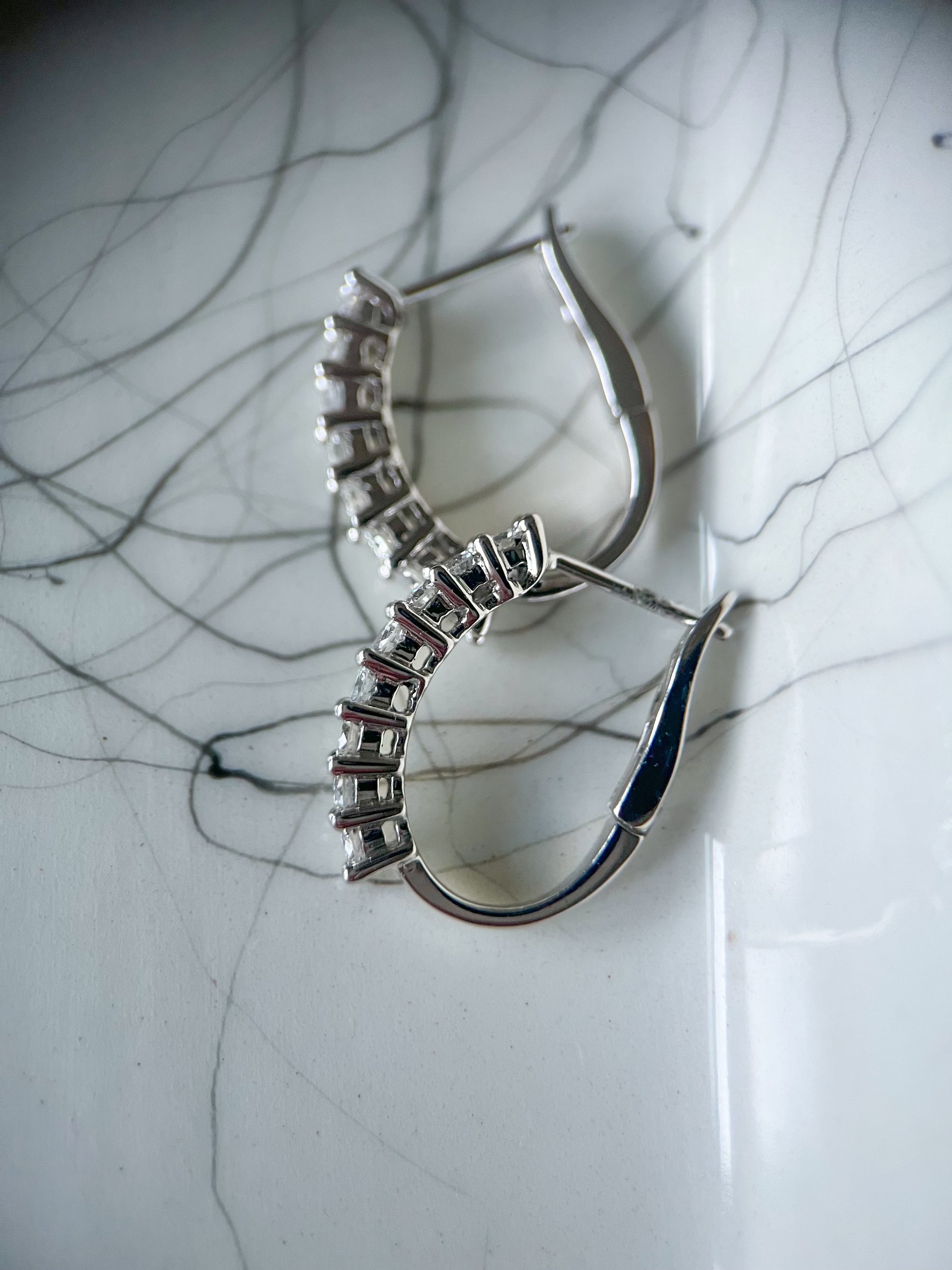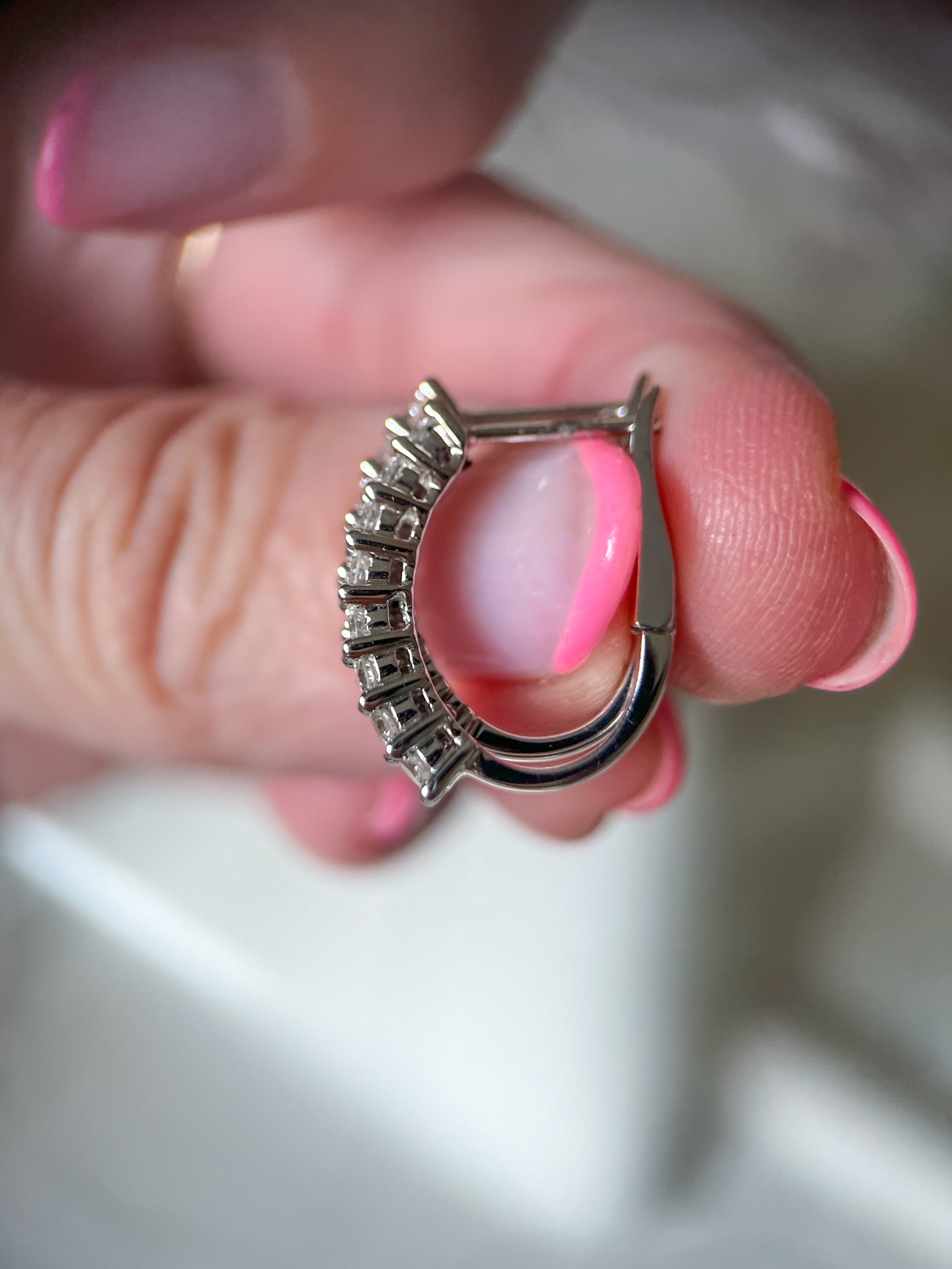 Natural Diamond 14k White Gold Half Hoop Earrings