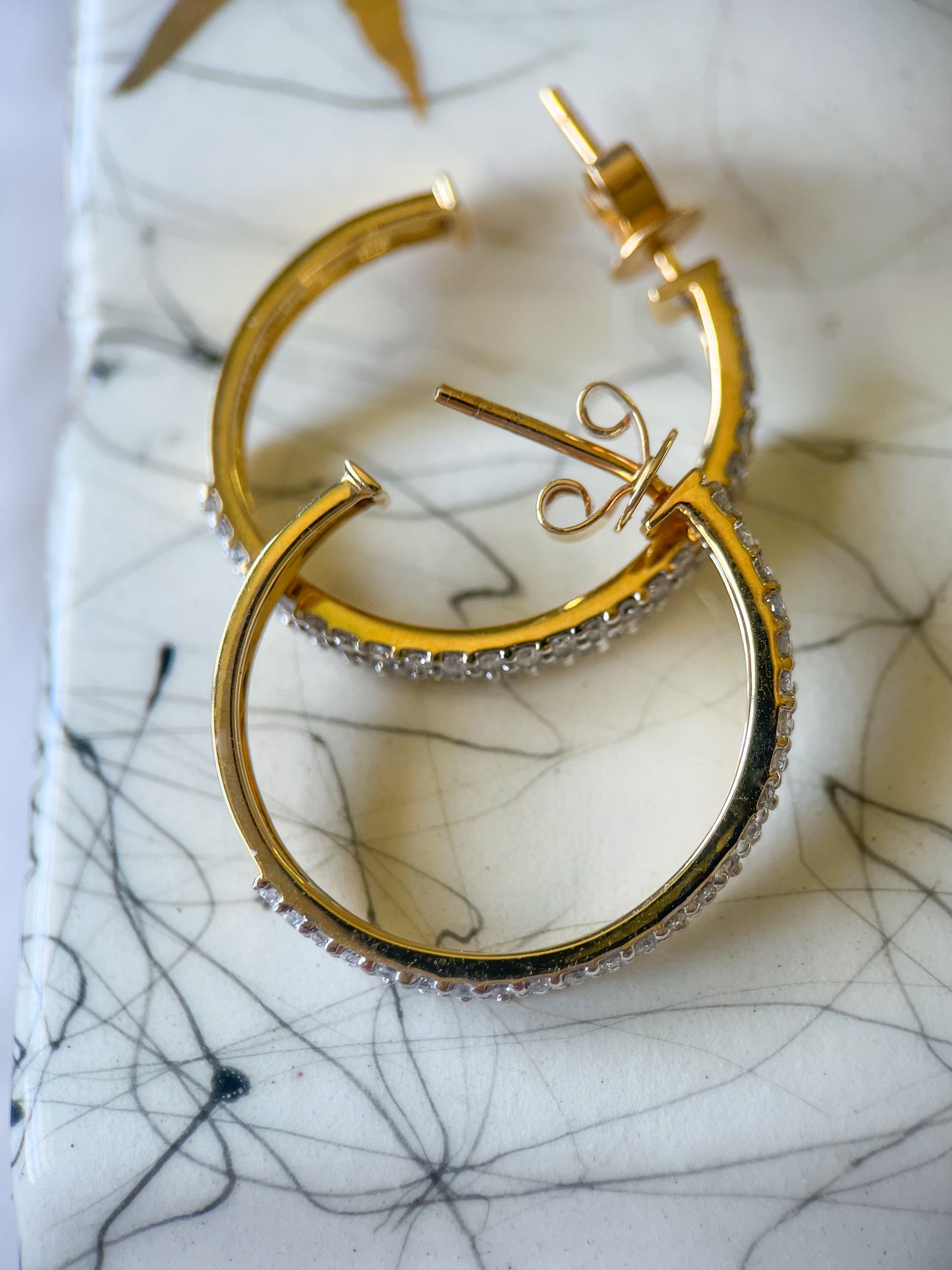 Perfect, everyday diamond hoops! These are not vintage. These beauties weigh 5.26 grams and feature natural round diamonds.