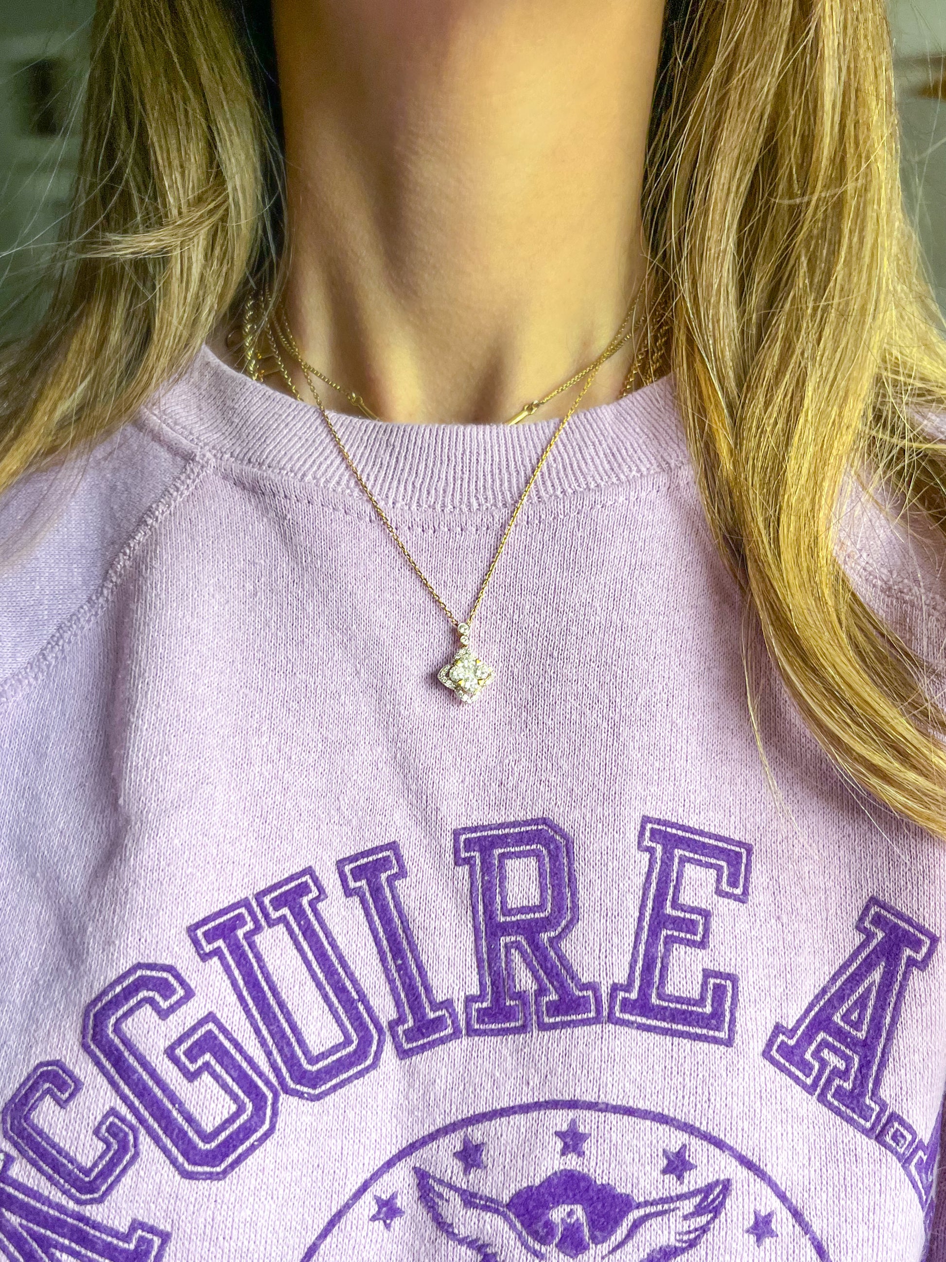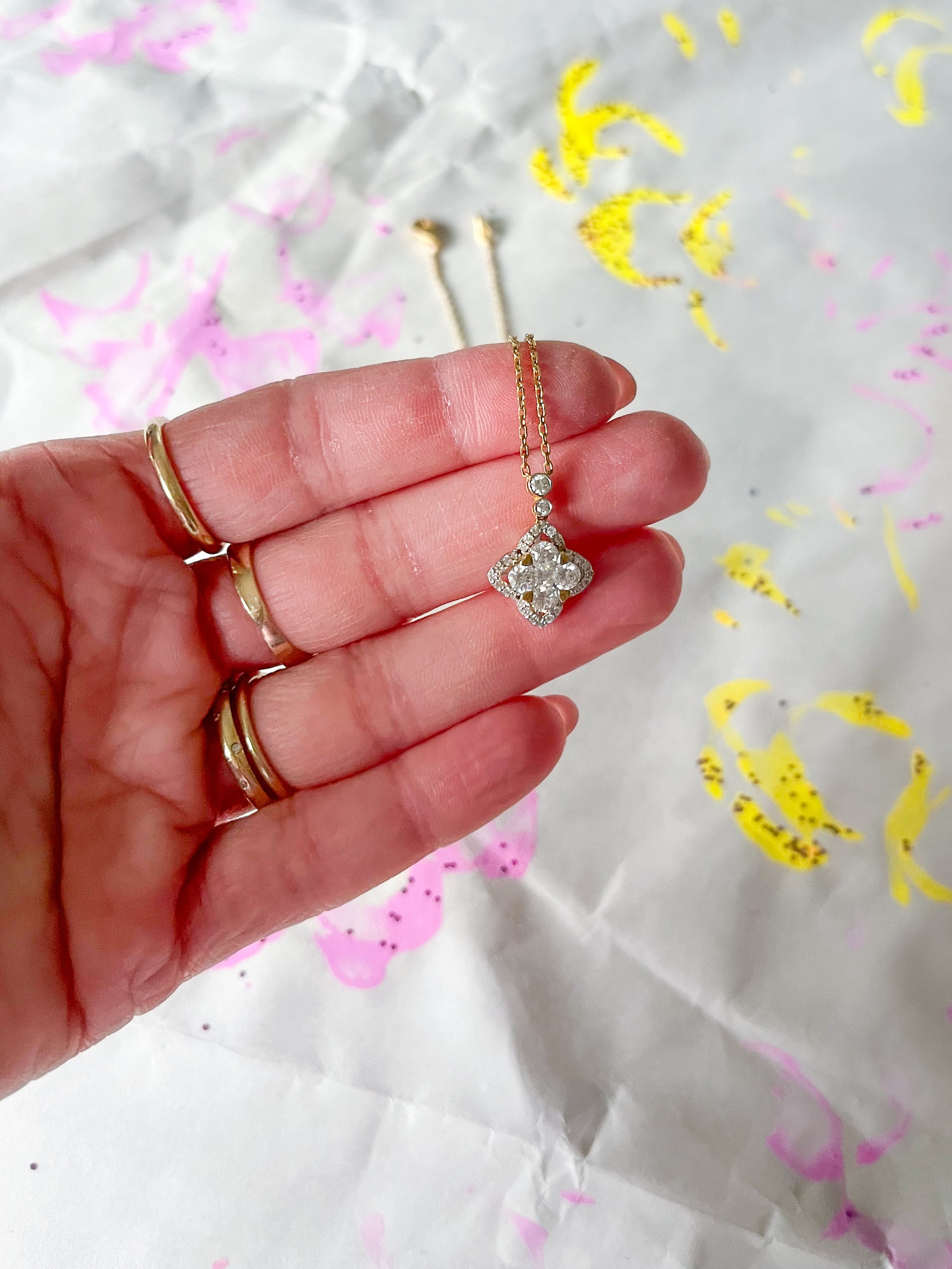 Natural Diamond Clover 18k Yellow Gold Charm with Chain
