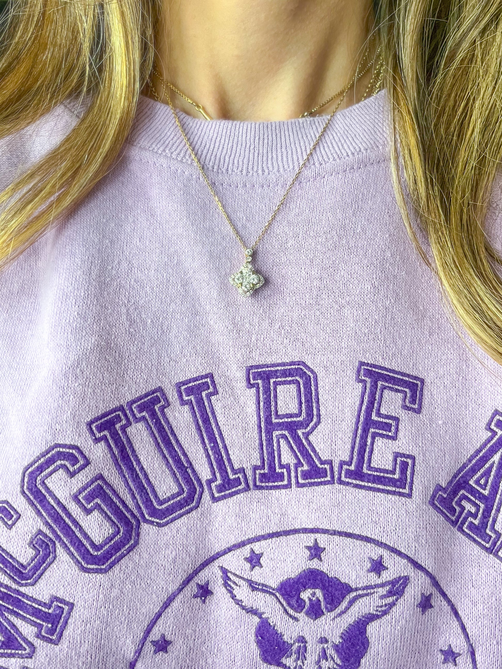 Stunning 18k yellow gold and natural round diamonds clover necklace, with chain. This piece is not vintage. The charm and chain are attached.