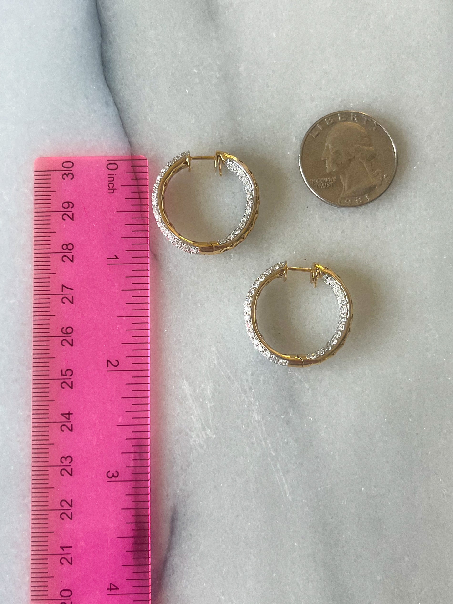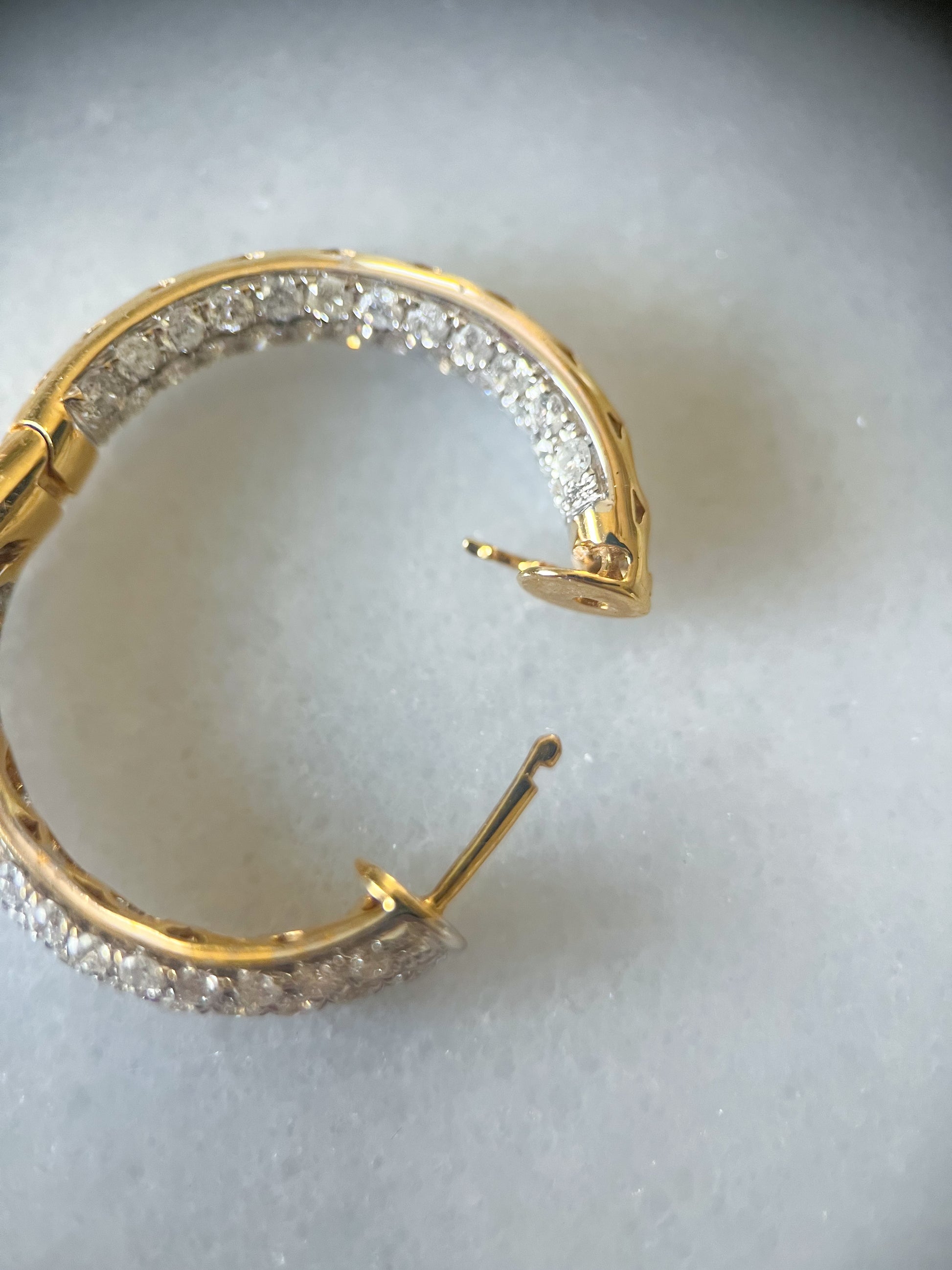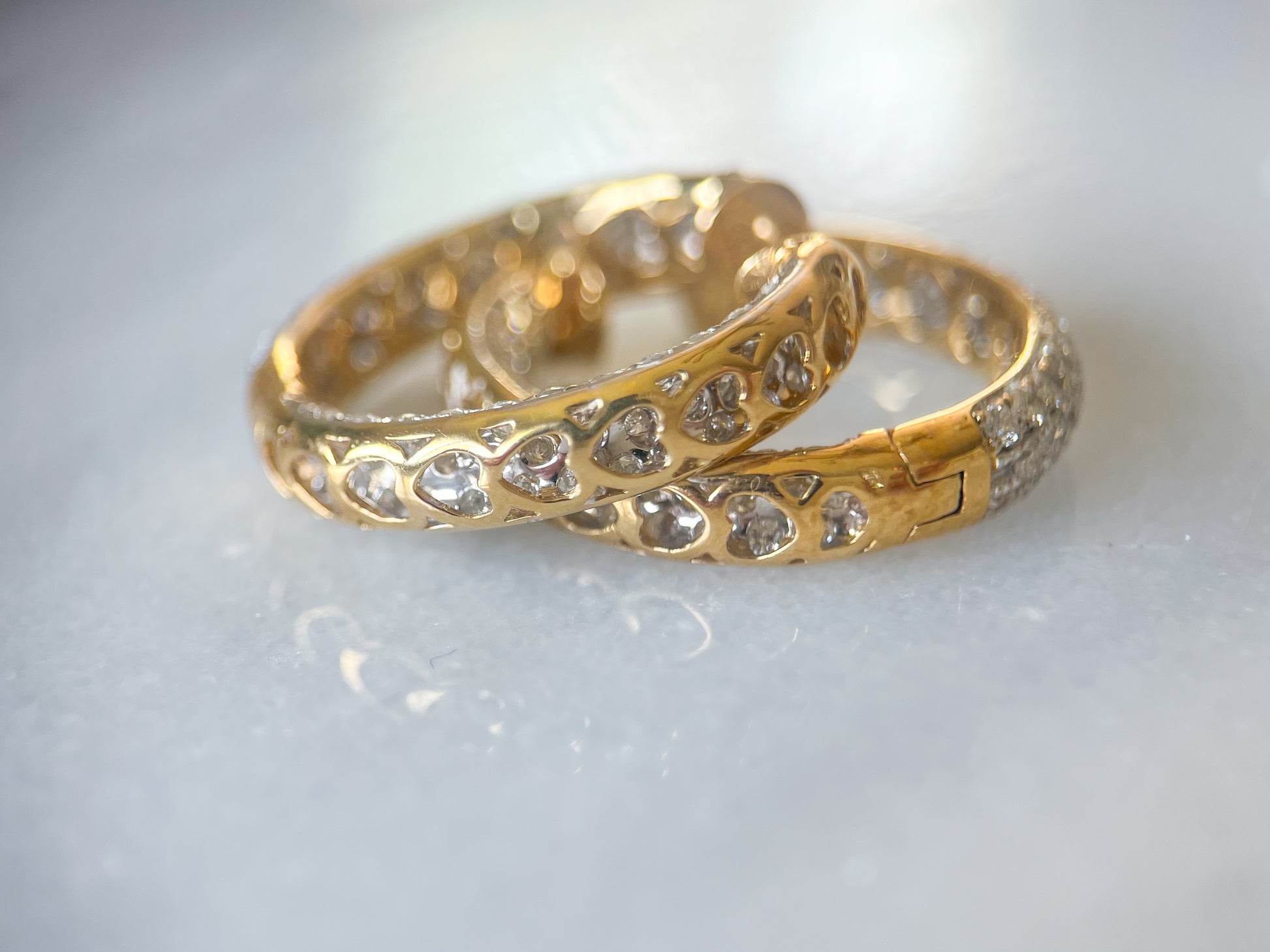 Natural Diamond Encrusted 14k Yellow Gold Large Huggie Earrings with Heart Cut Outs