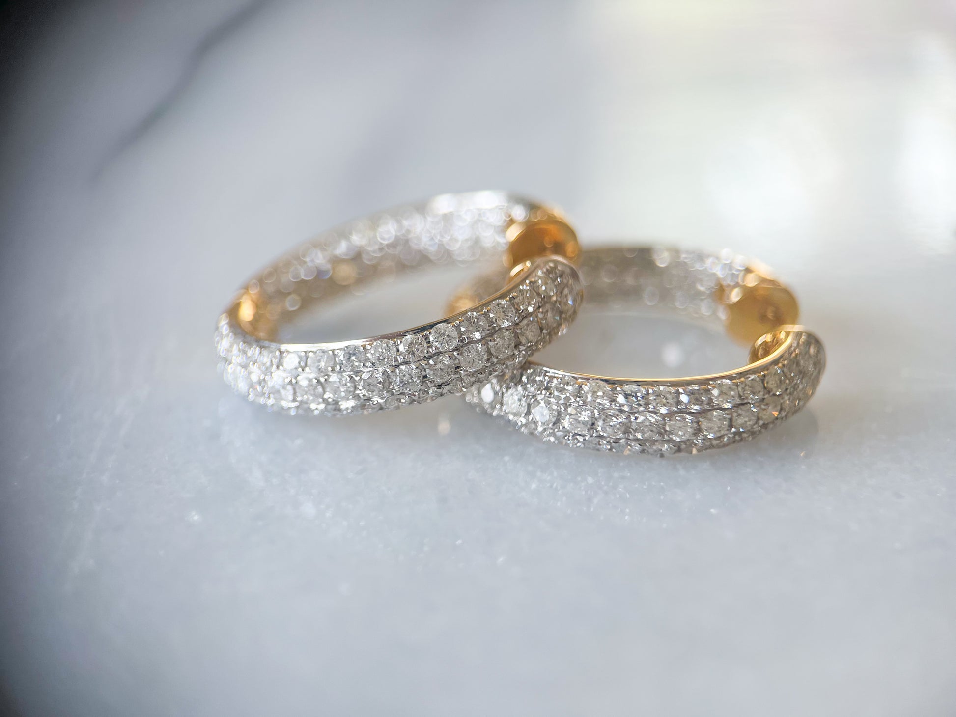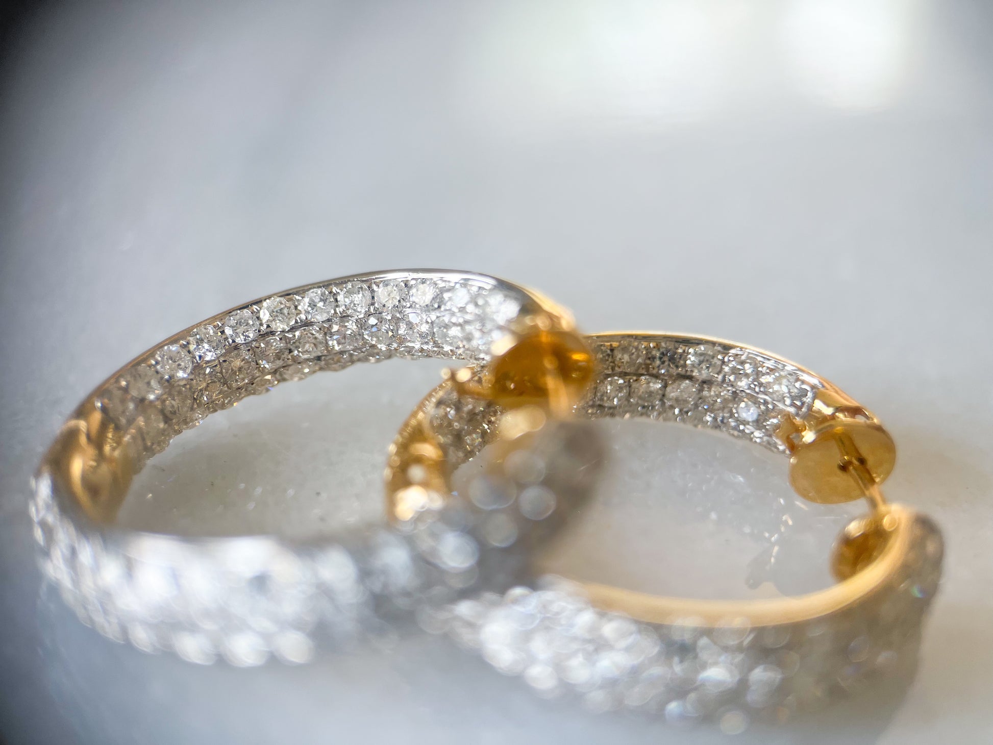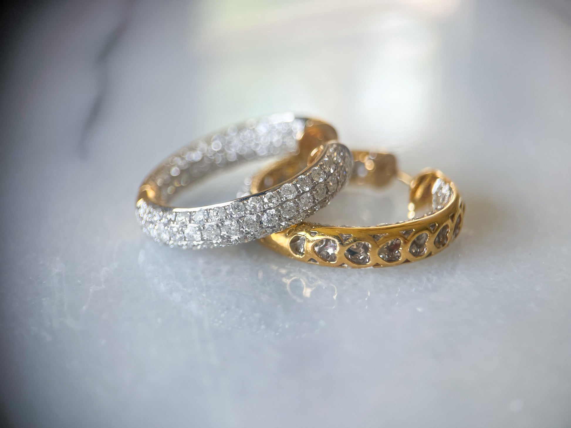 Natural Diamond Encrusted 14k Yellow Gold Large Huggie Earrings with Heart Cut Outs