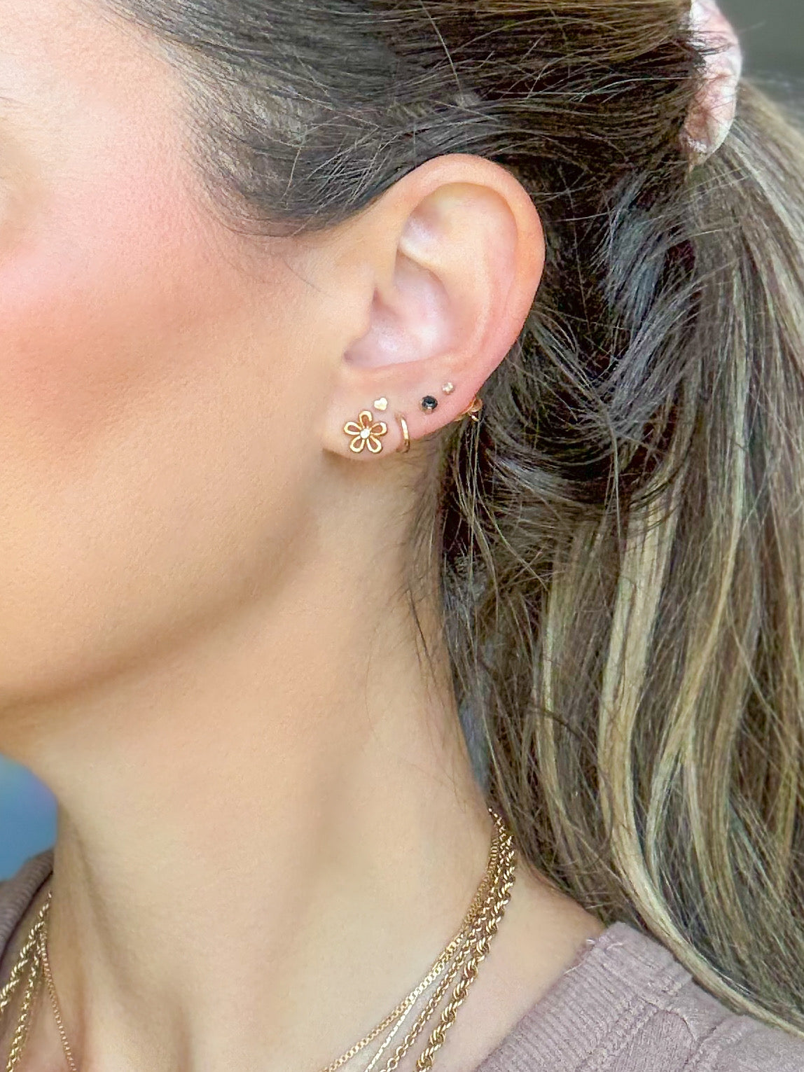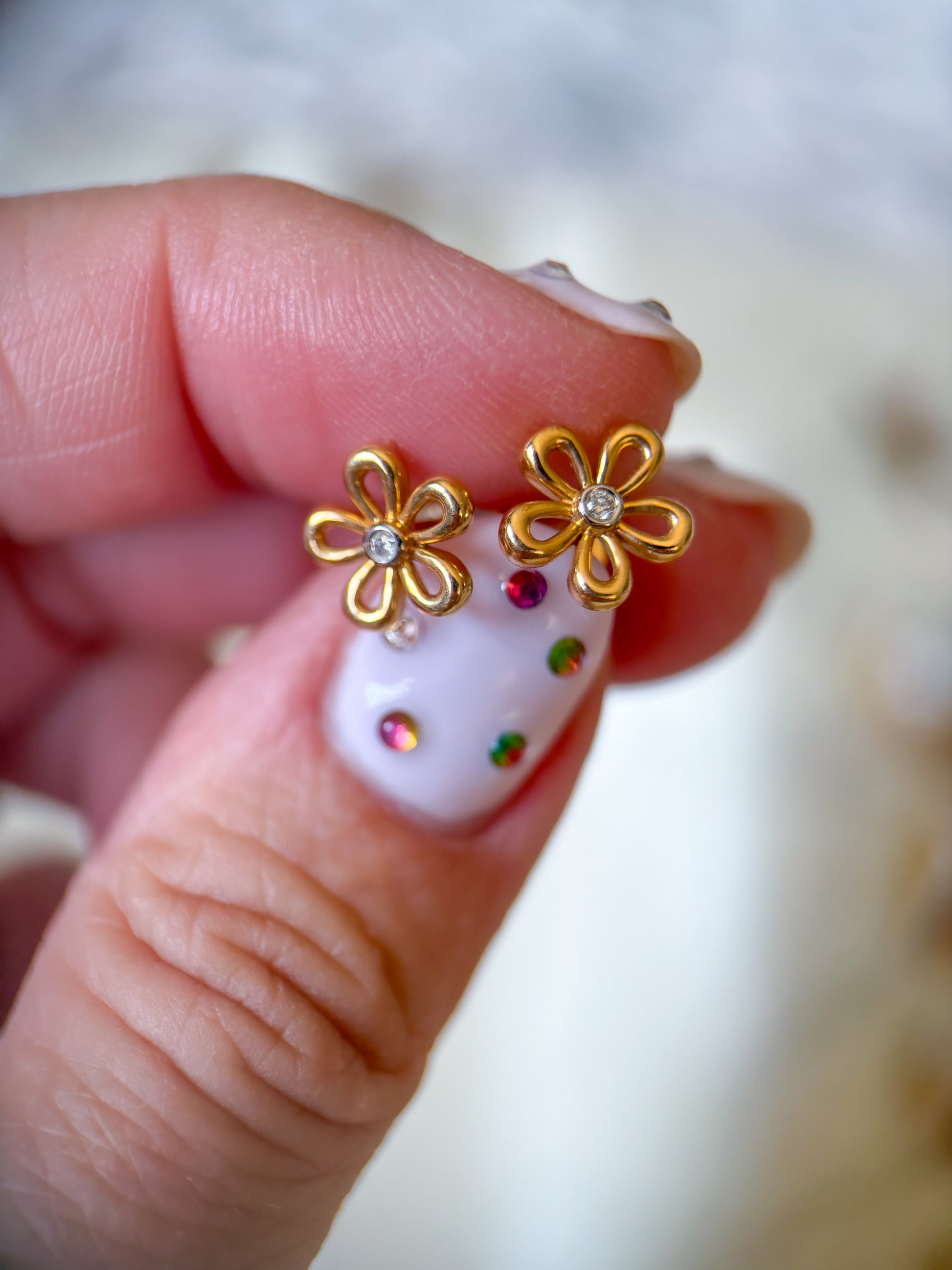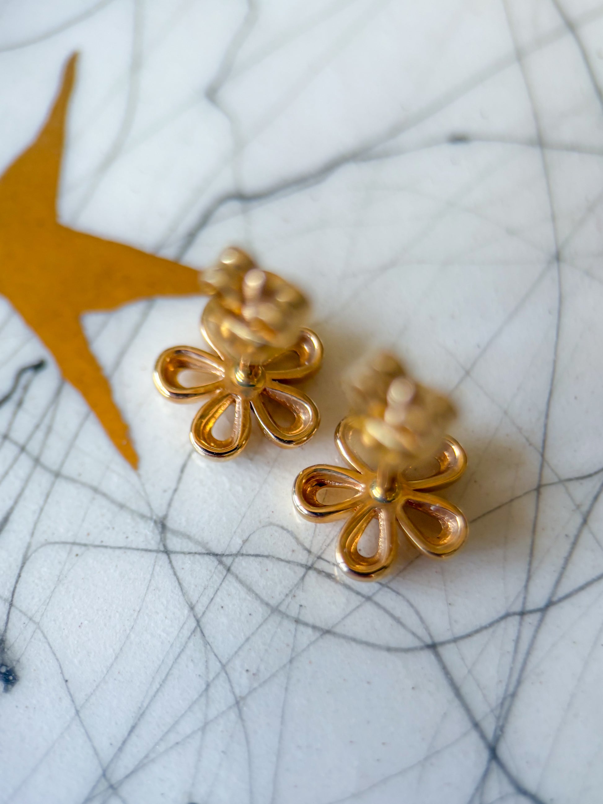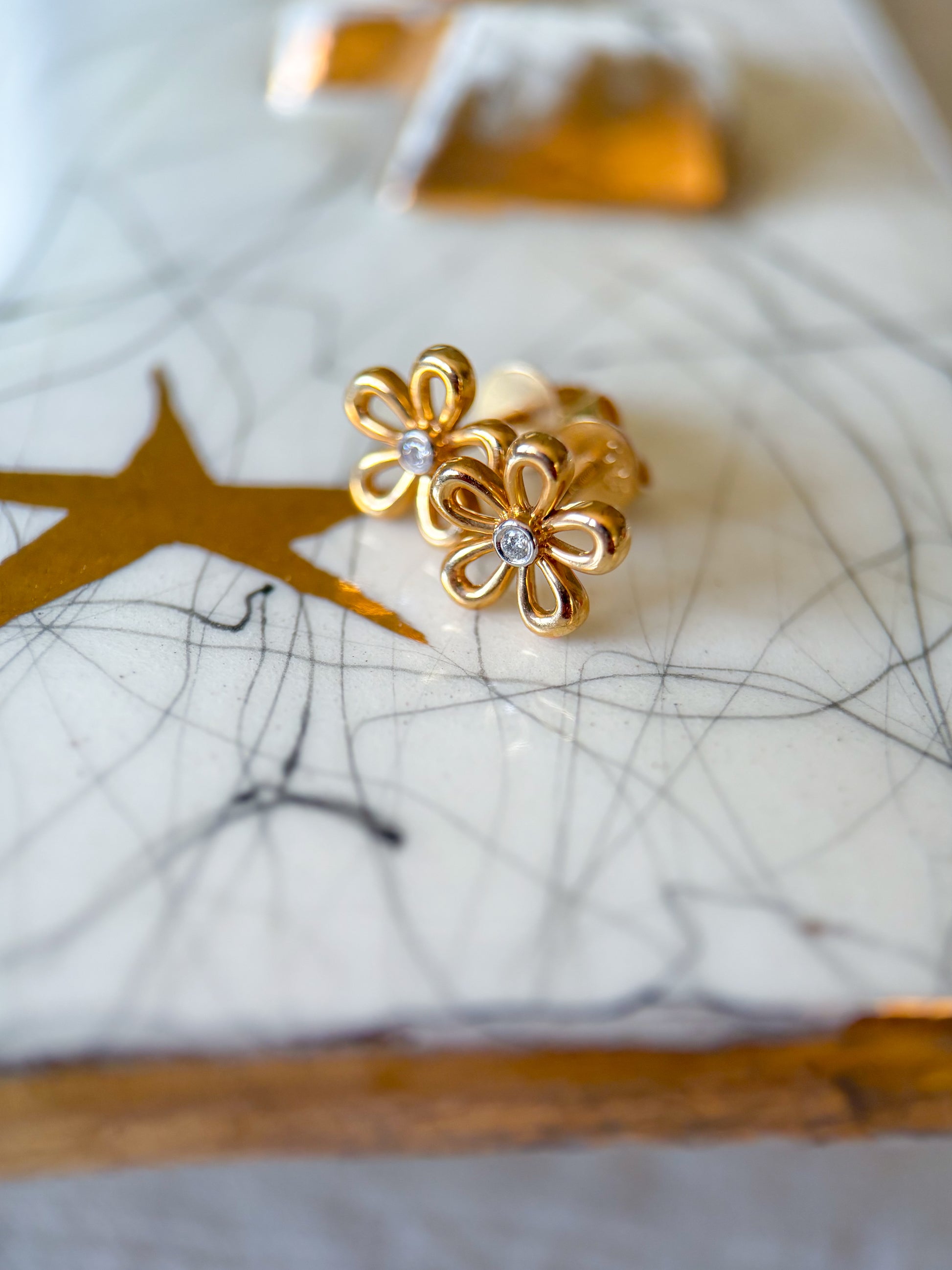 Totally in love with these adorable, 14k yellow gold flower studs with diamond centers.