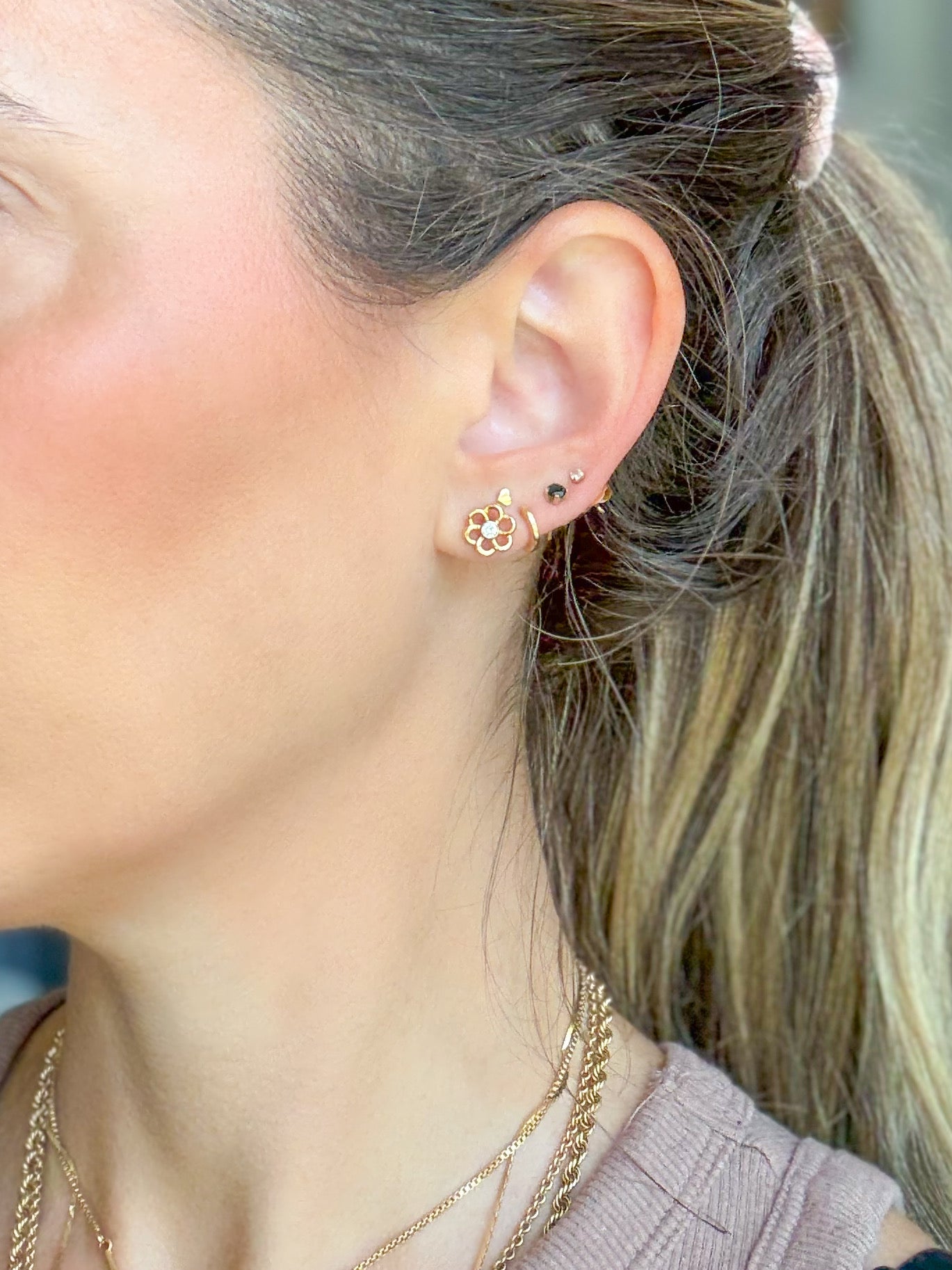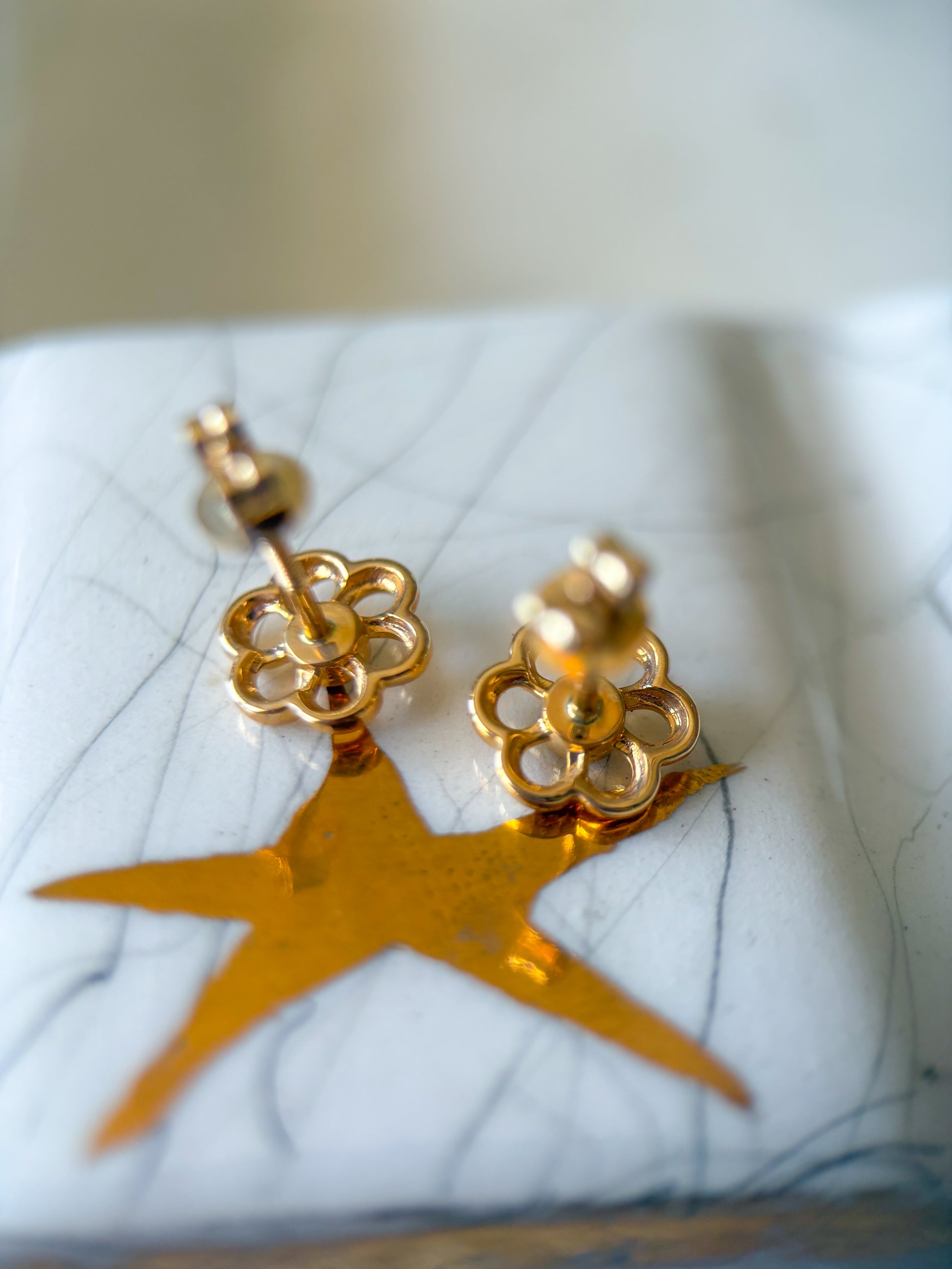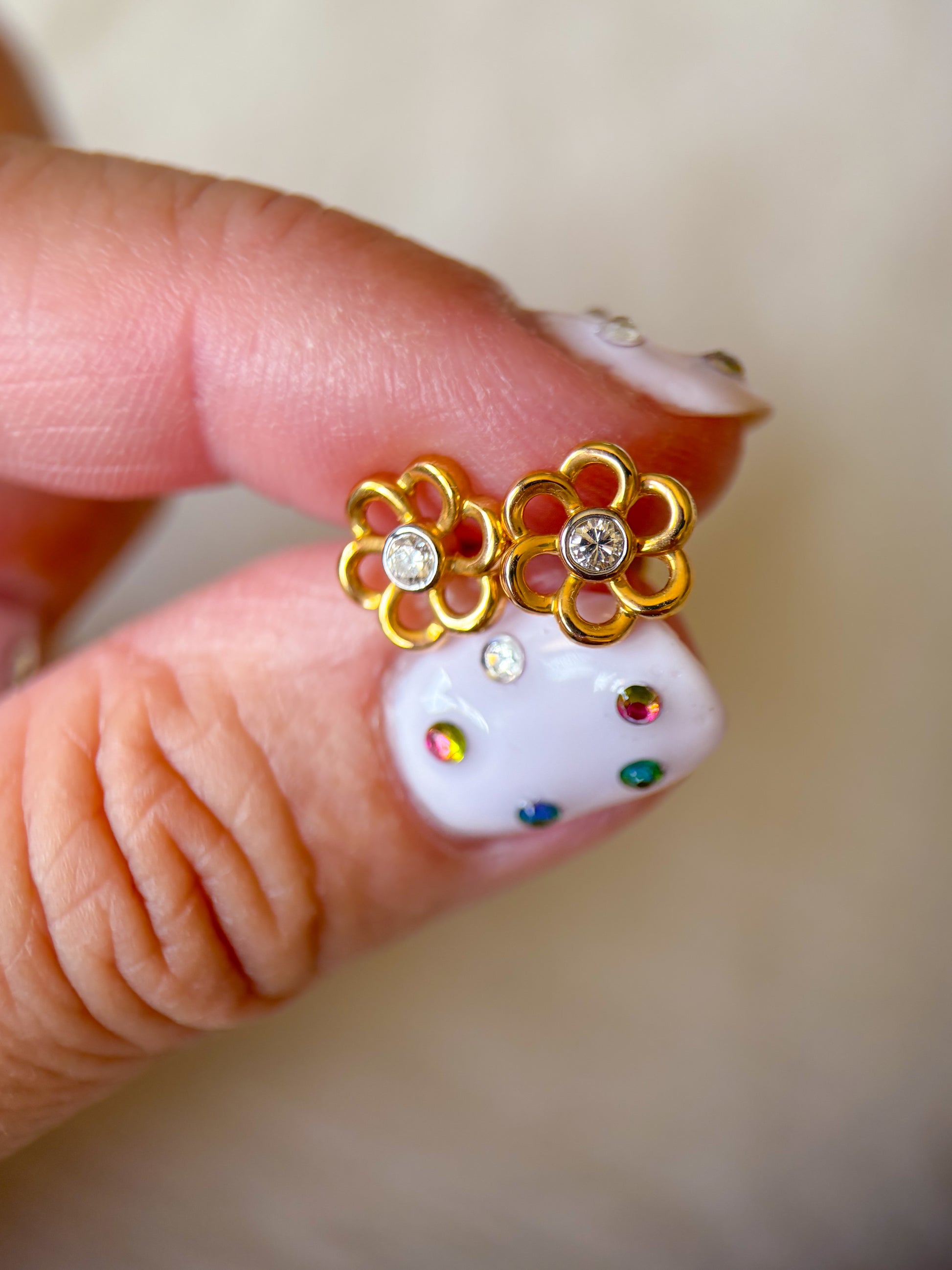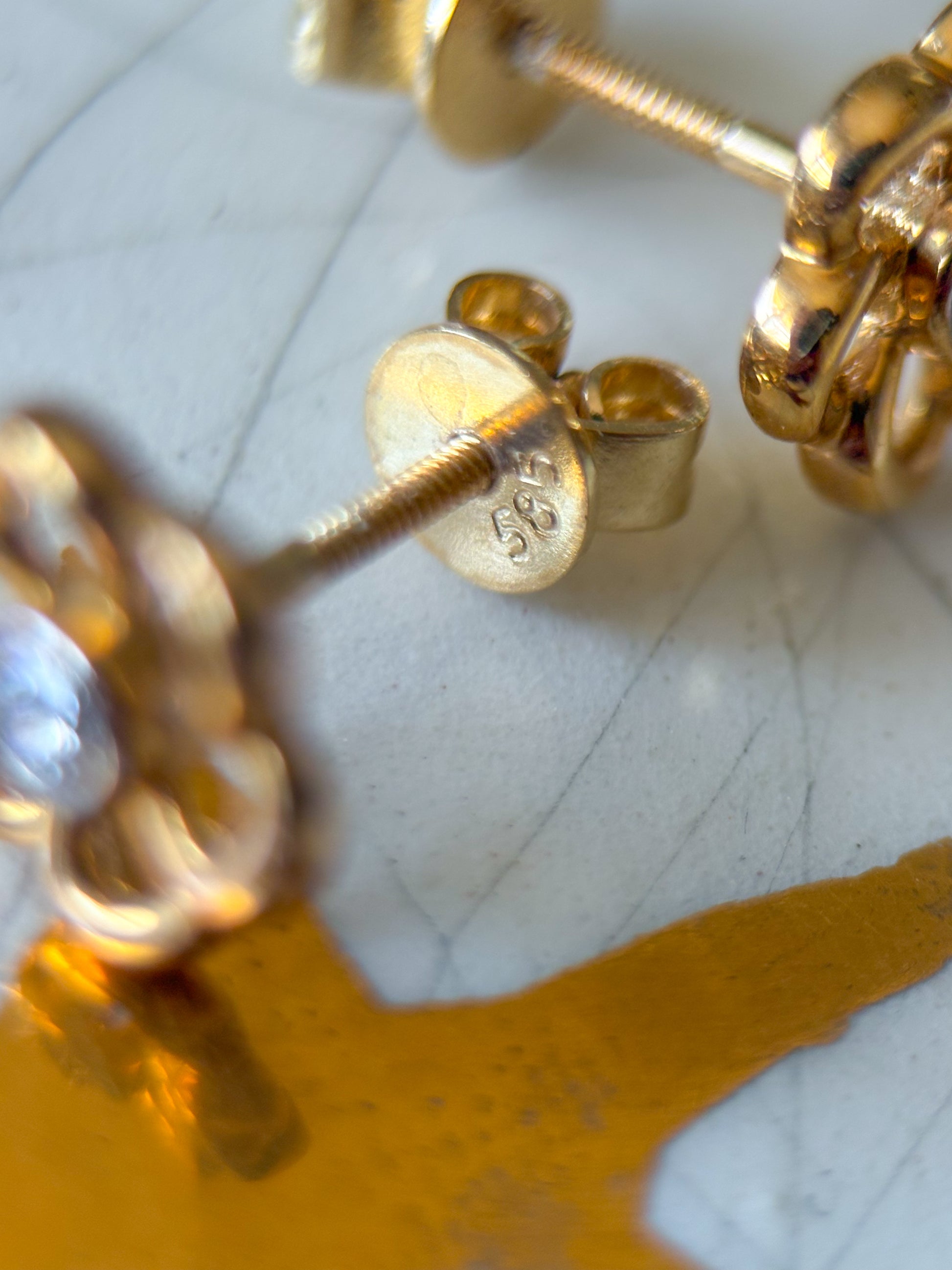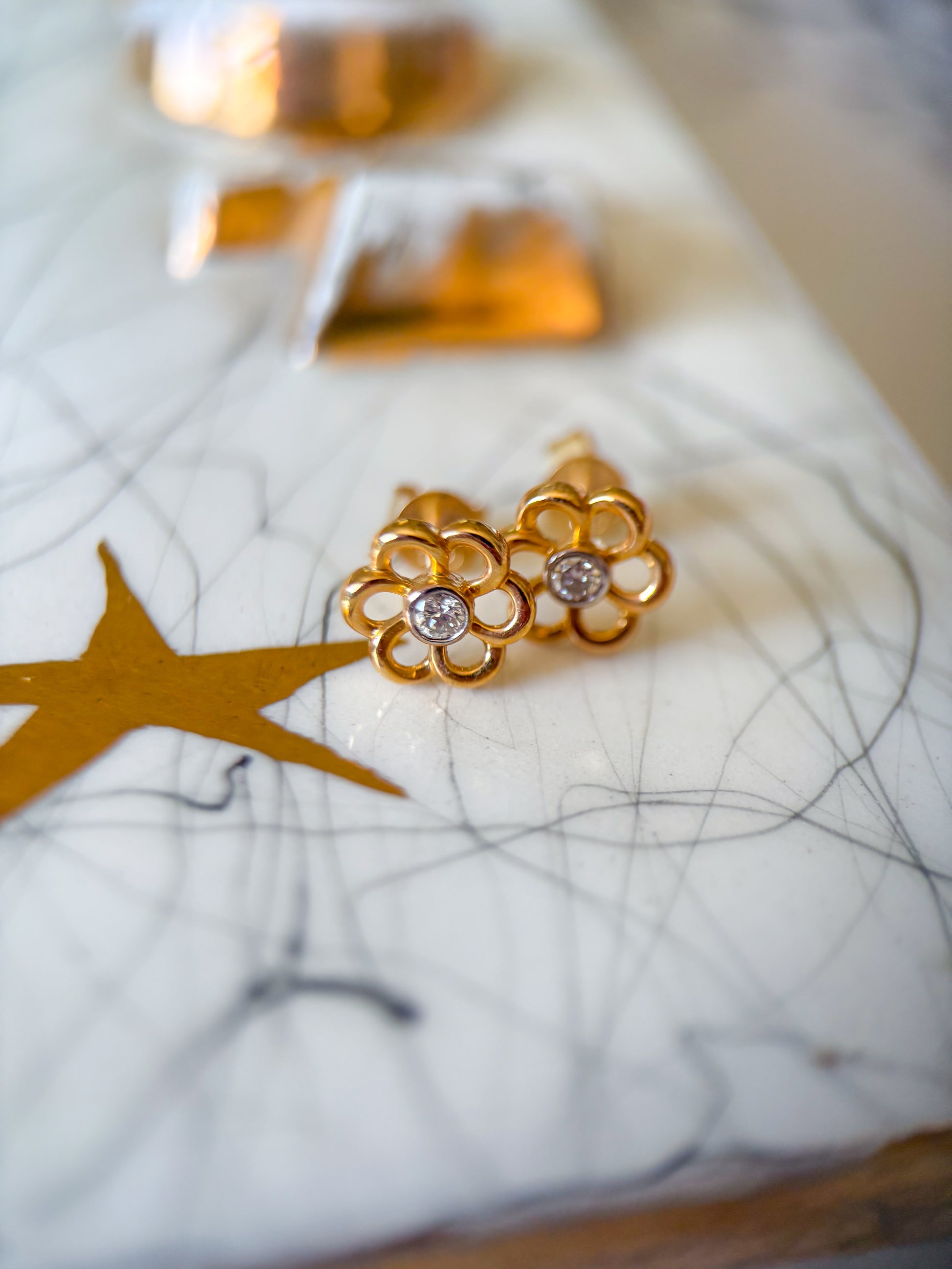 Totally in love with these adorable, 14k yellow gold flower studs with diamond centers.