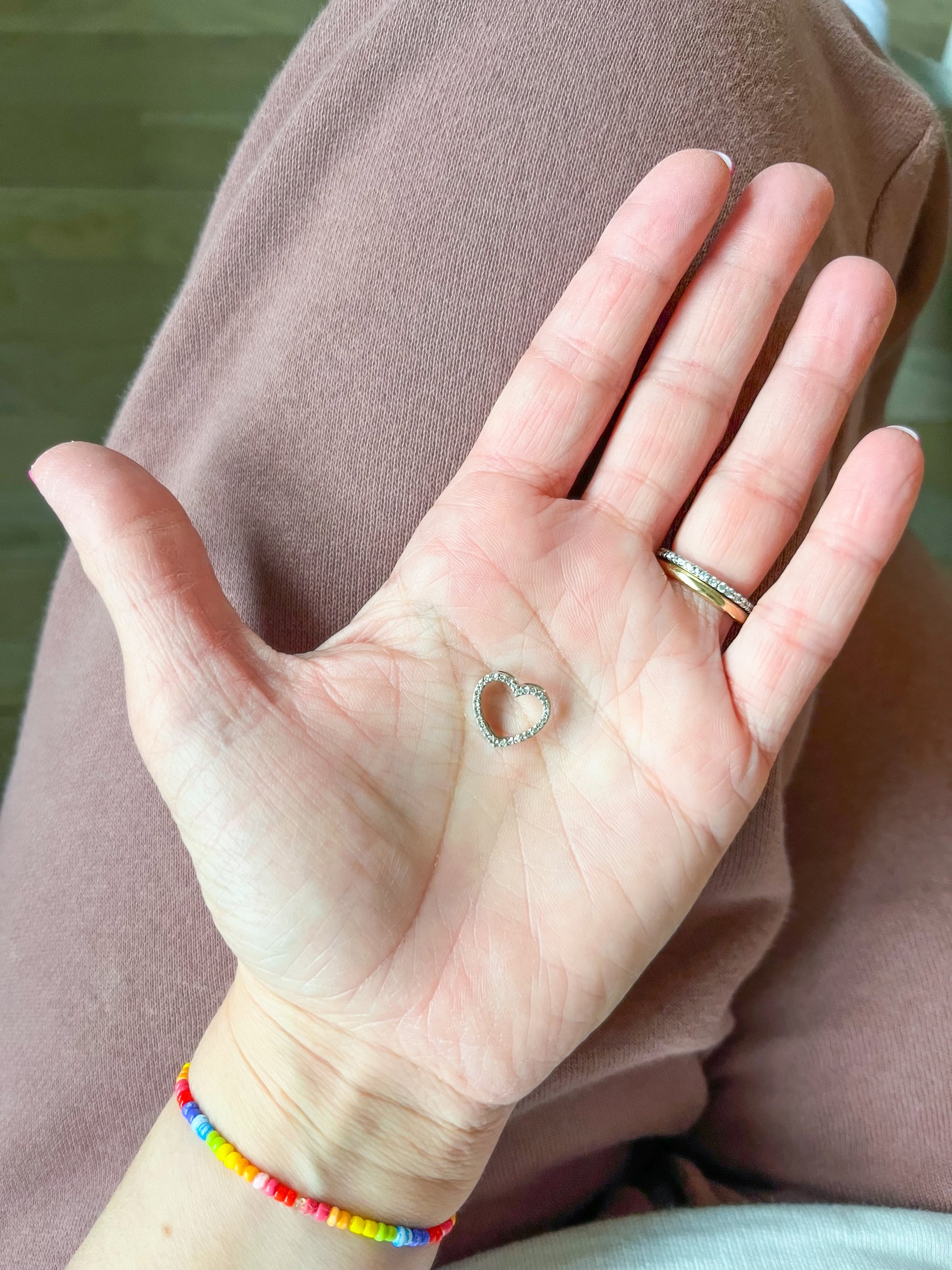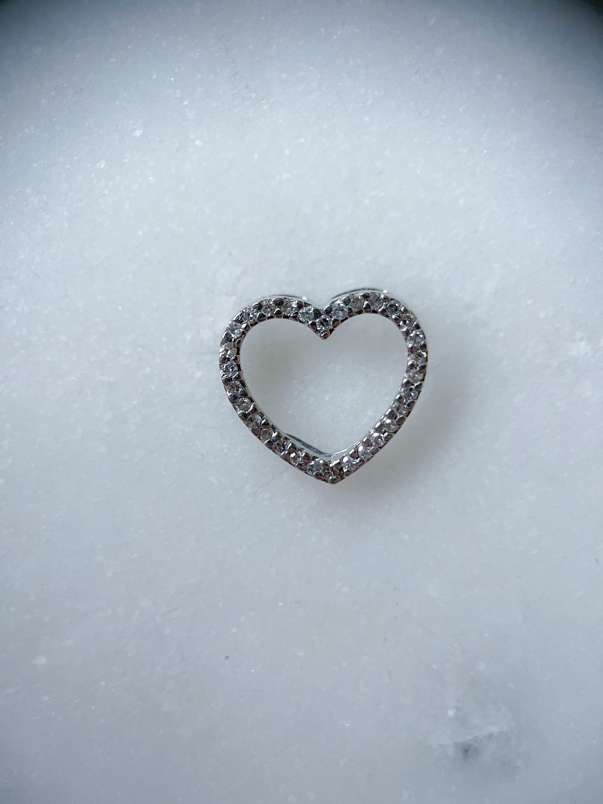 Beautiful and sweet heart charm! This charm is not vintage. It is 0.75 grams of white gold and natural diamond, and is the perfect addition to your neck mess! Chain not included.