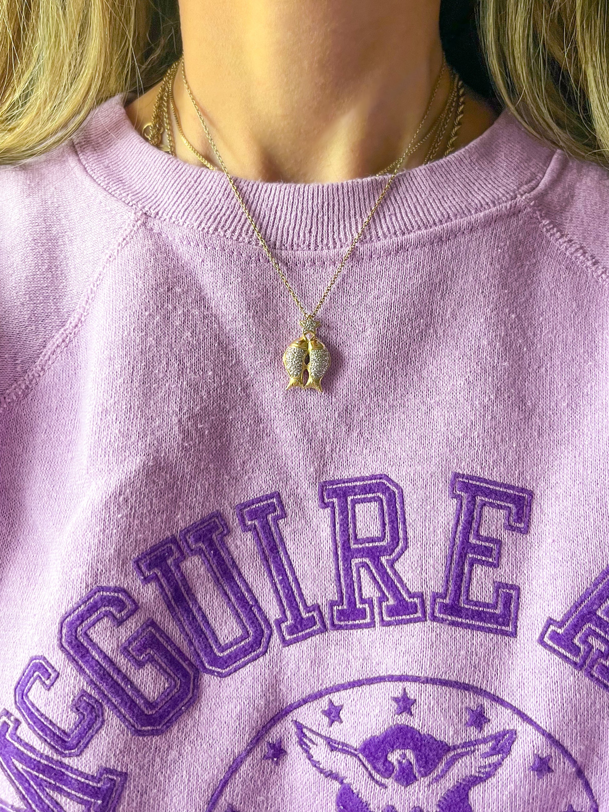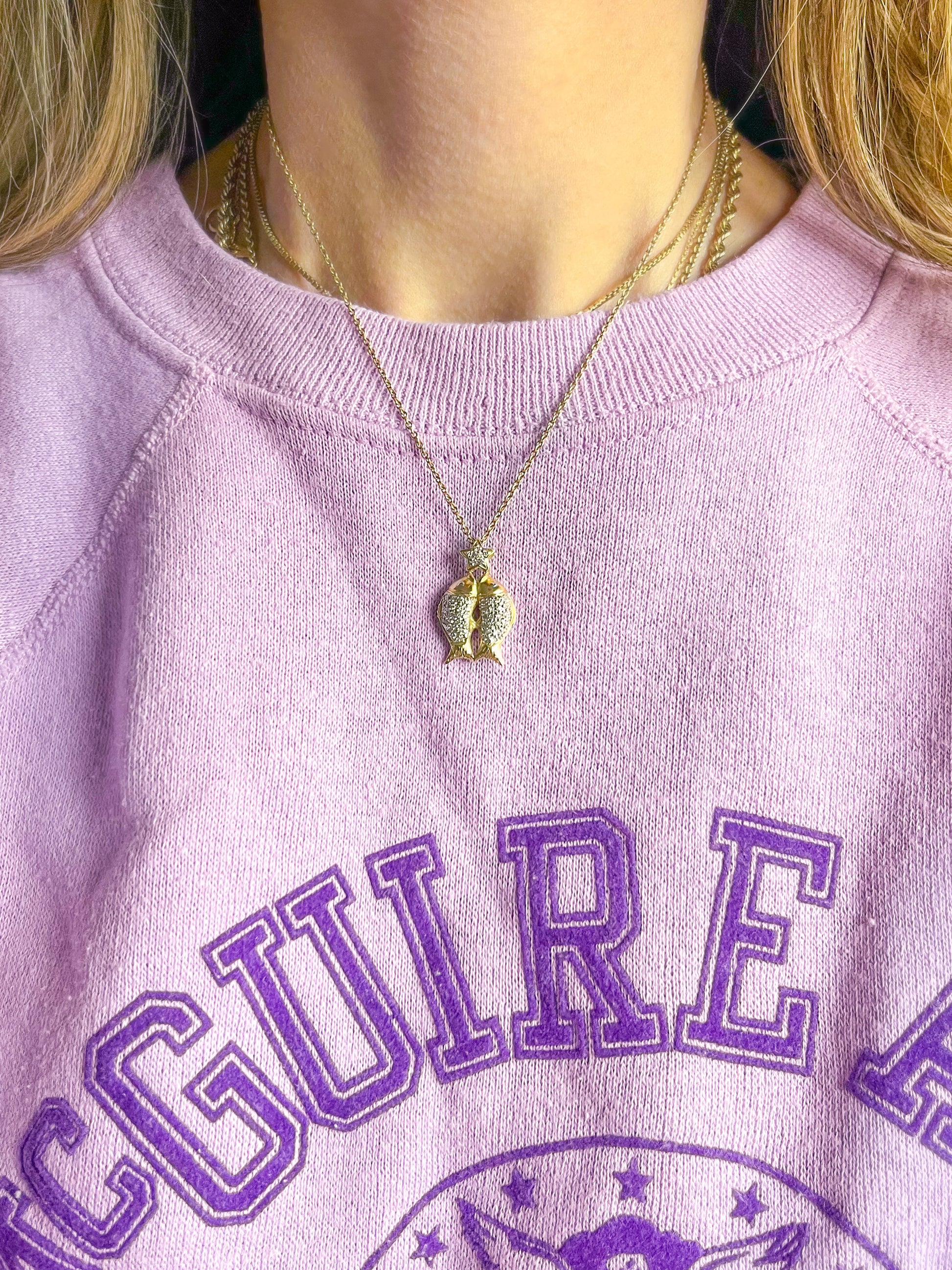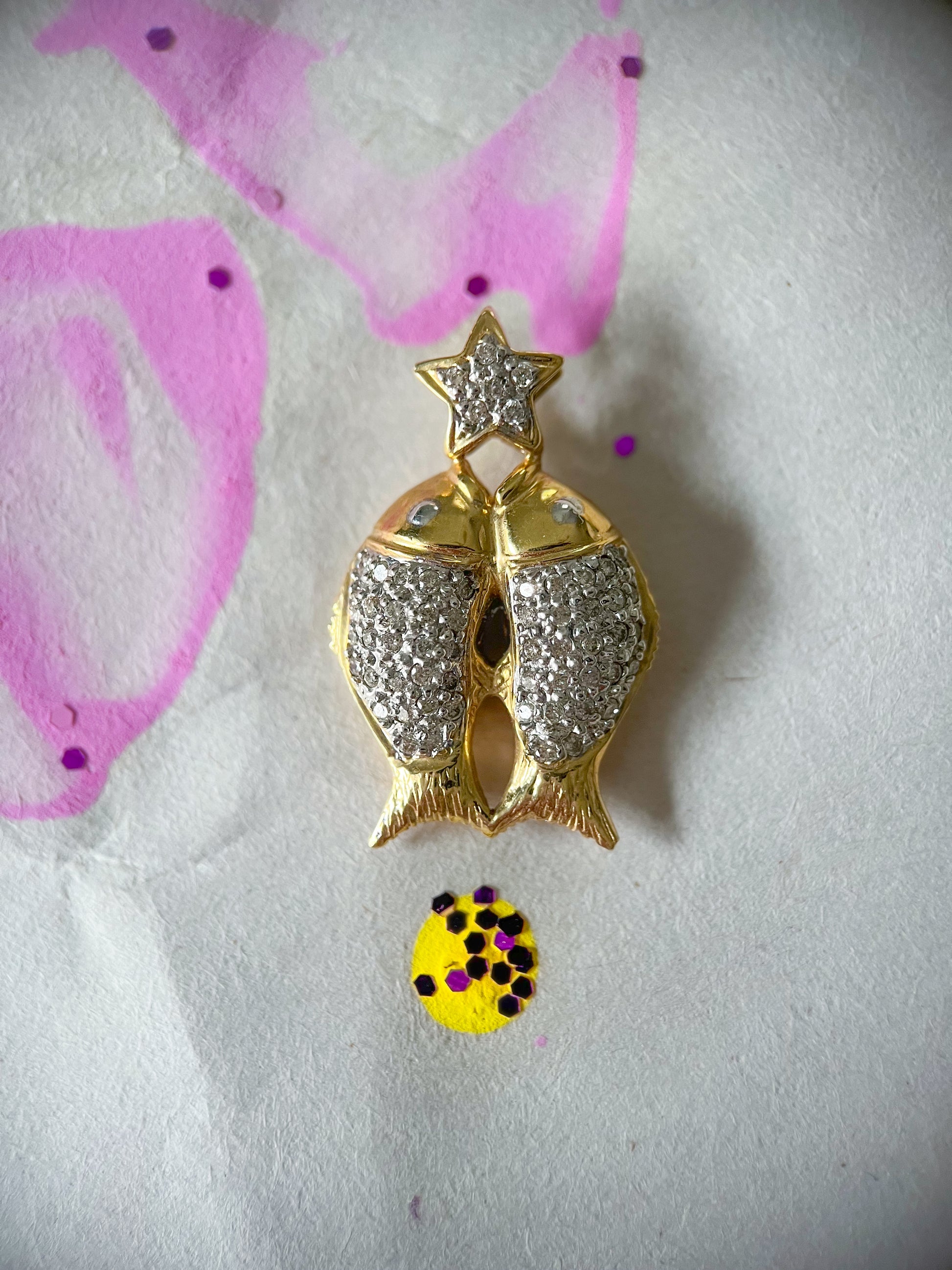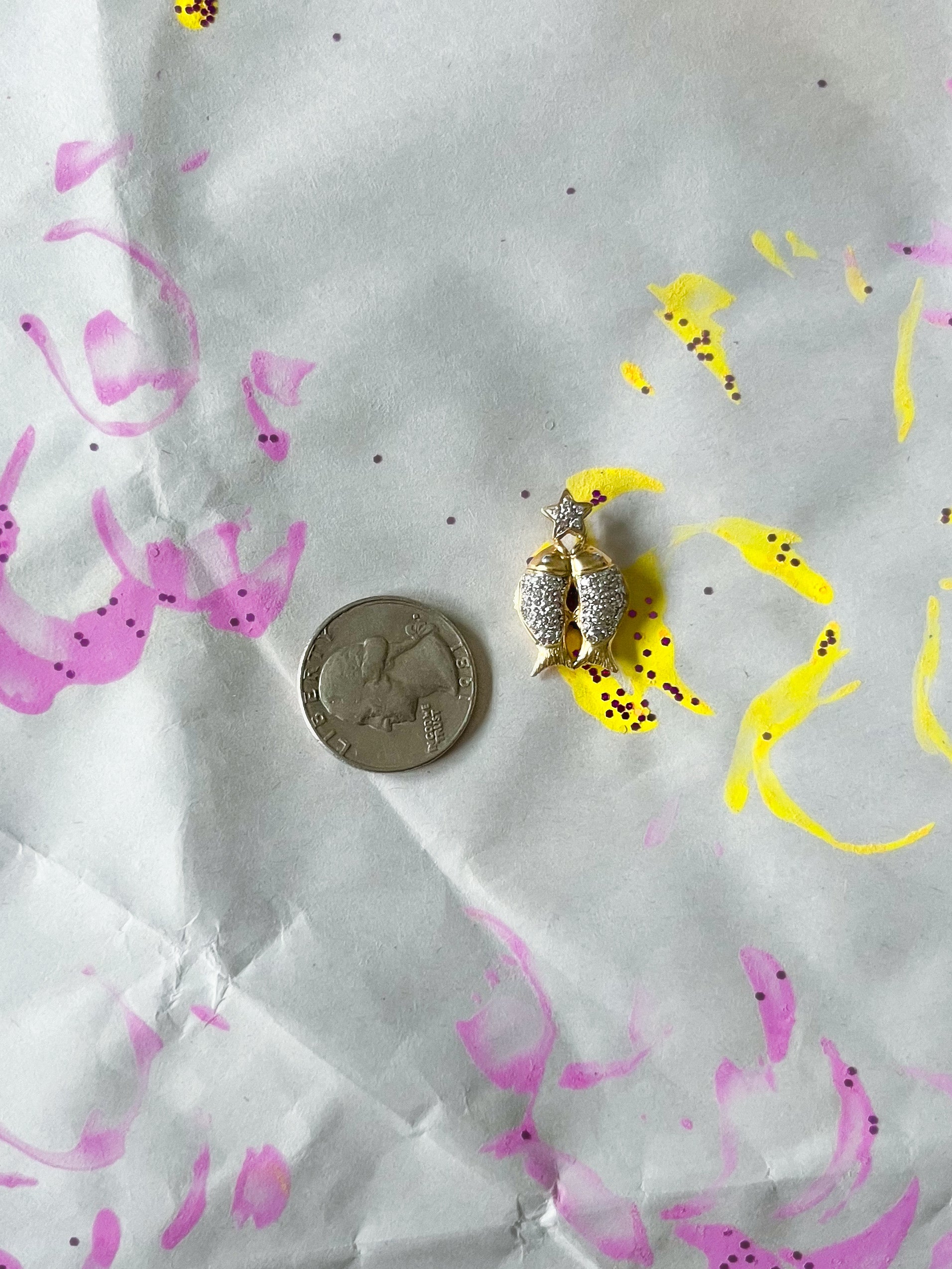 Really cool, puffy, 14k yellow gold and natural diamond double fish with star charm! This charm is not vintage. Chain not included.