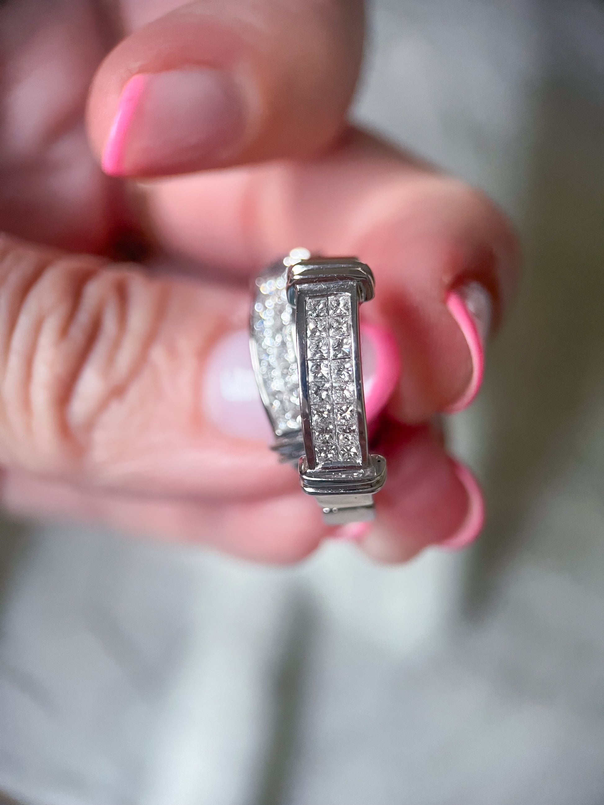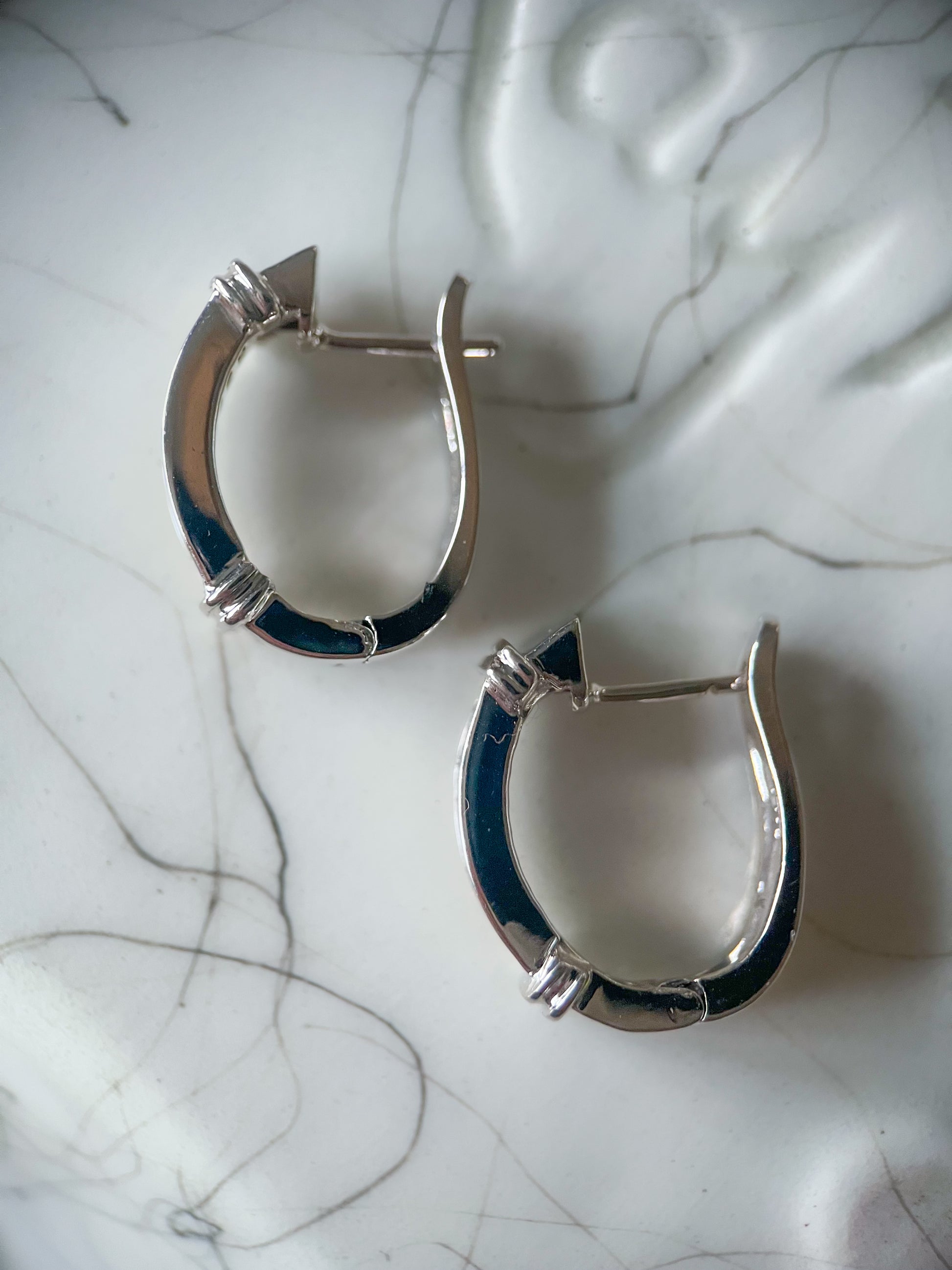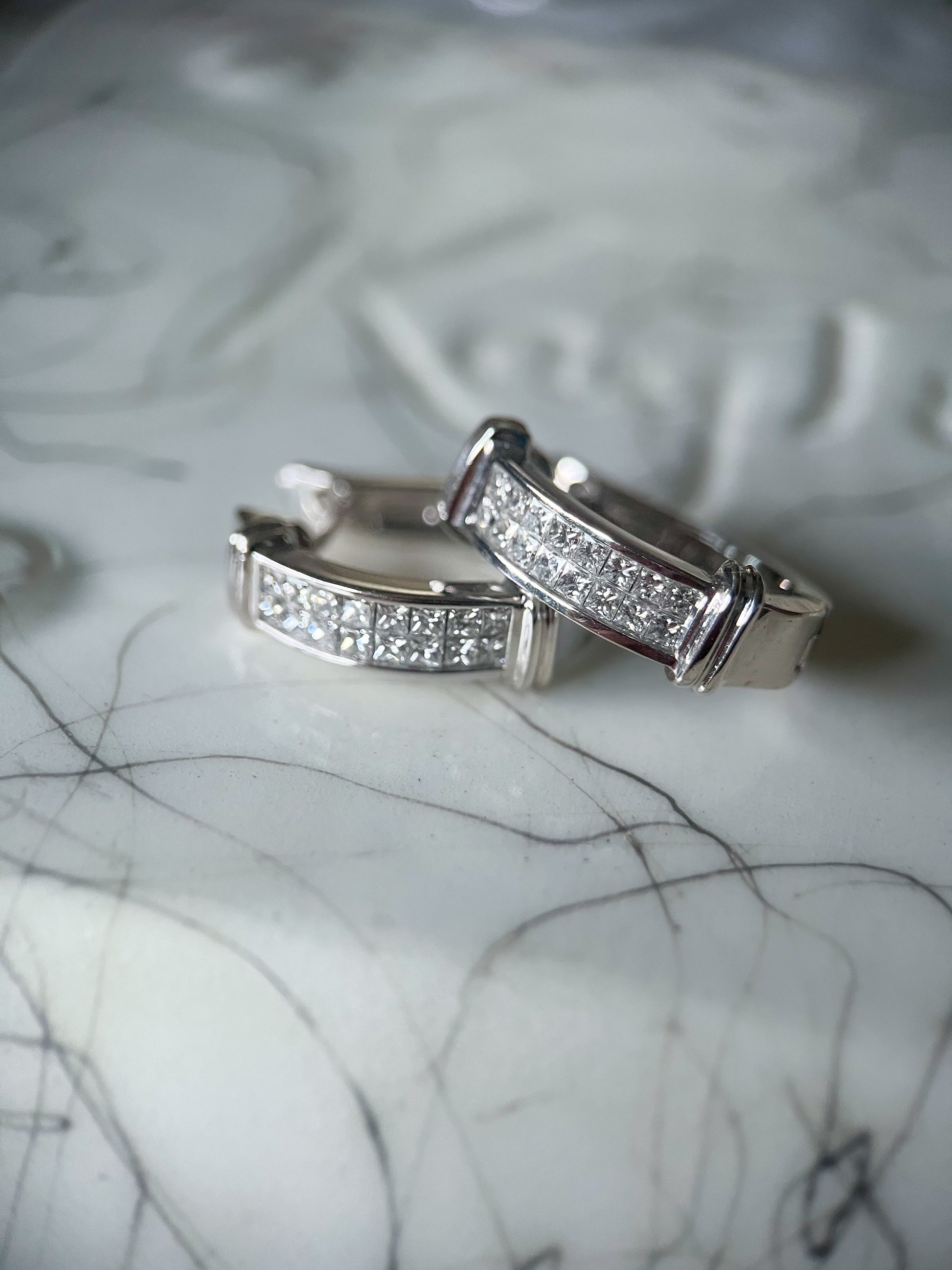 Really beautiful, chunky, 14k white gold and natural princess cut diamond hoop earrings!