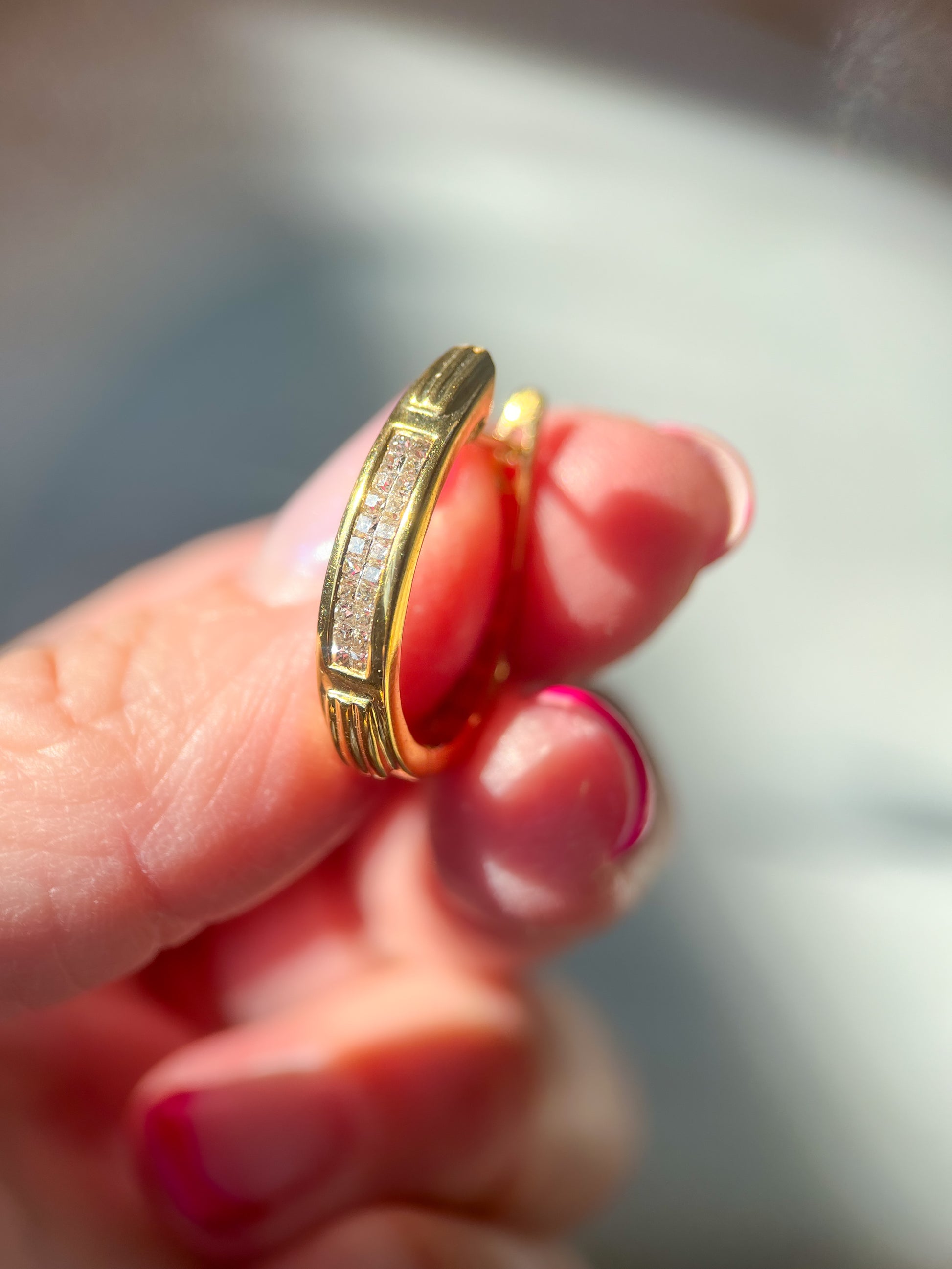 Love these sweet diamond hoops! The heart detailing in the back is the cutest! These are not vintage.