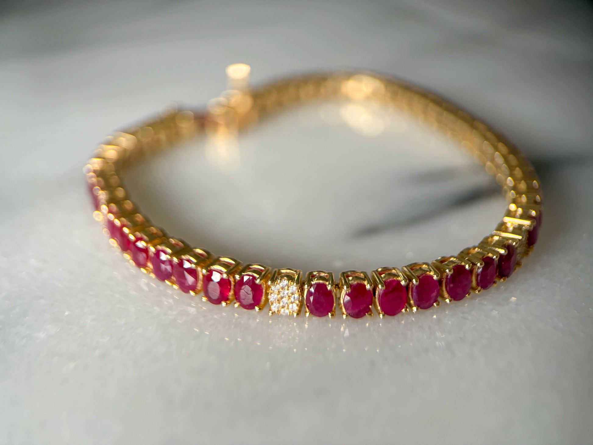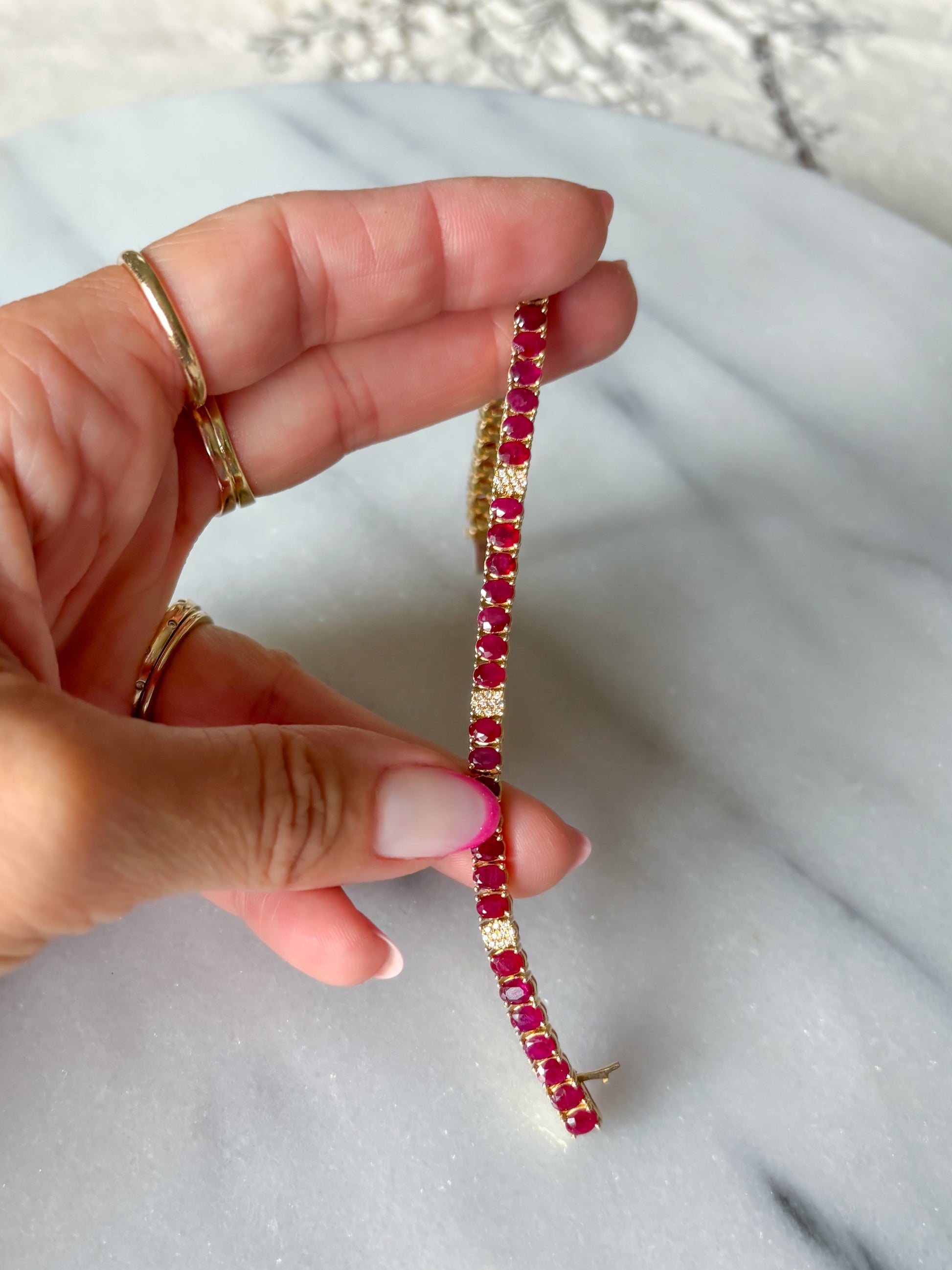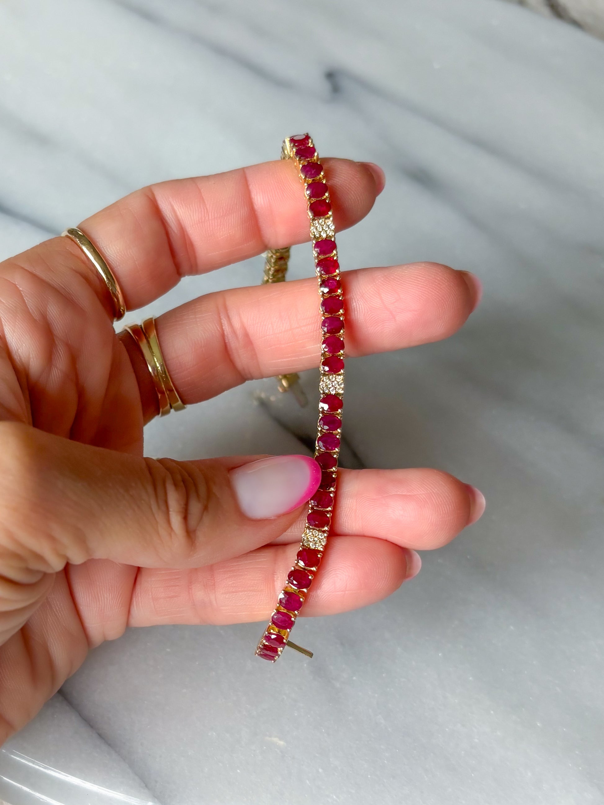 Absolutely insane, natural ruby and diamond tennis bracelet - featuring oval rubies. This bracelet is 6.5 inches long. Obsessed.