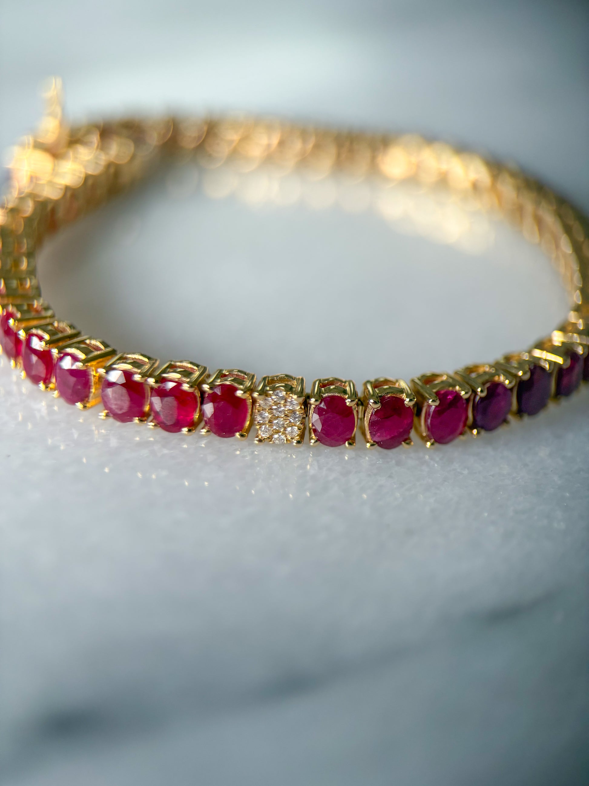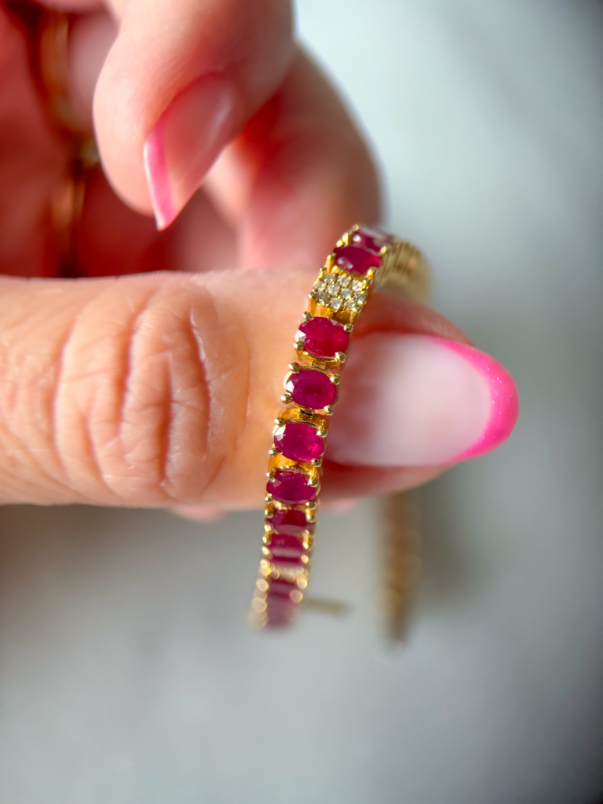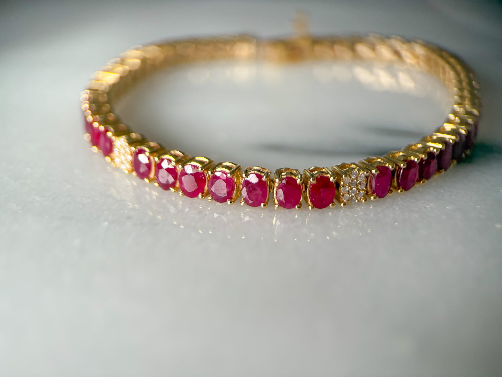 Absolutely insane, natural ruby and diamond tennis bracelet - featuring oval rubies. This bracelet is 6.5 inches long. Obsessed.