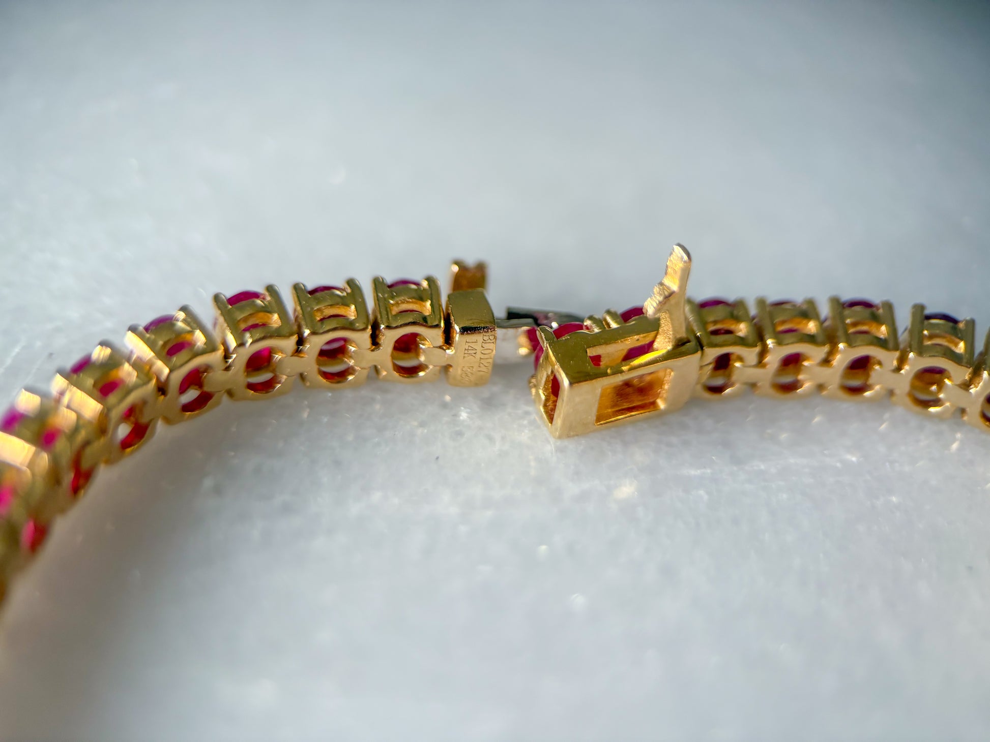 Natural Ruby and Diamond 14k Yellow Gold 6.5 Inch Tennis Bracelet