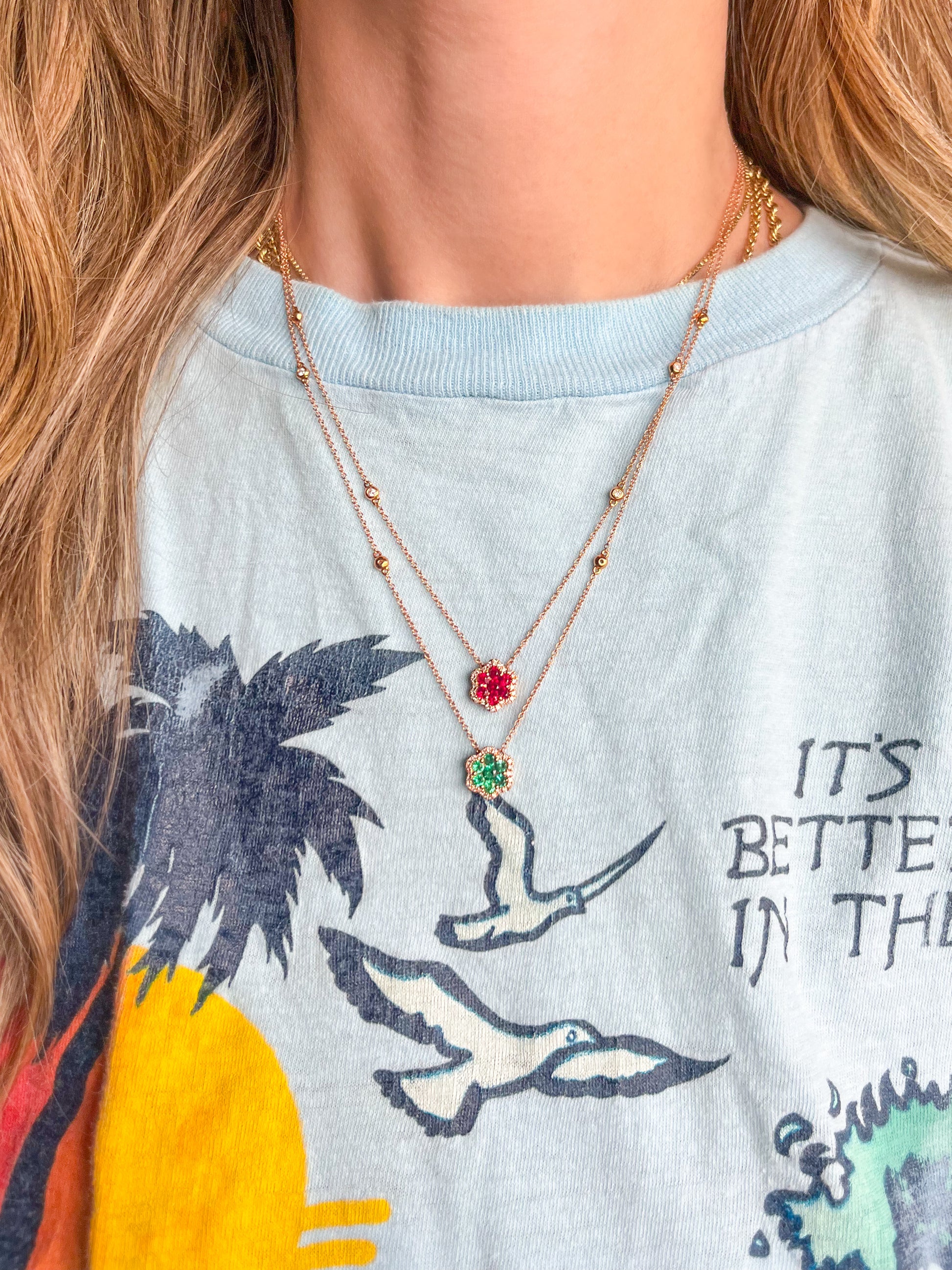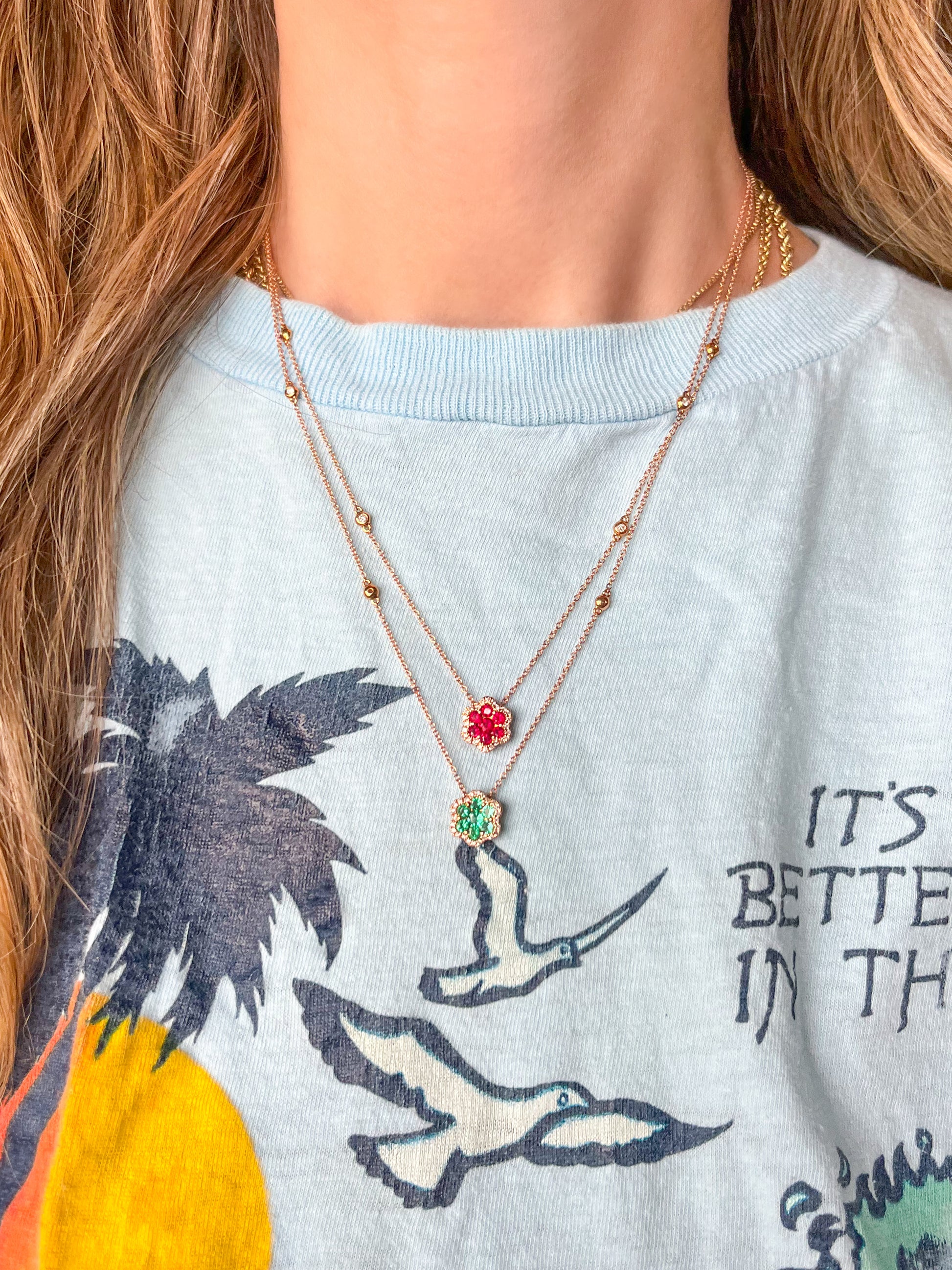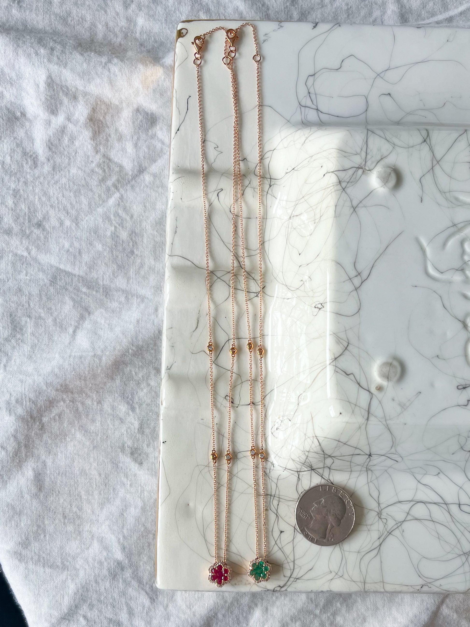 Natural Ruby, Emerald and Diamond Flower Charms in 14k Rose Gold