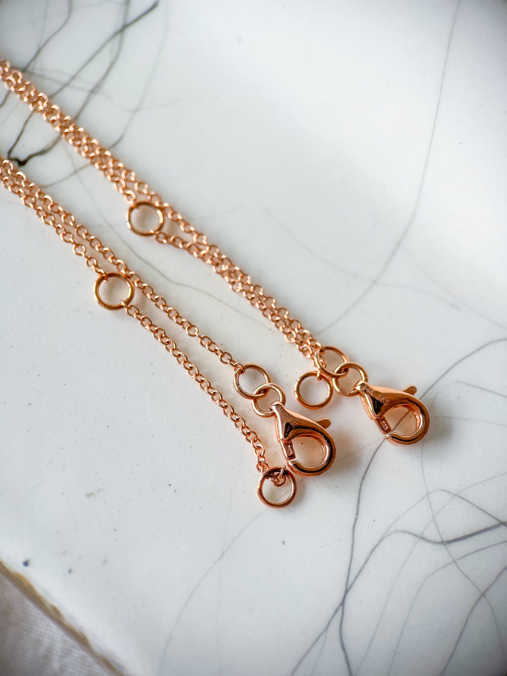 Two beauties made with 14k rose gold, natural diamonds emeralds and rubies. These pieces include the chains which can be worn either 17 or 18 inches. These are not vintage.