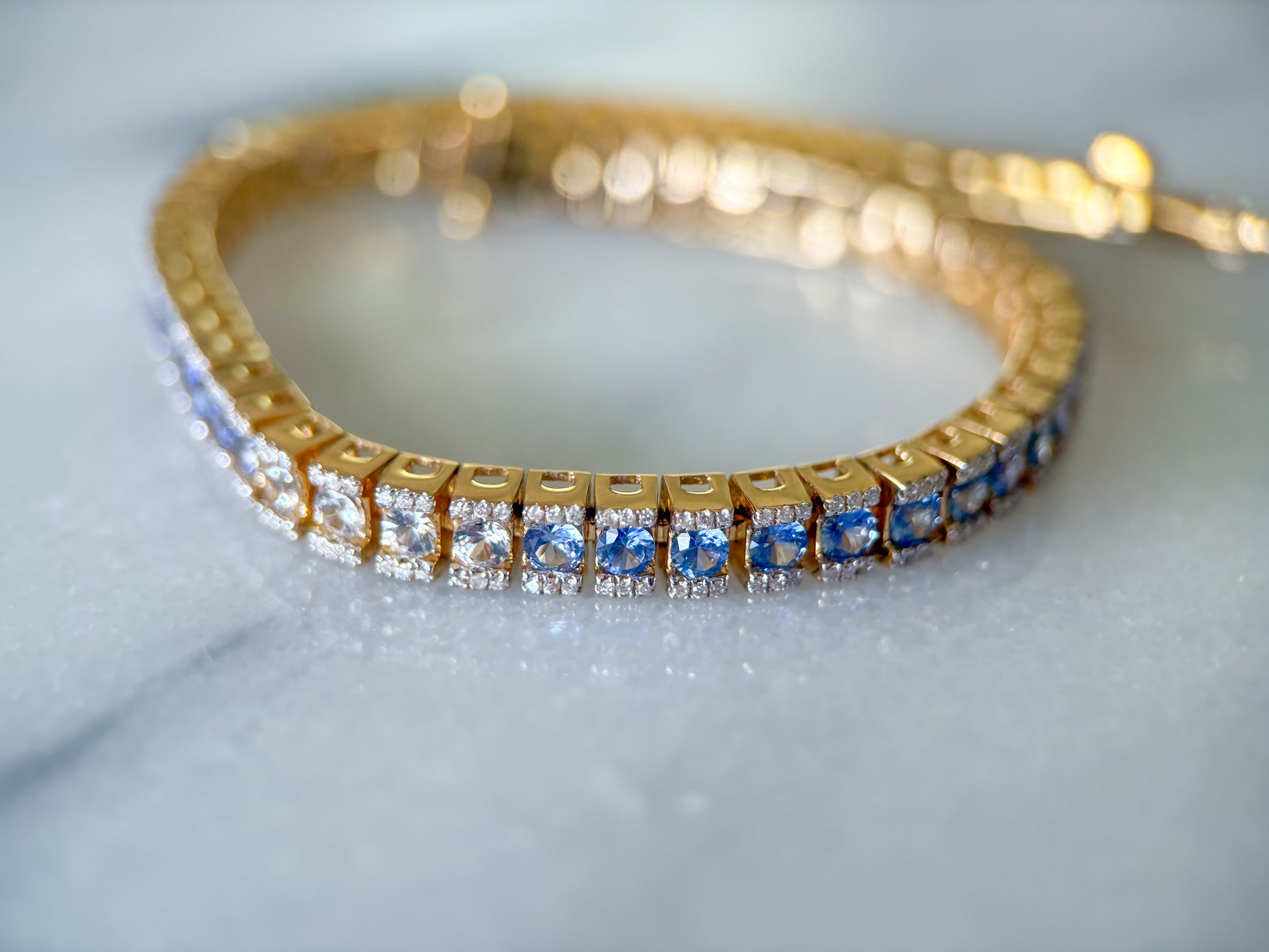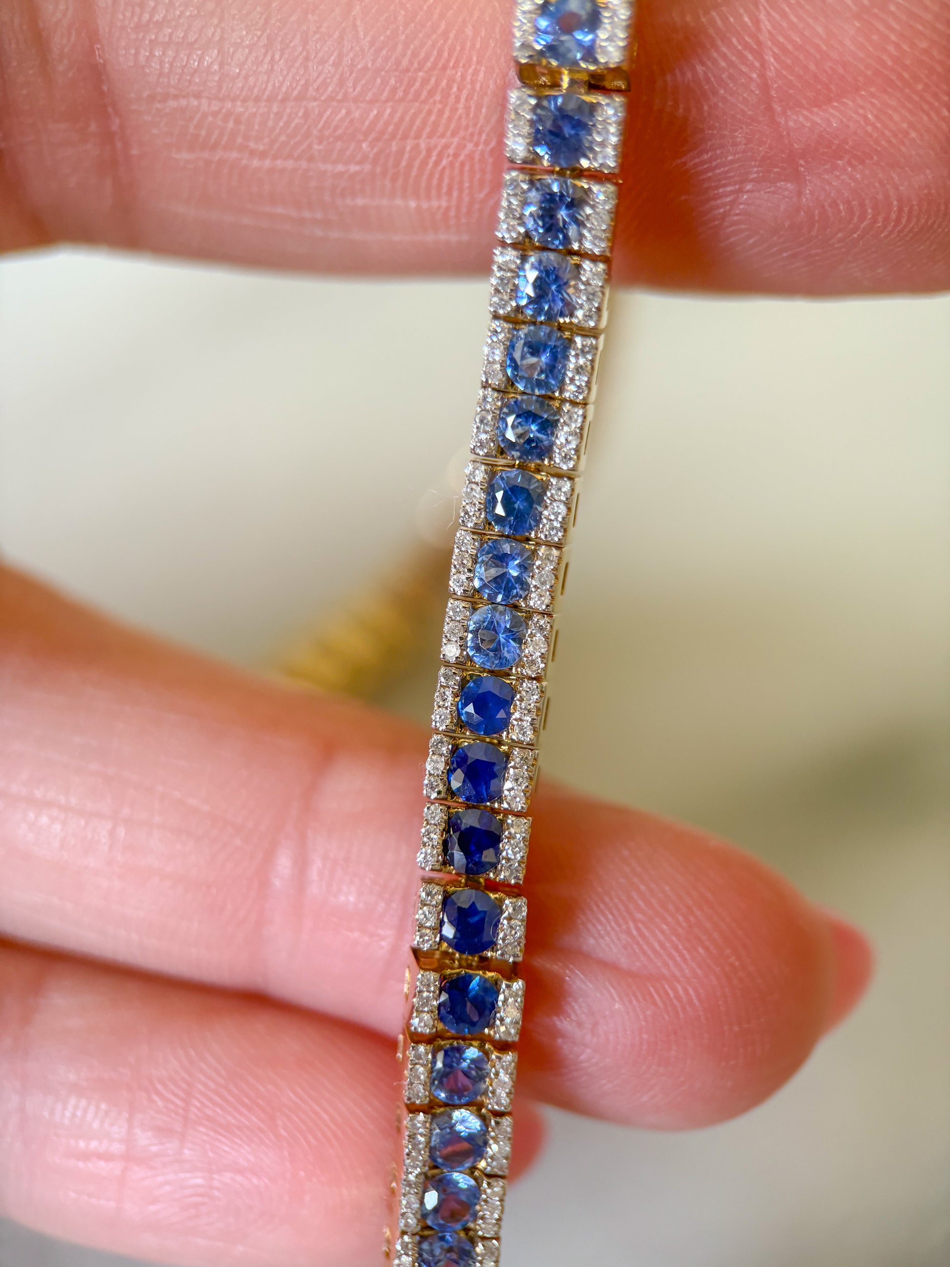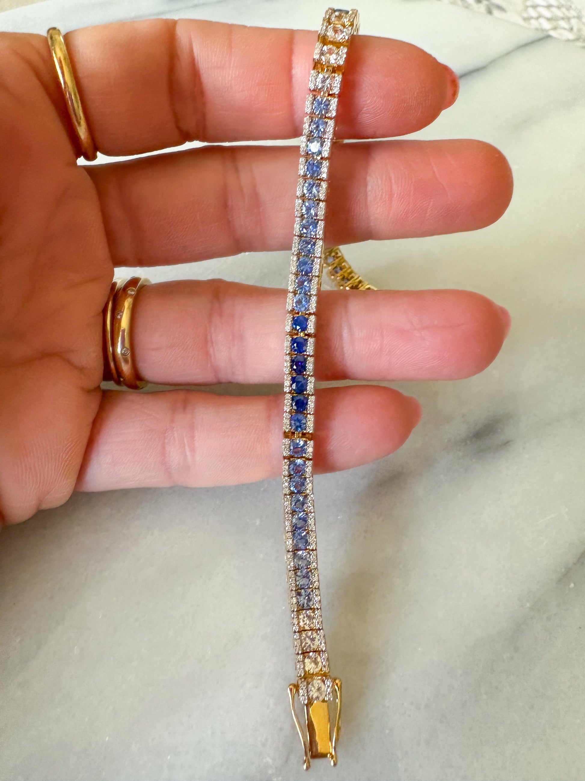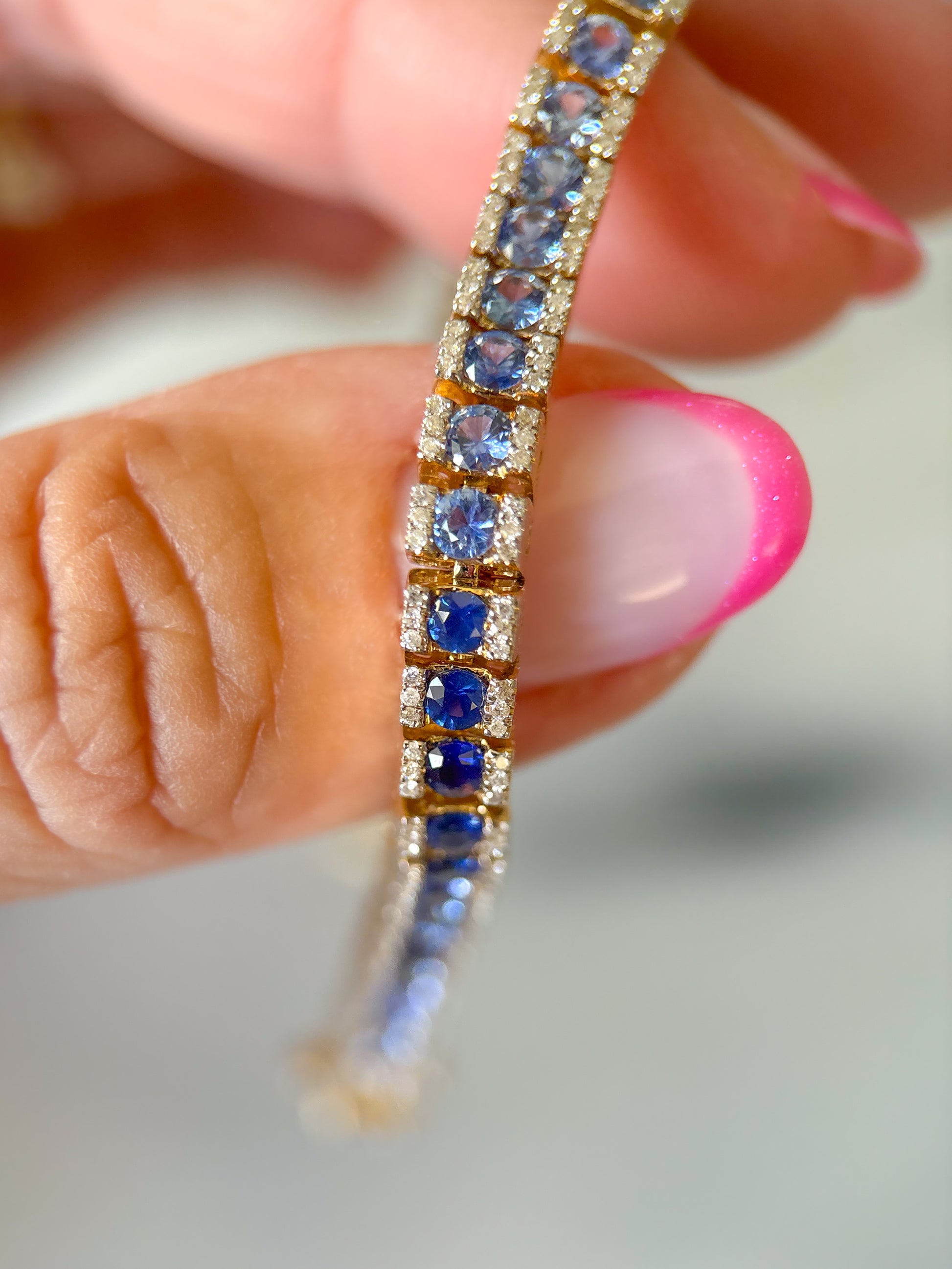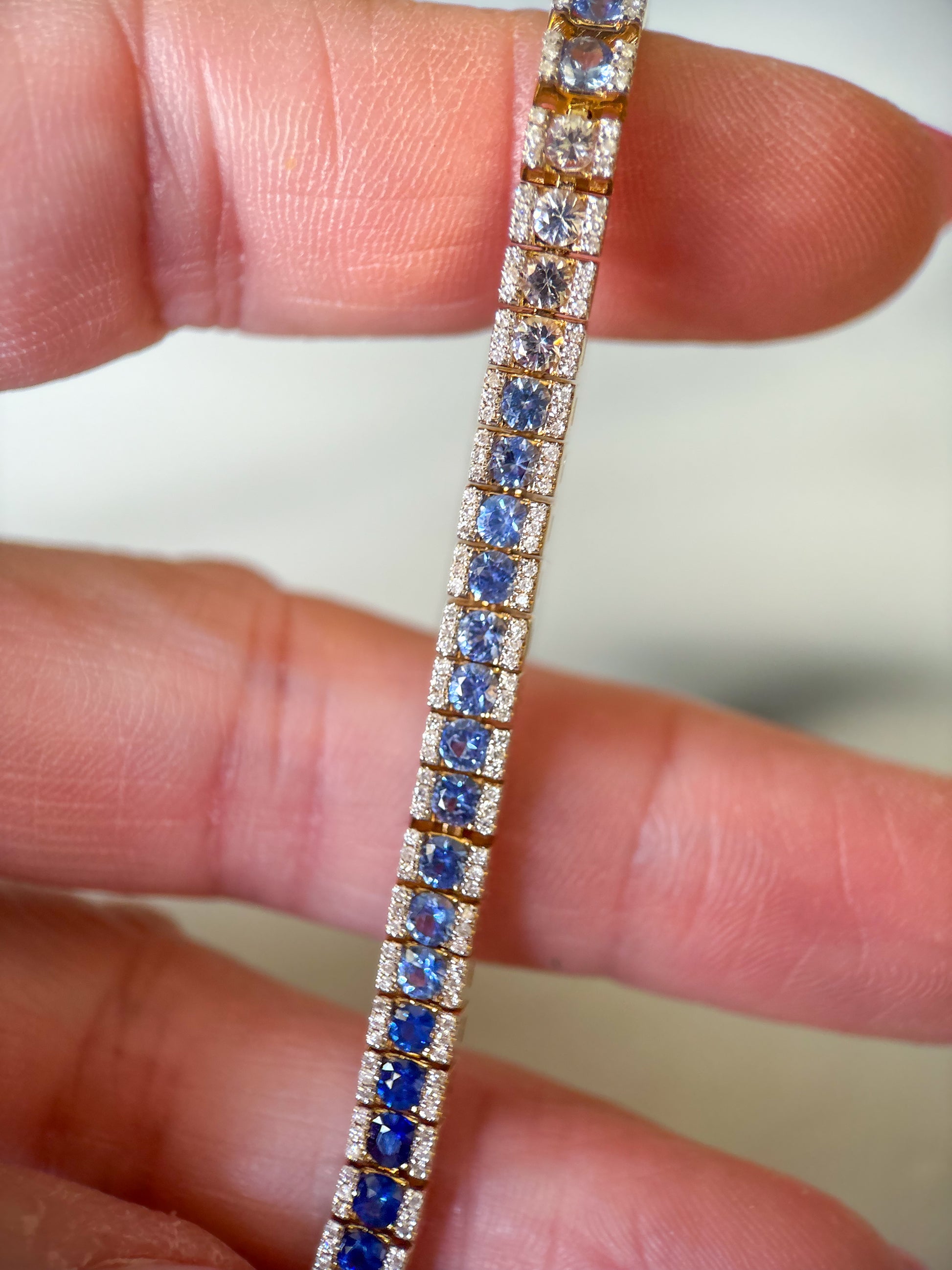 Absolutely insane, natural sapphire and diamond ombré tennis bracelet!