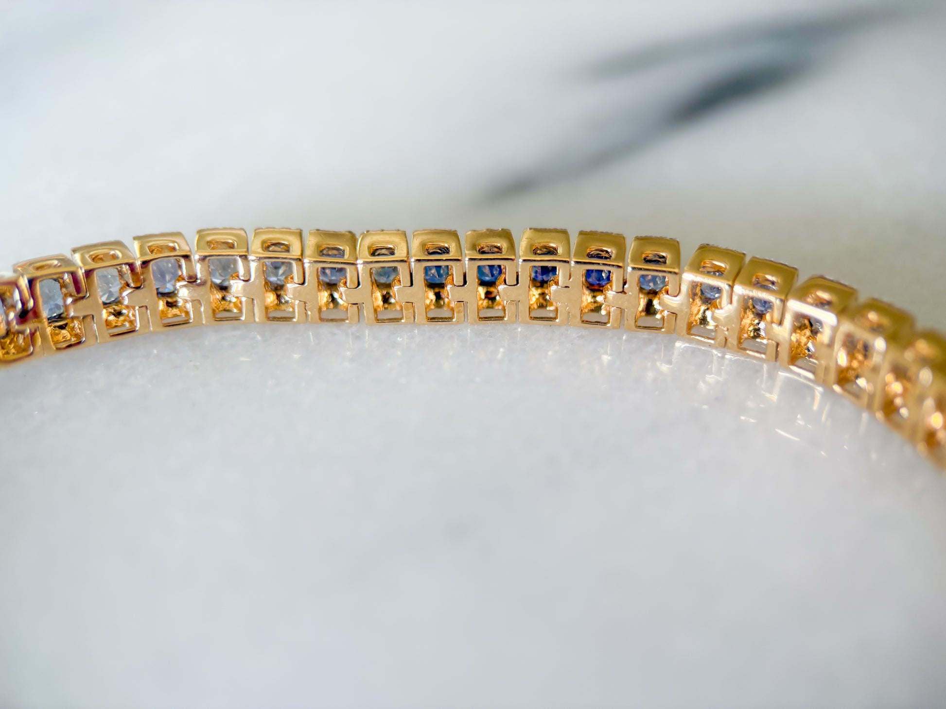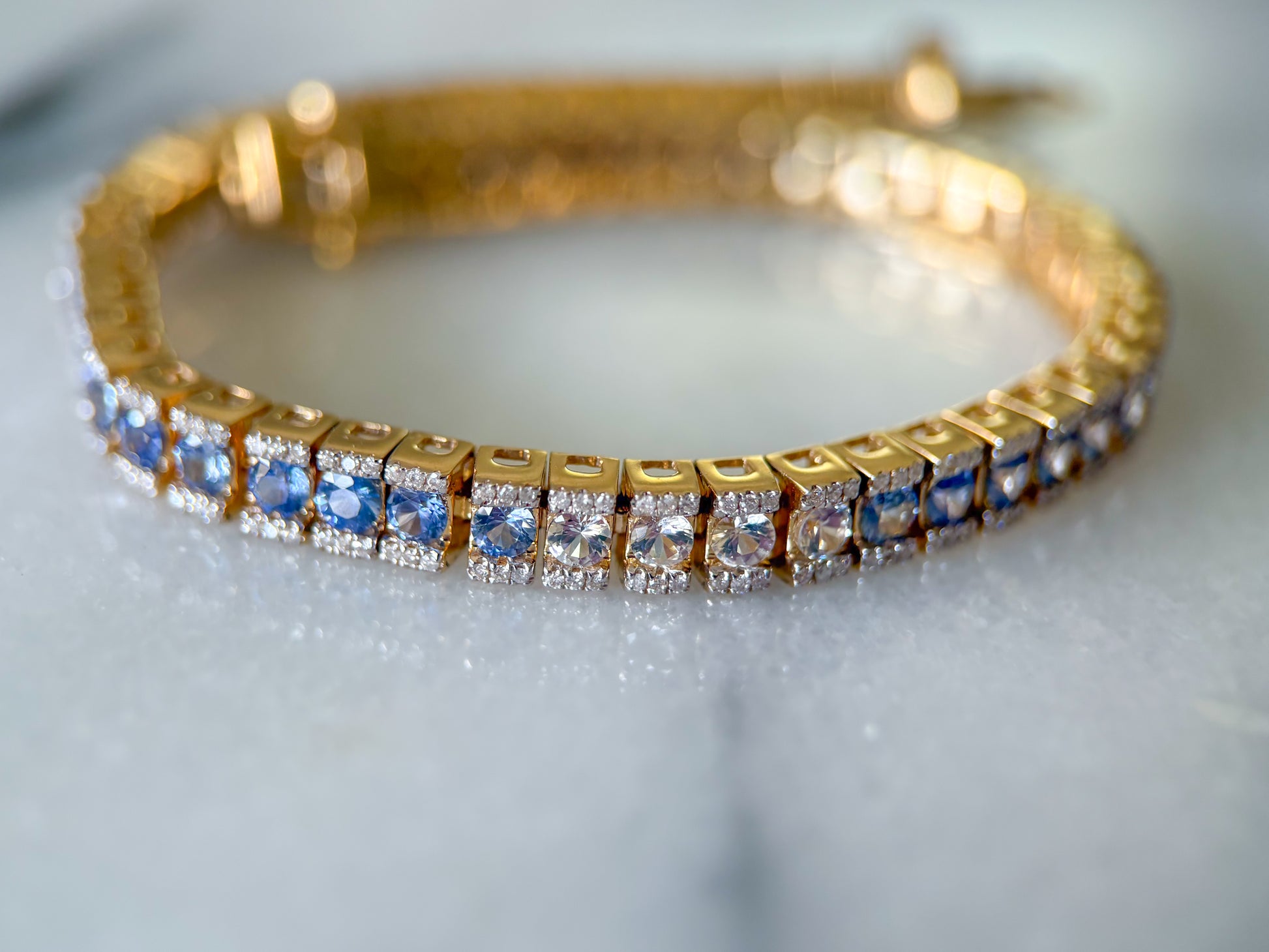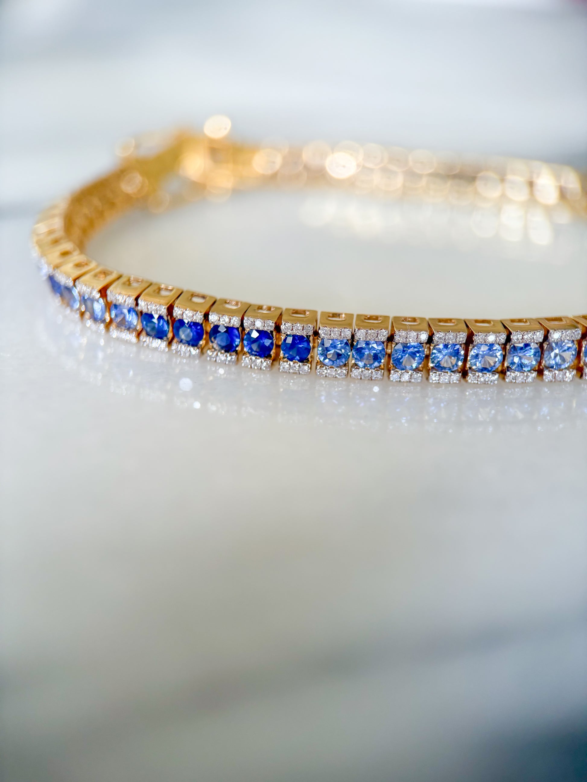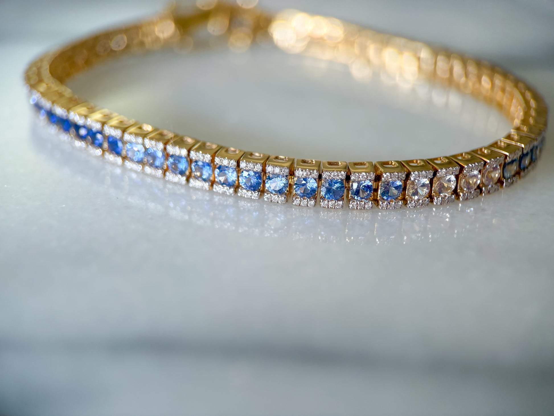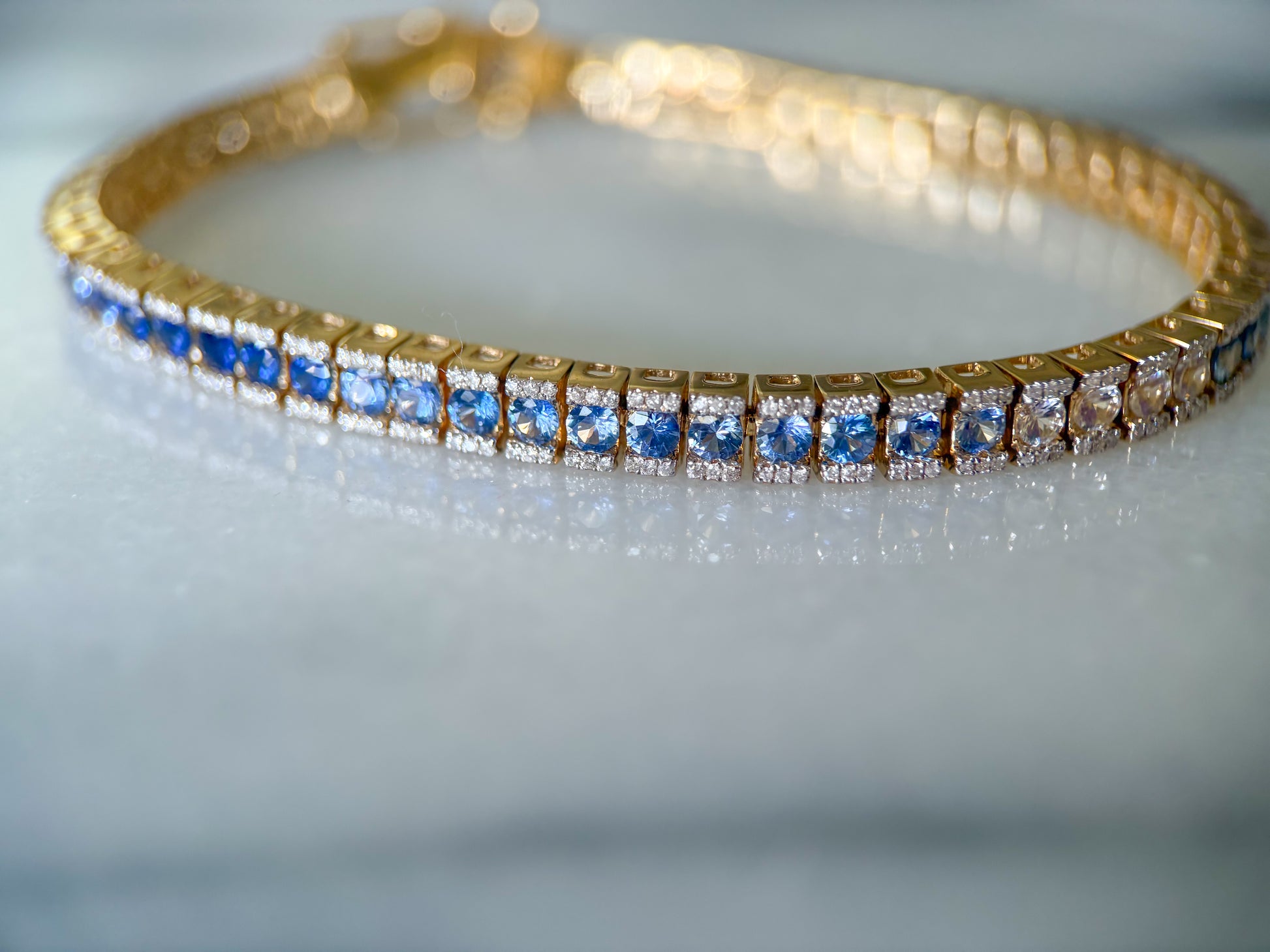 Absolutely insane, natural sapphire and diamond ombré tennis bracelet!