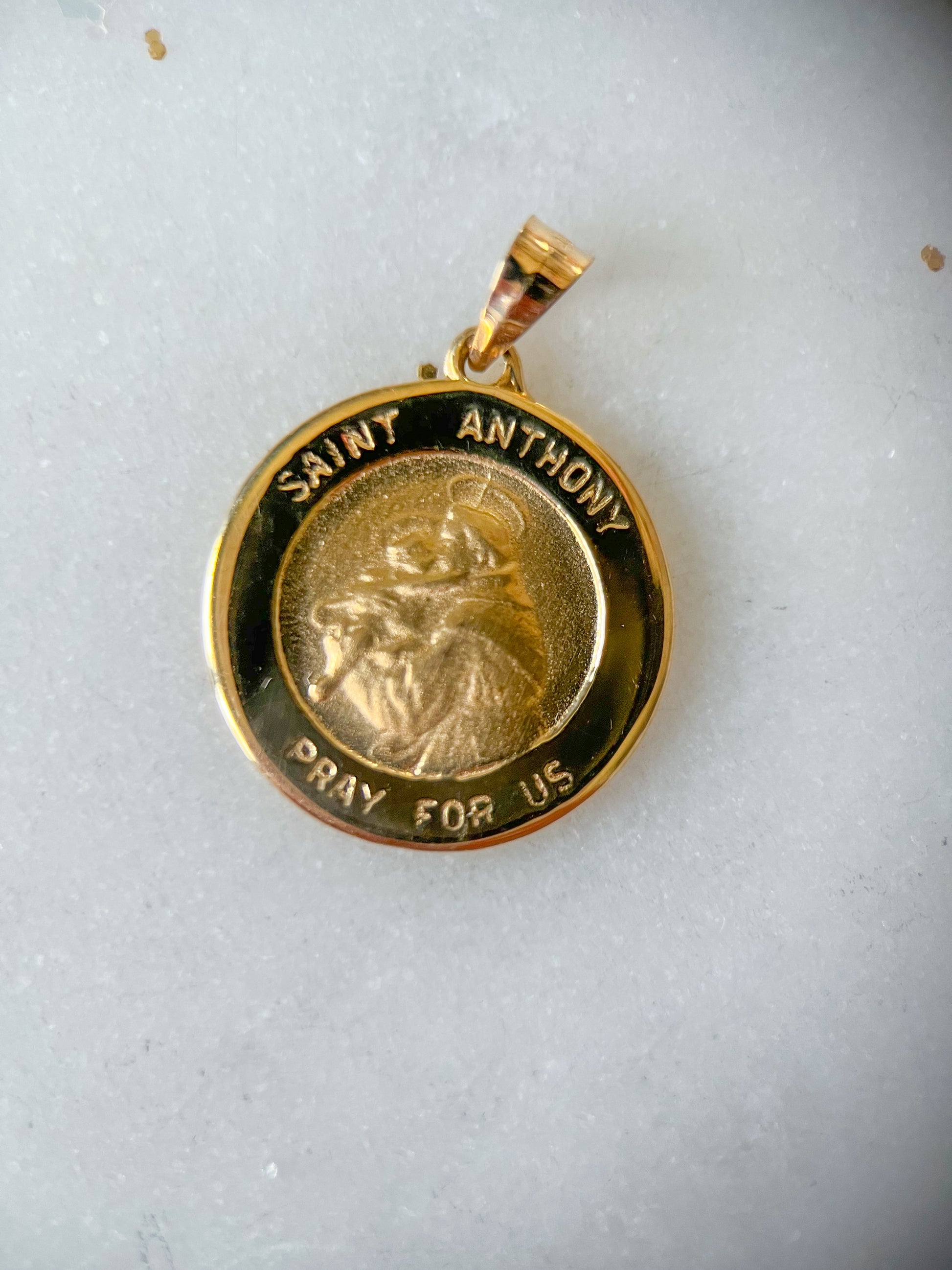This Saint Anthony charm is made of 14k yellow gold. This is not vintage, chain not included.