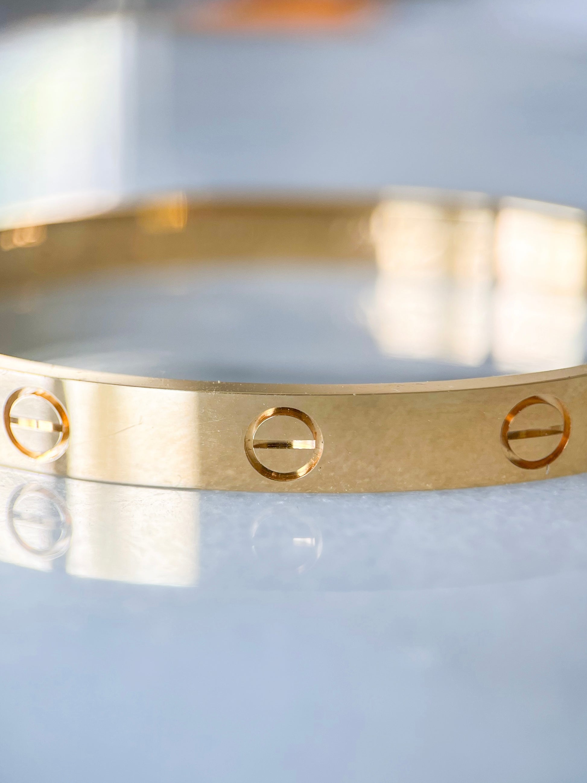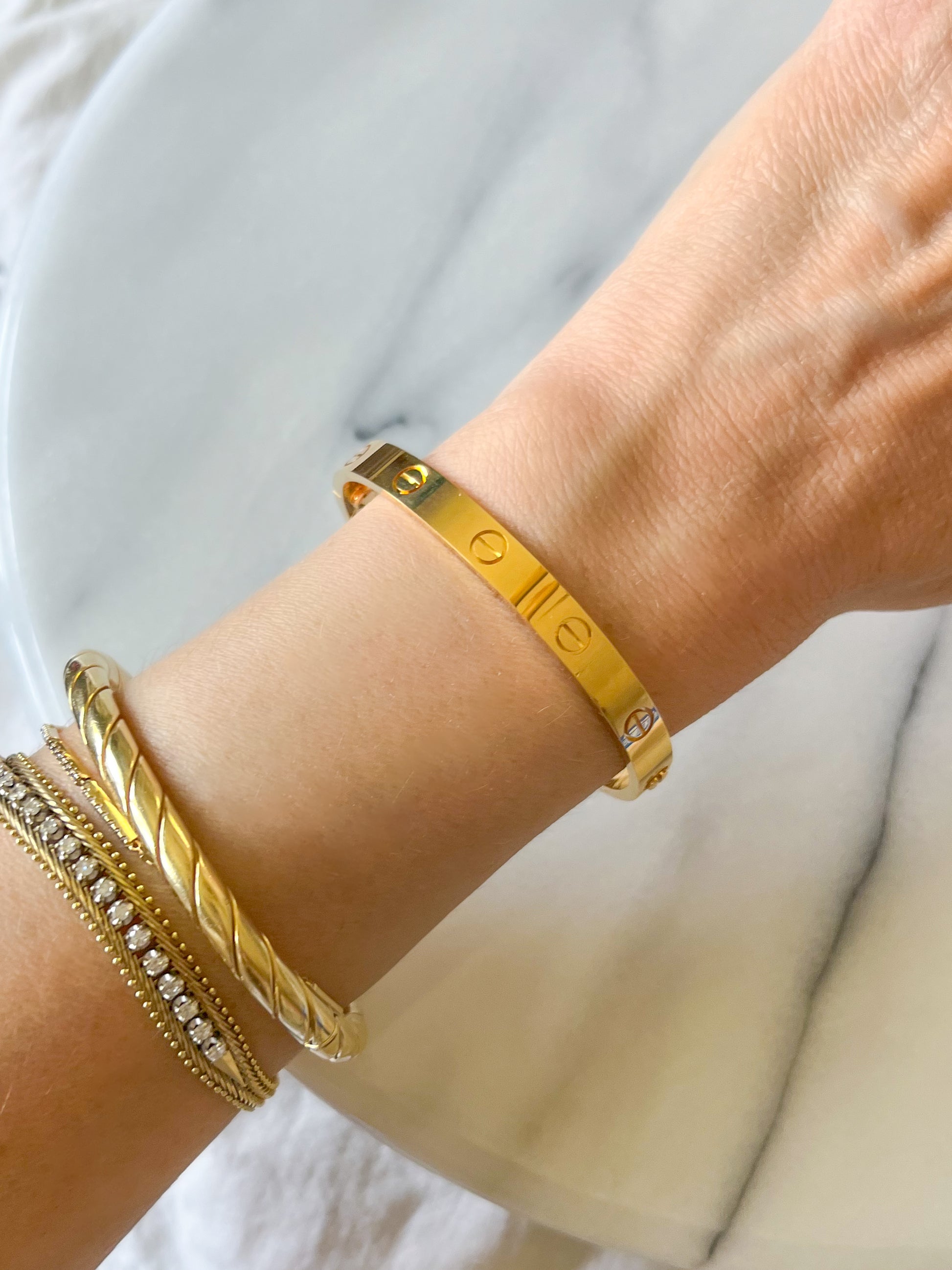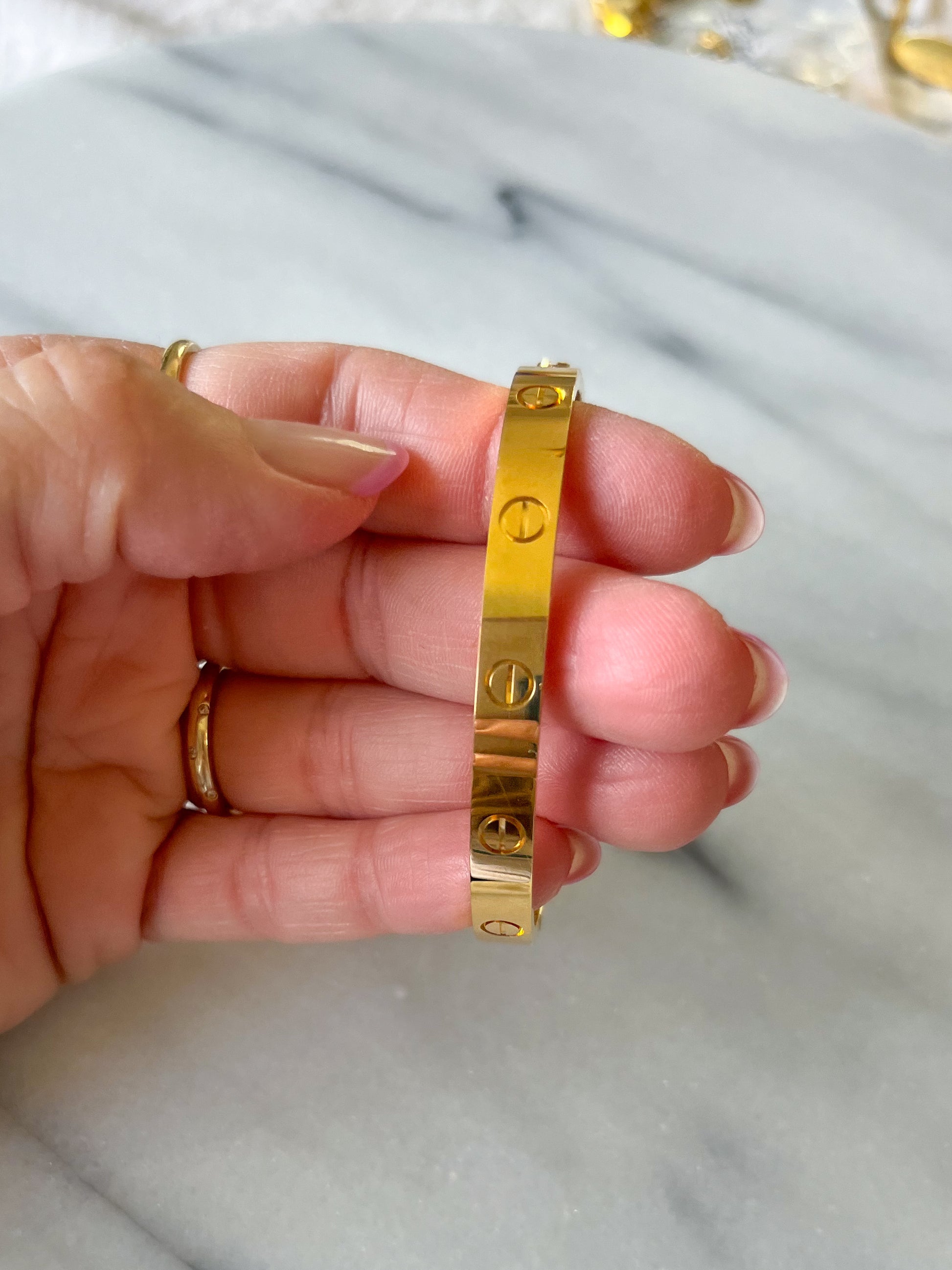 Size 17 18k Yellow Gold Solid Screw Bangle