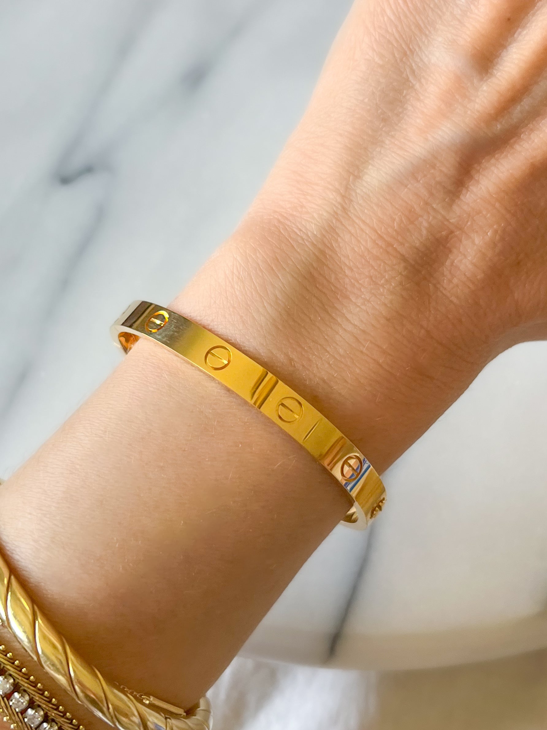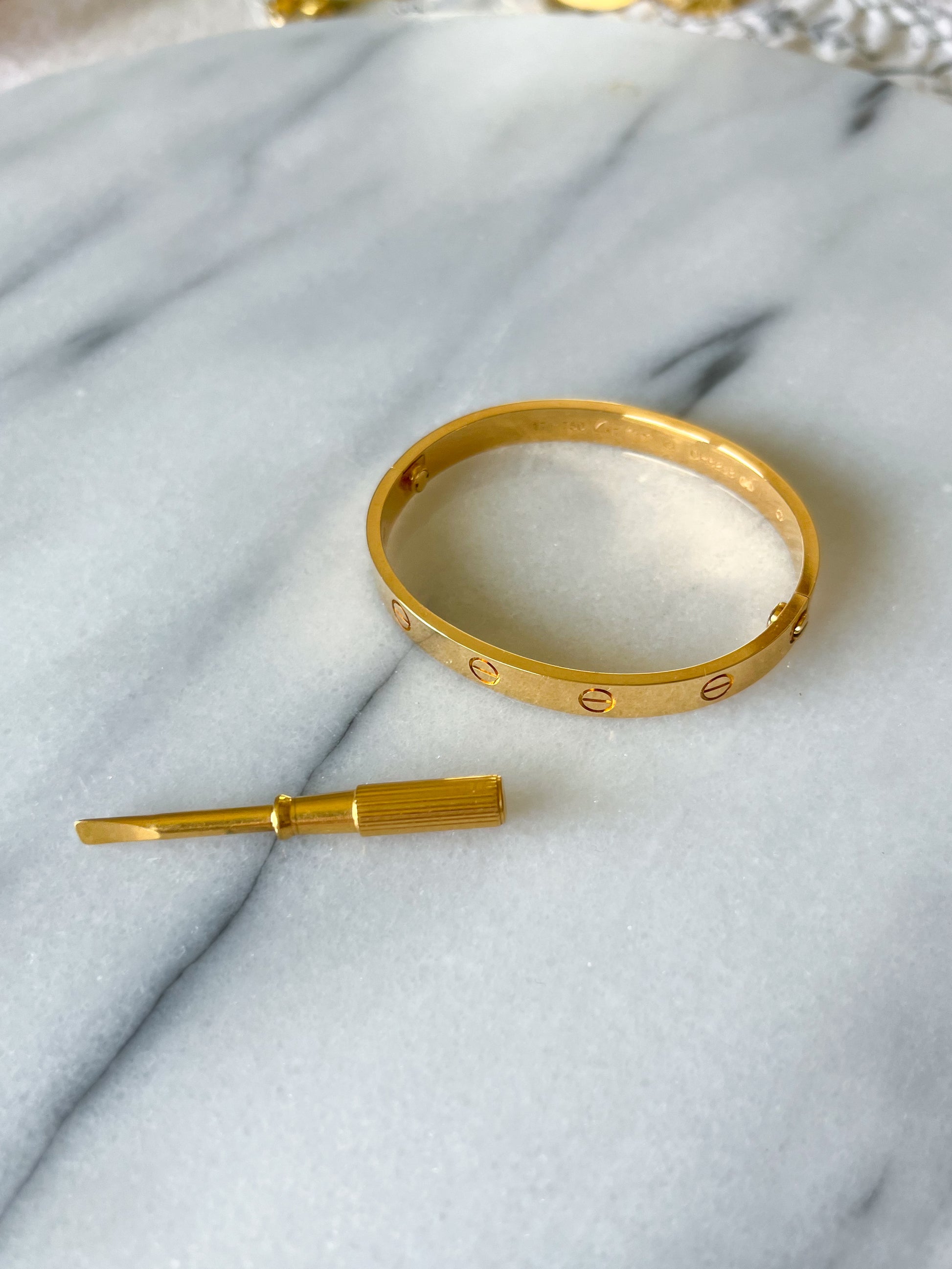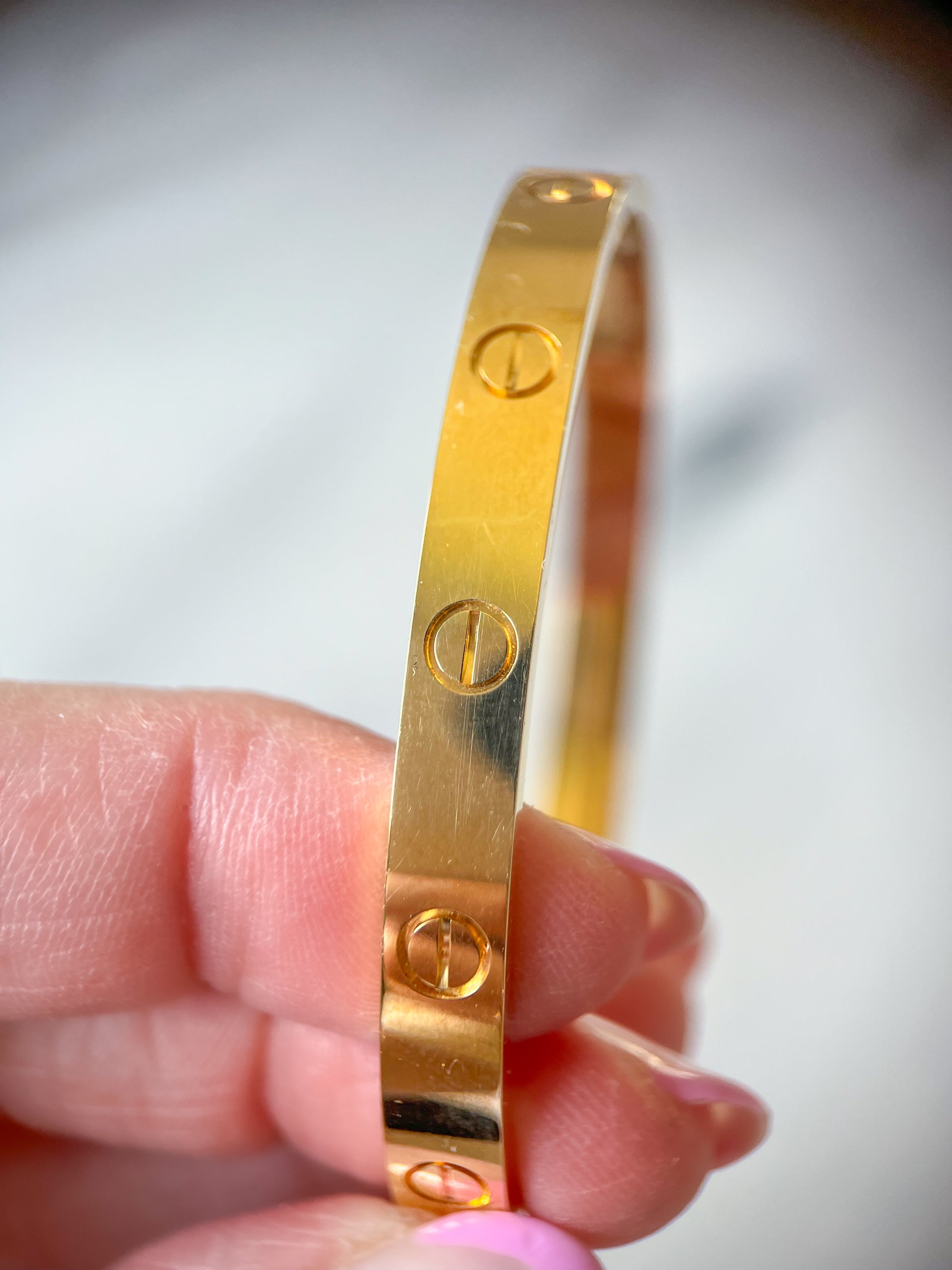 Size 17 18k Yellow Gold Solid Screw Bangle