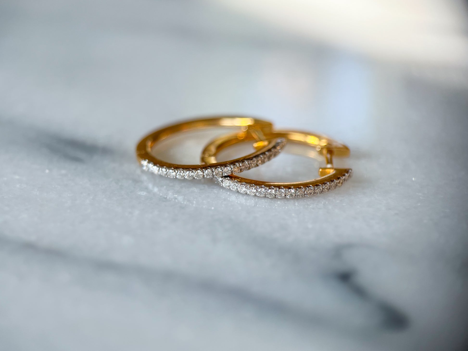 Thin Natural Diamond Huggies 14k Yellow Gold Hoop Earrings