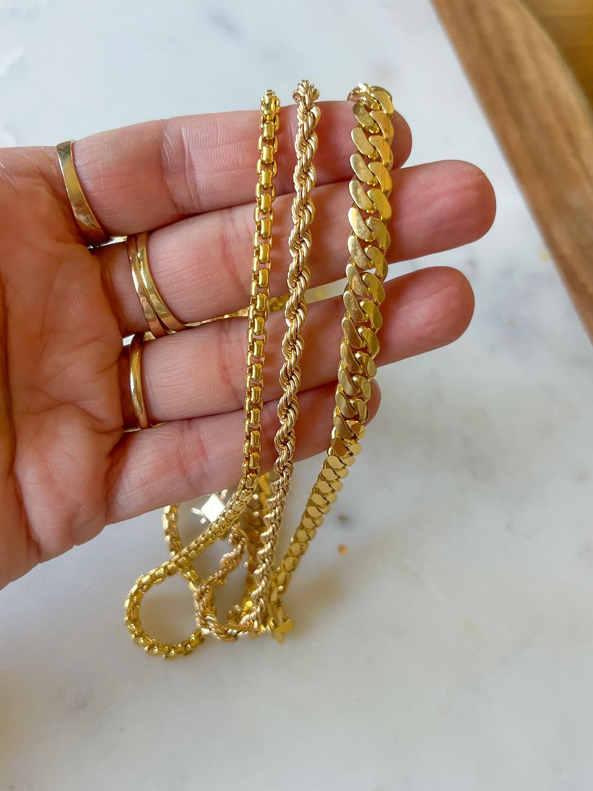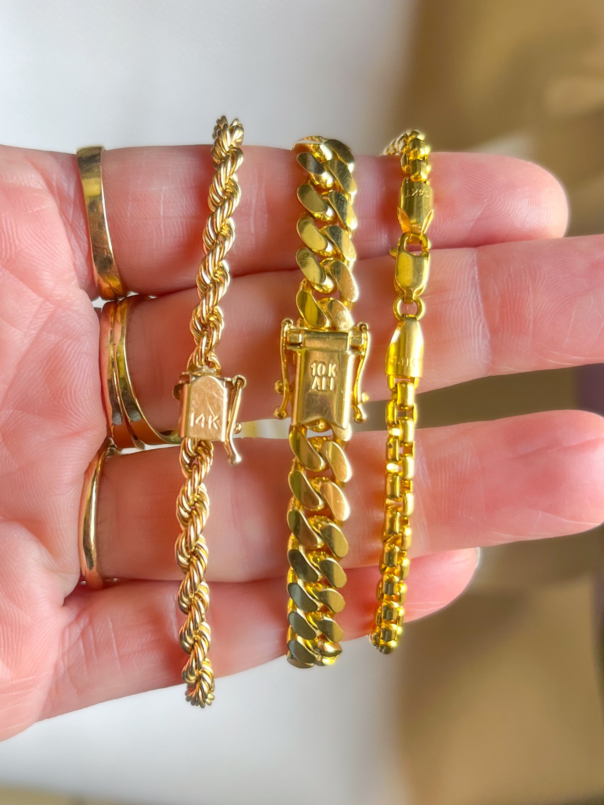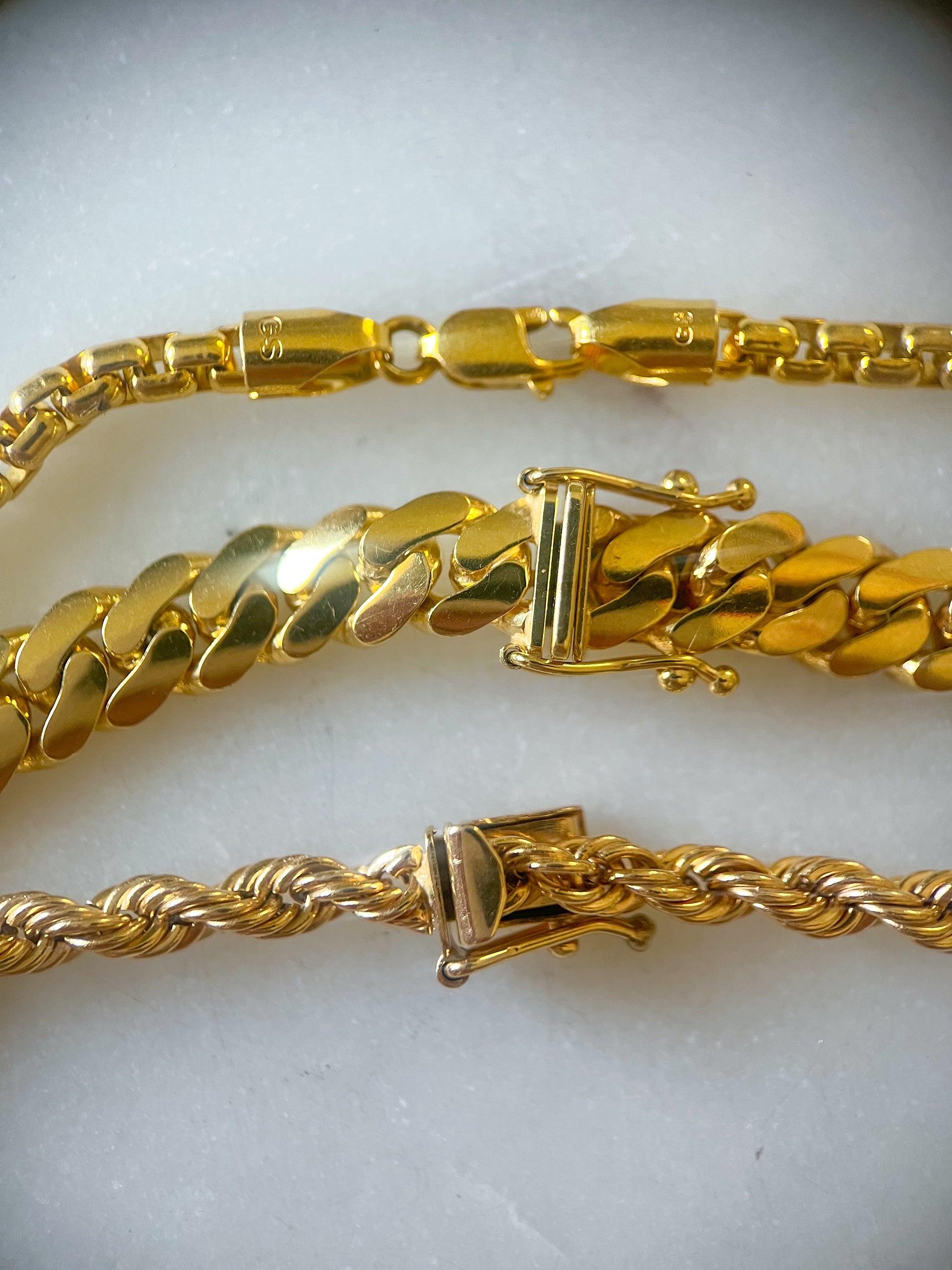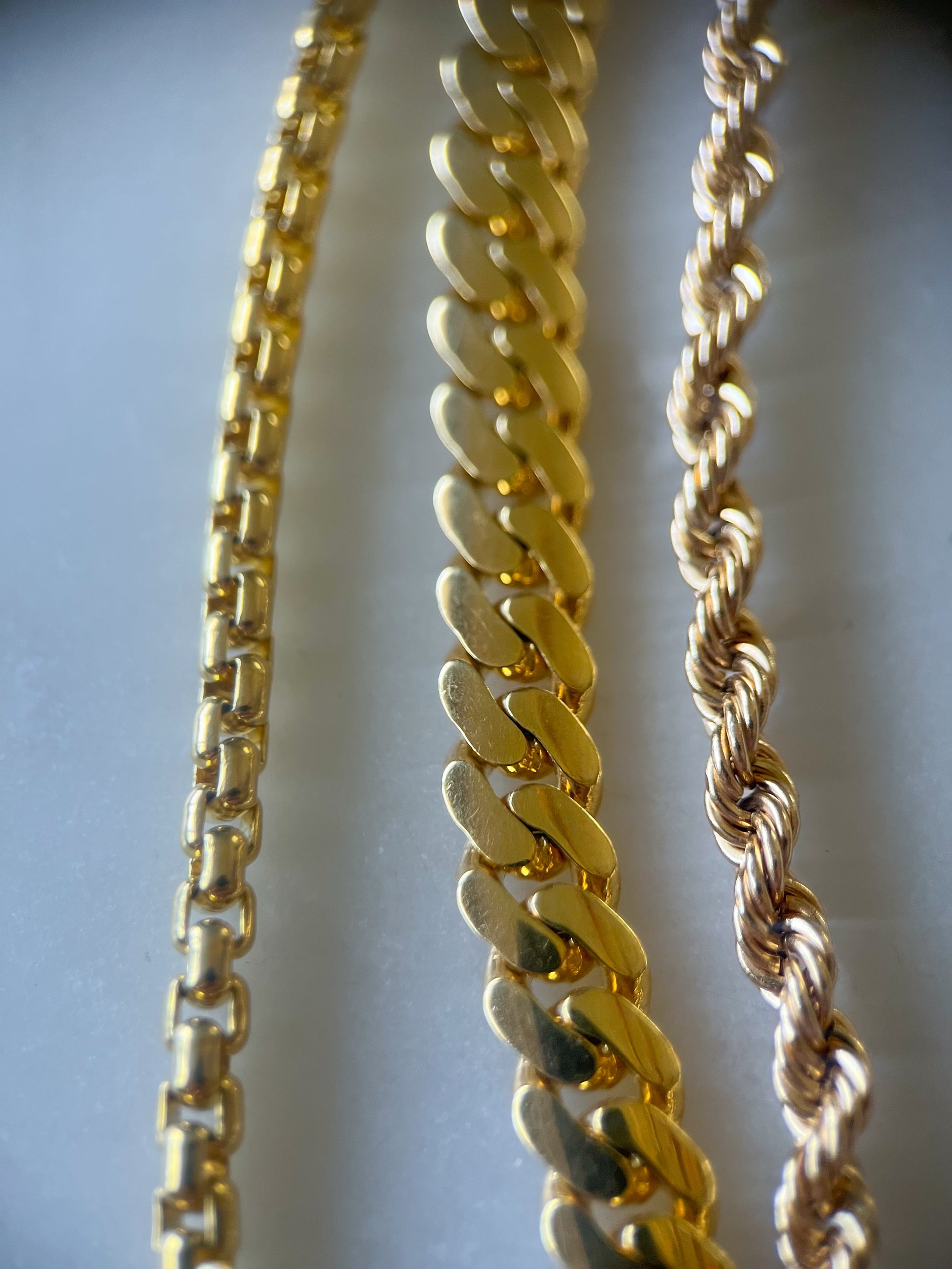 Various Vintage 10k and 14k Yellow Gold Chains - Rope, Curb and Square Rolo Chain Necklaces