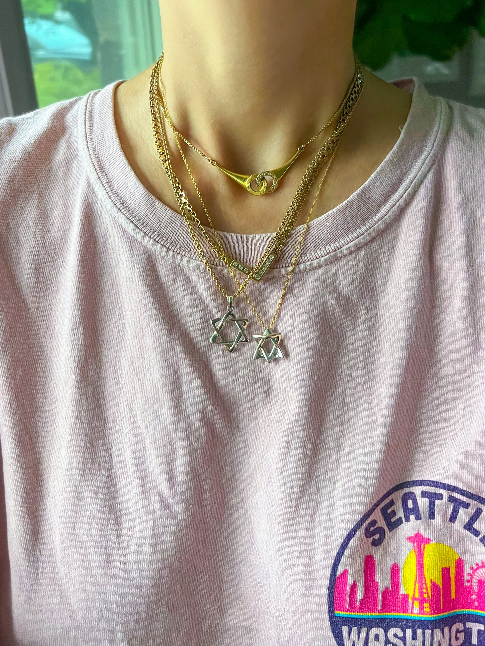 A beautiful, 14k white old Star of David charm. Chain not included.
