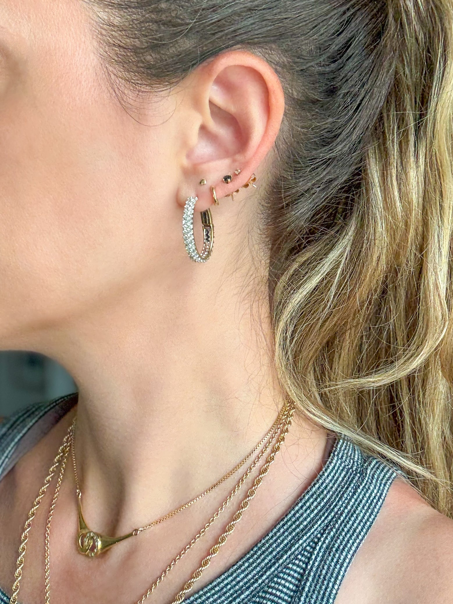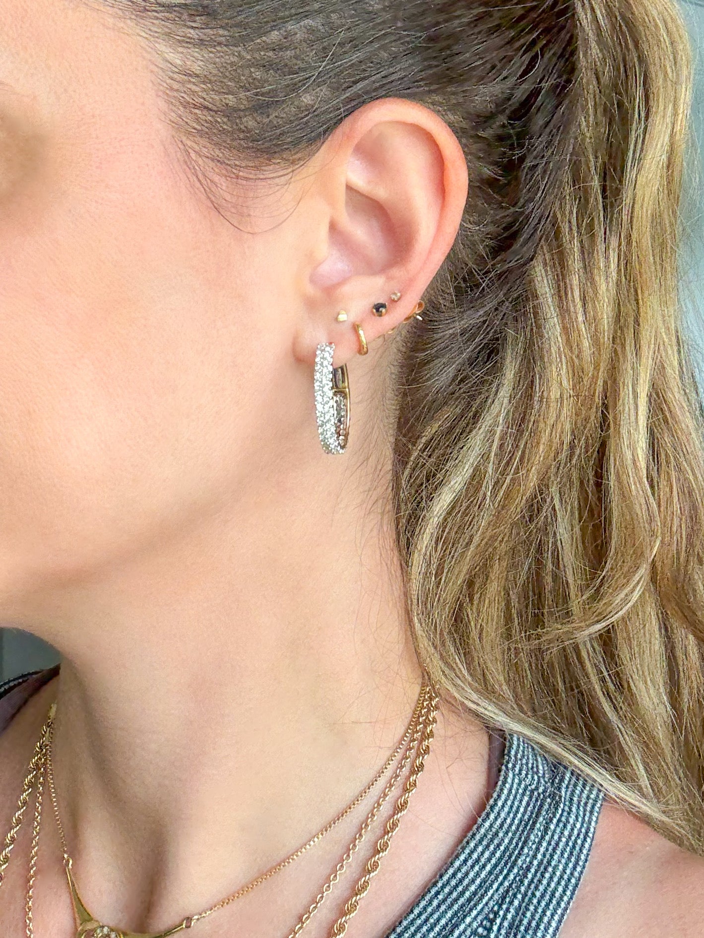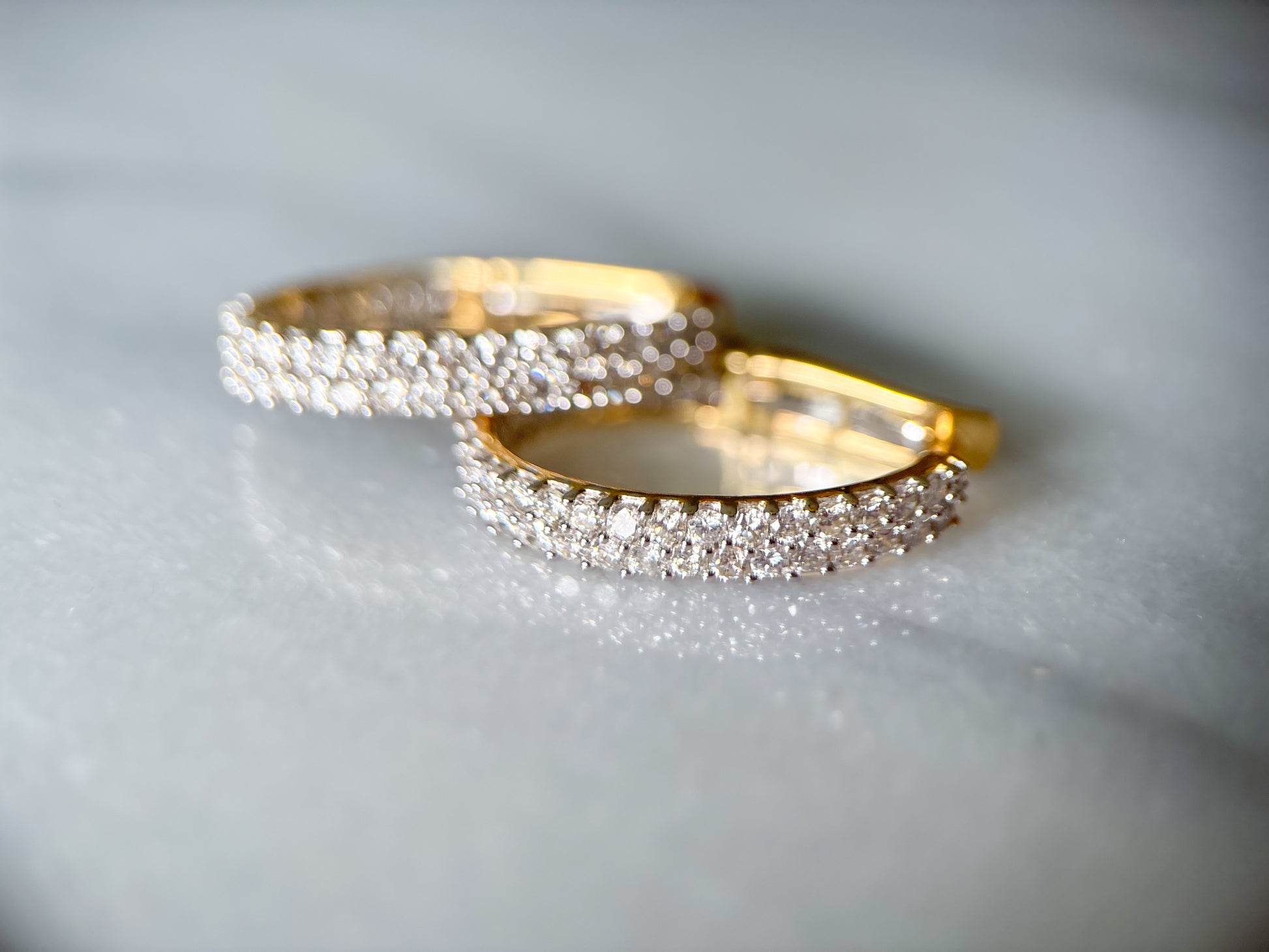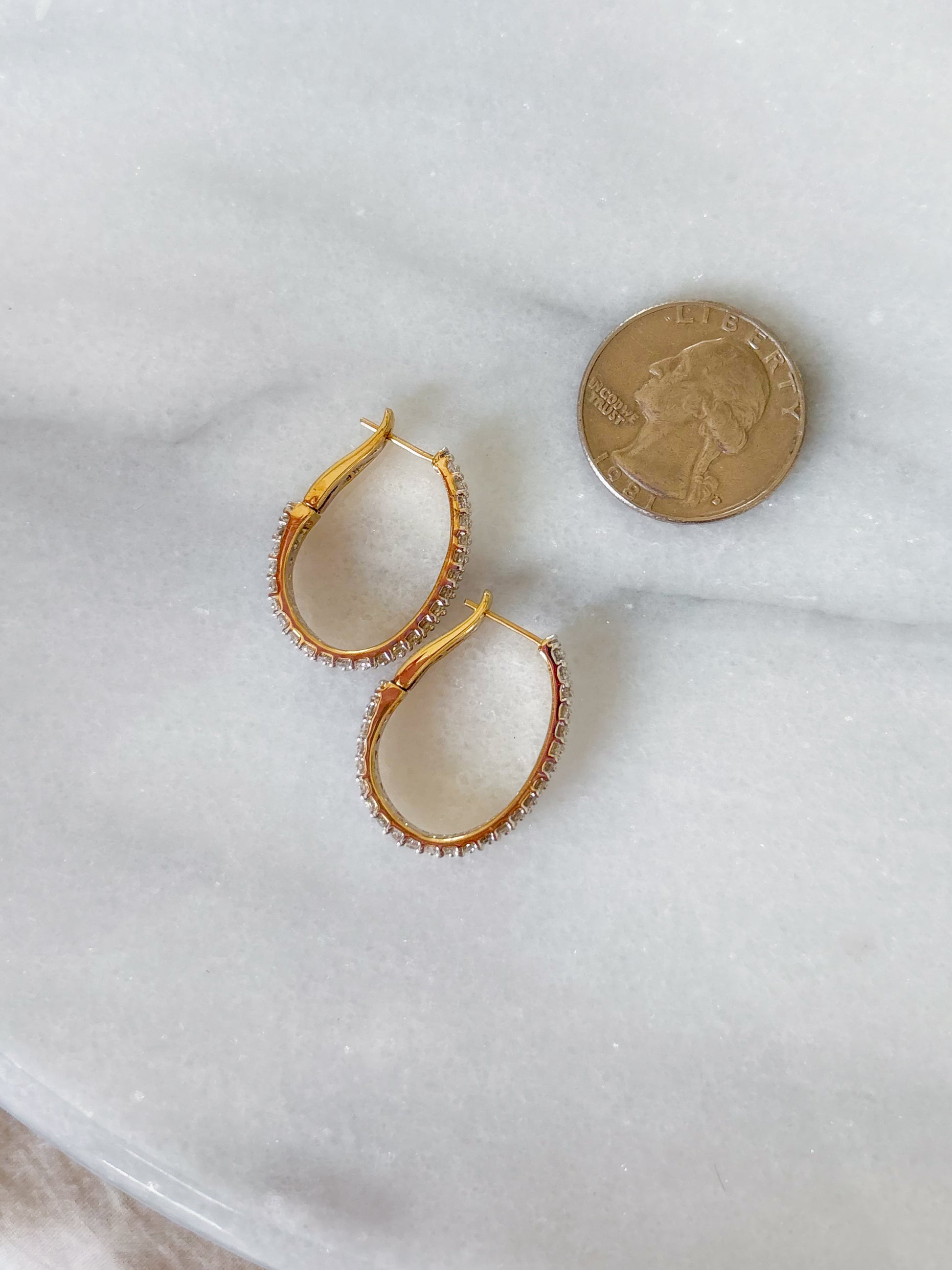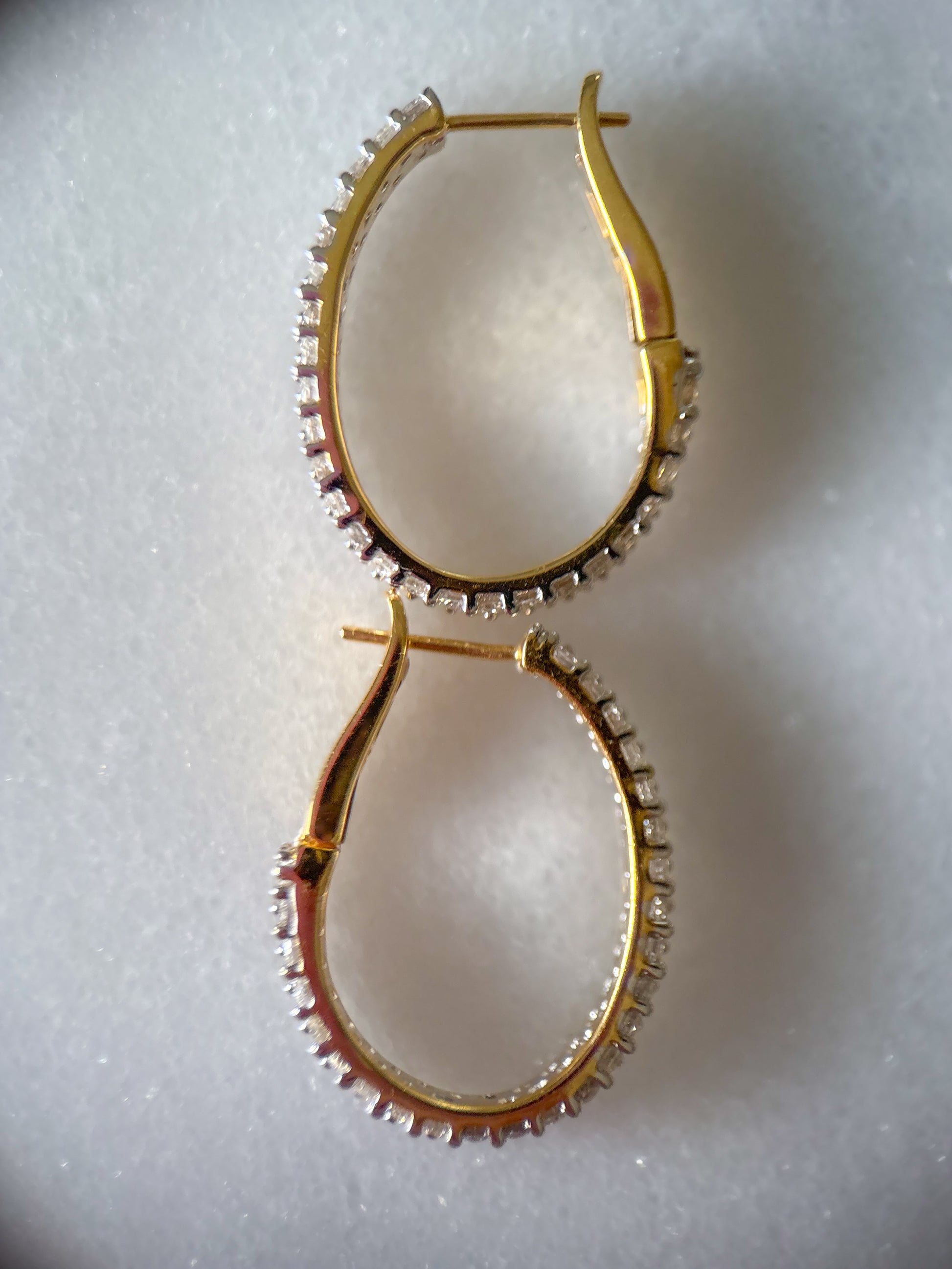 Insane, 14k yellow gold and natural round oval hoops! These earrings feature two rows of natural, round diamonds. These are not vintage. Just completely obsessed with these!