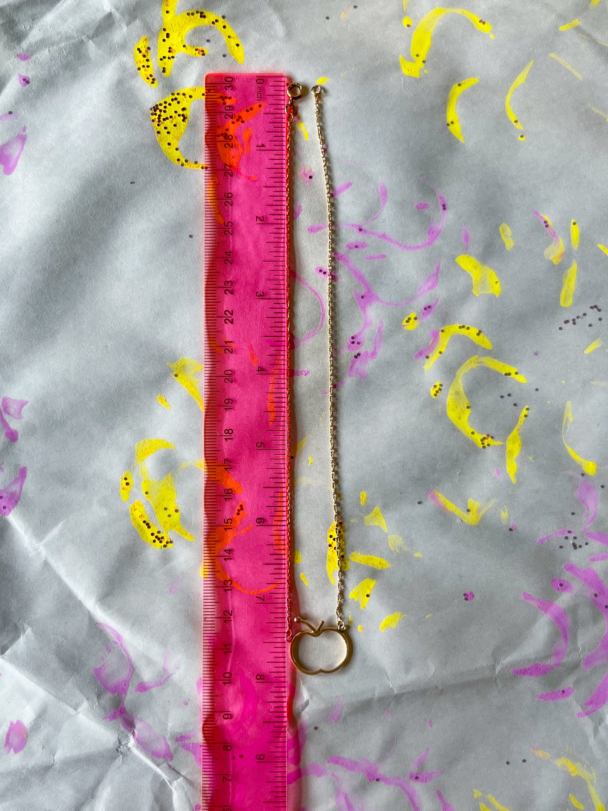 Hallmark: Apple, not marked but acid tested 14k, Chain 10k