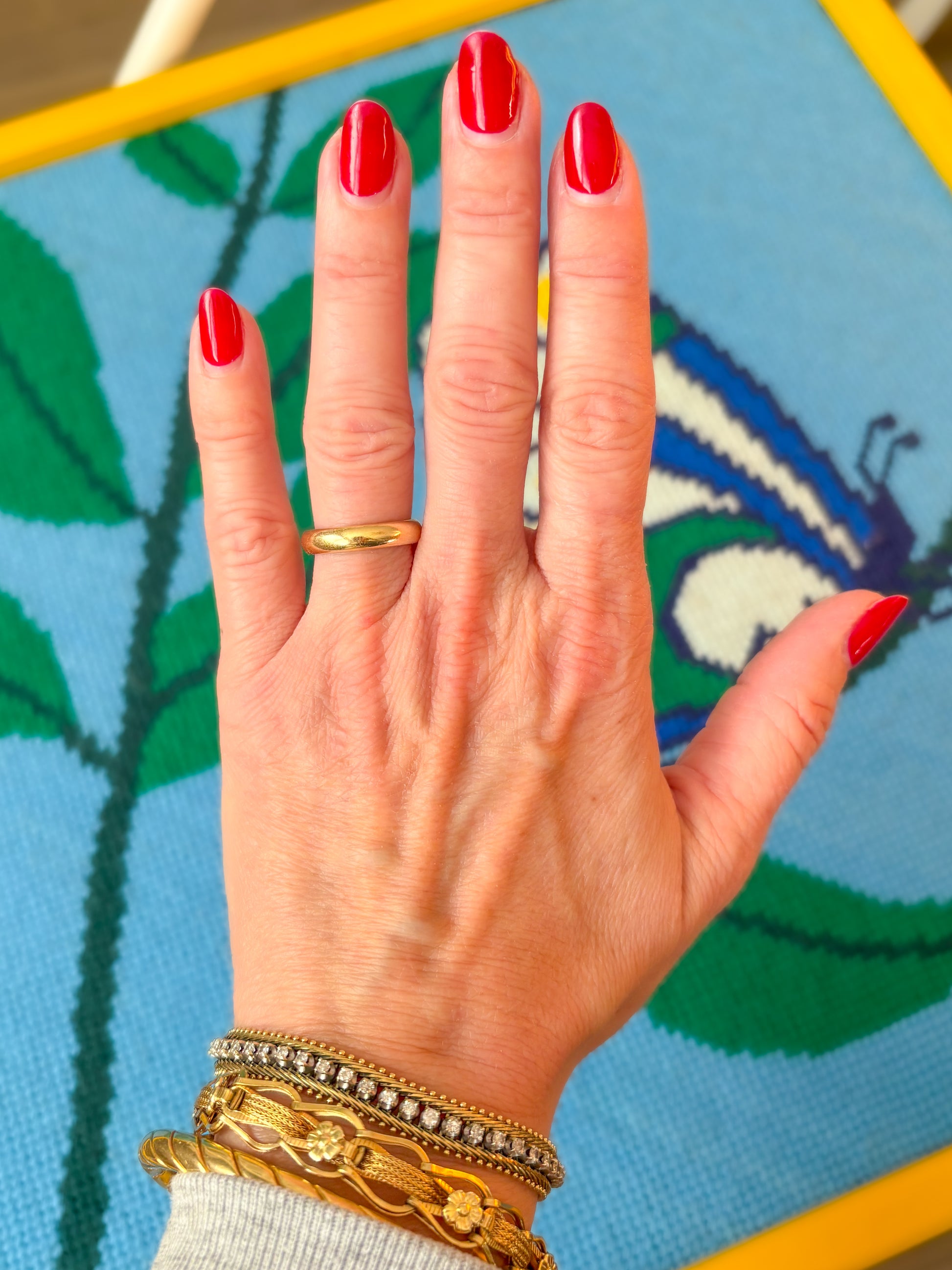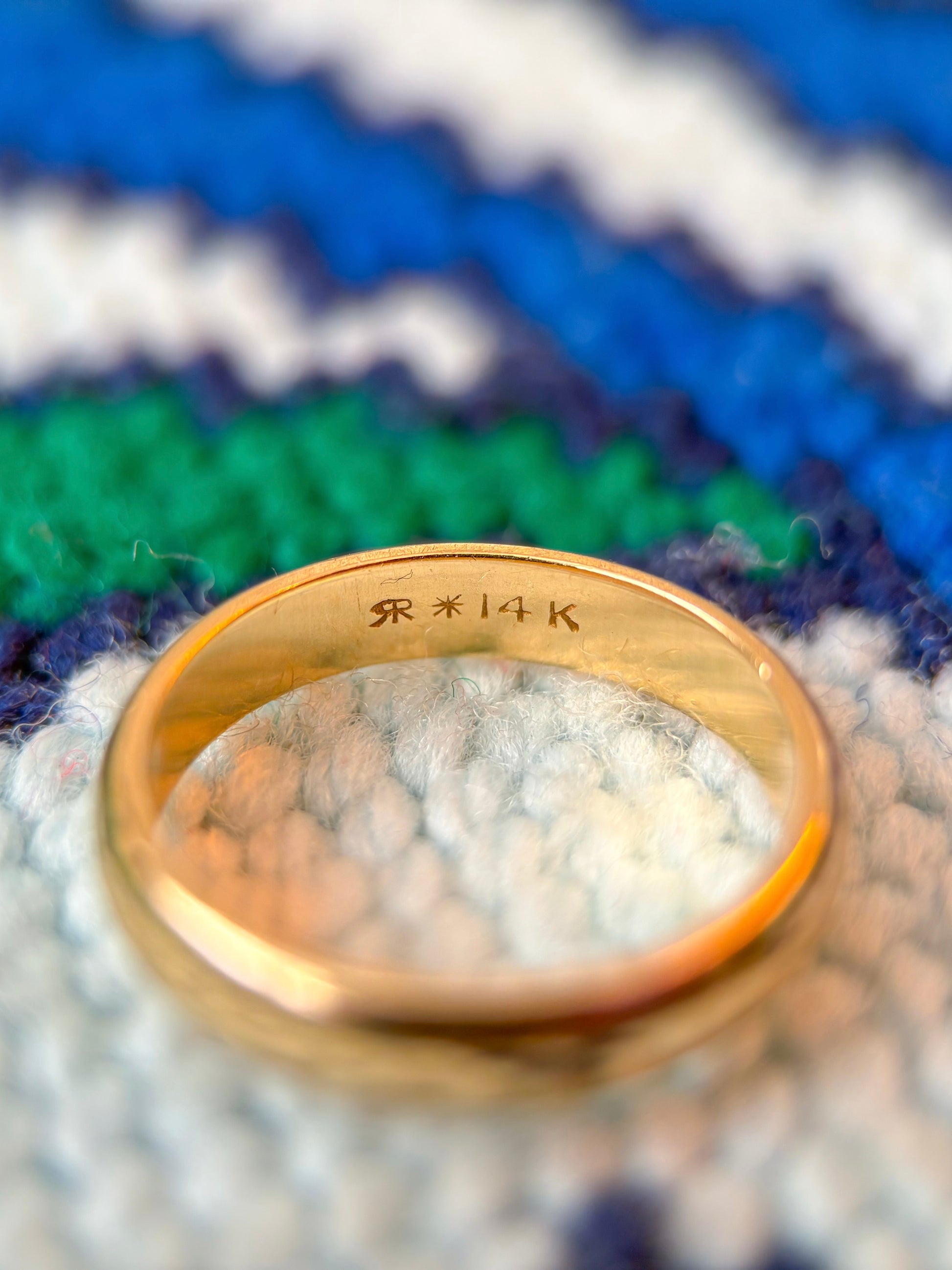 Obsessed with this 14k yellow gold, vintage, donut band! Just perfect. Can not be resized.