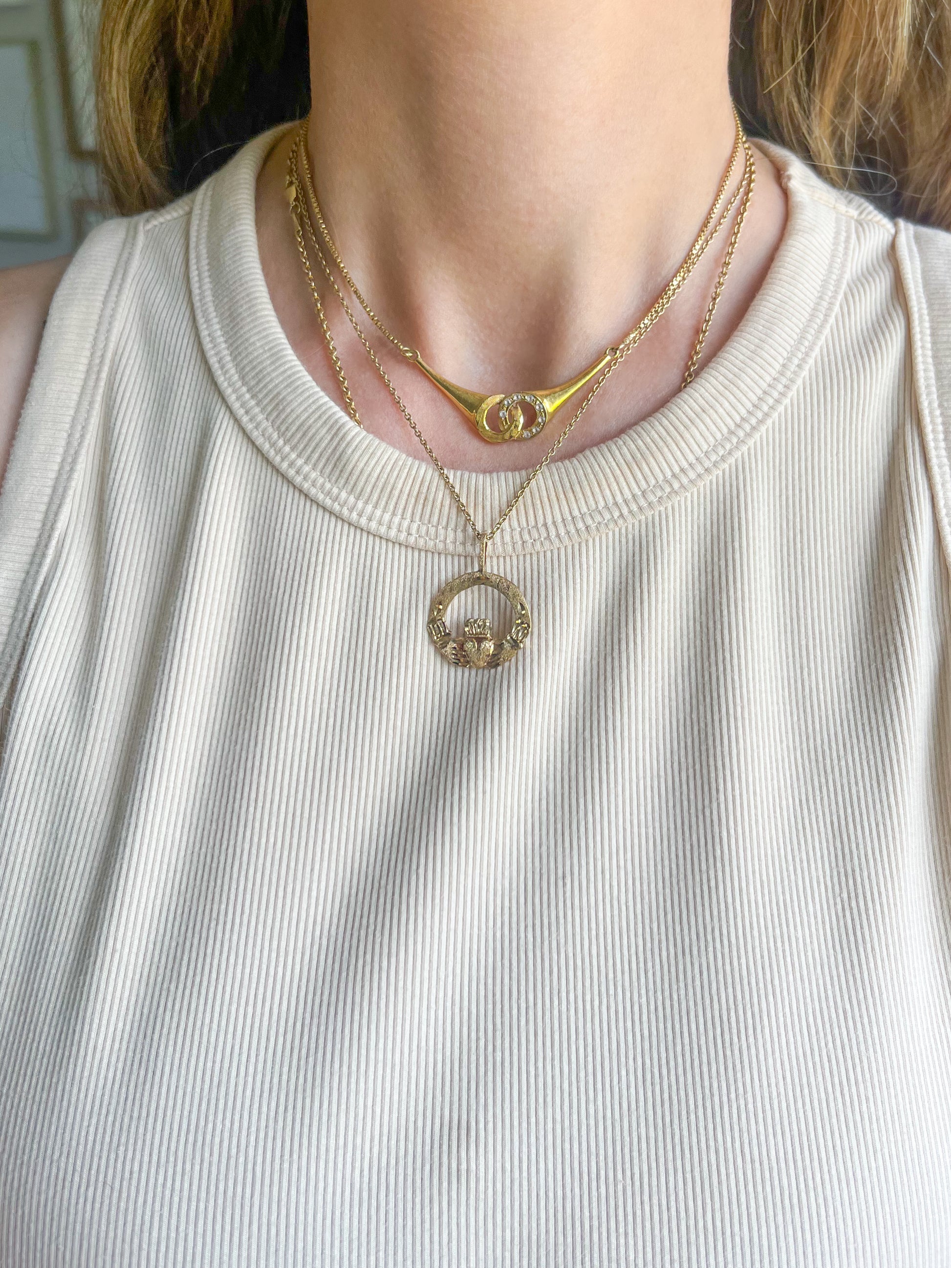 Vintage Claddagh Irish Heart Charm 14k Yellow Gold