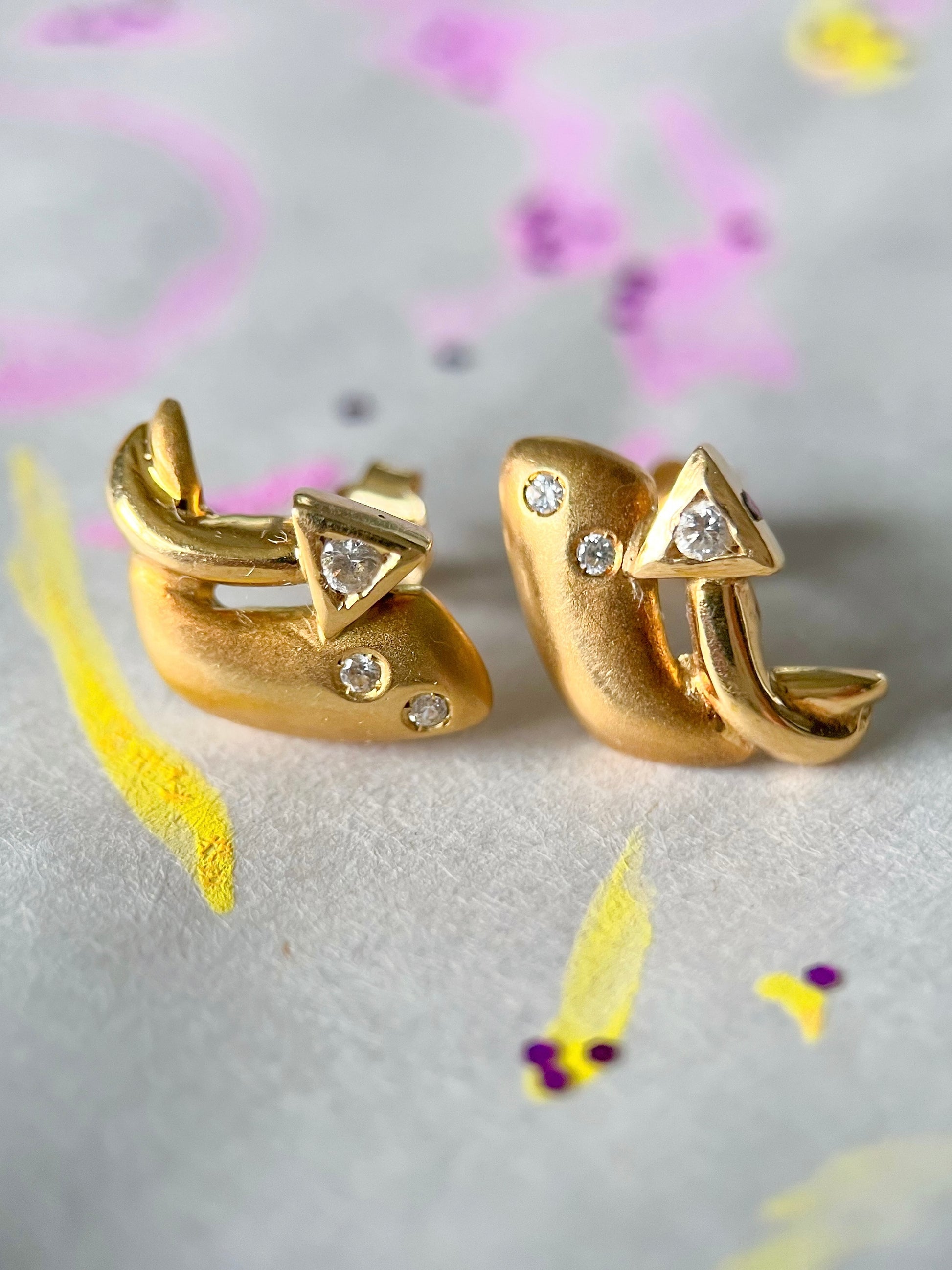 Vintage 14k Yellow Gold Arrows with CZ Earrings